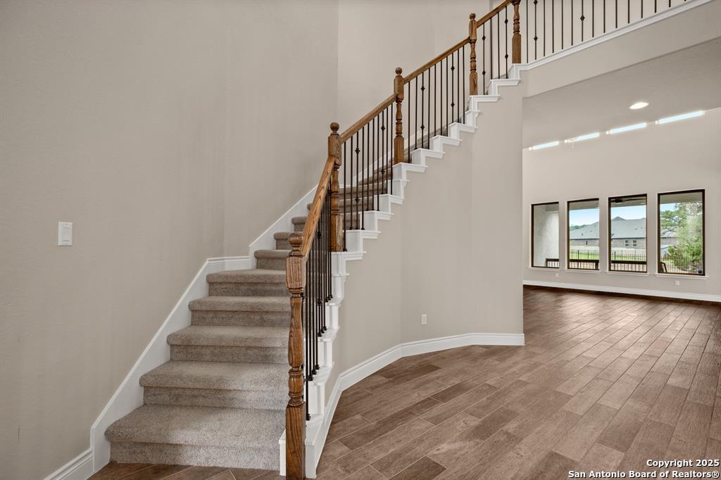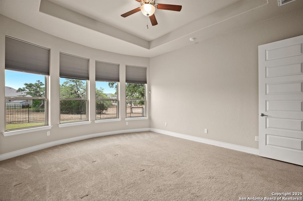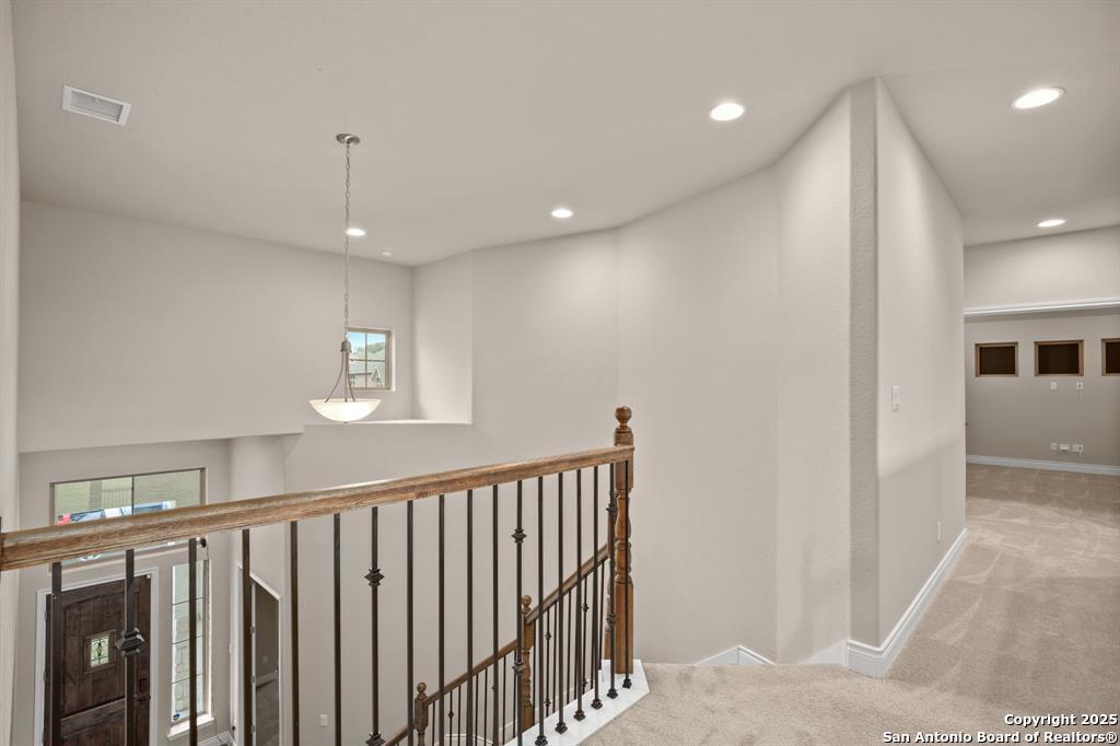 Spacious 4-bedroom, 3.5-bath home in Vintage Oaks with main-level primary suite featuring spa-style bath and large closet. Upstairs has a game room, media room, and three additional bedrooms. Extended covered patio plumbed for gas grill. Community amenities include pools, lazy river, clubhouse, fitness center, trails, and sports courts.