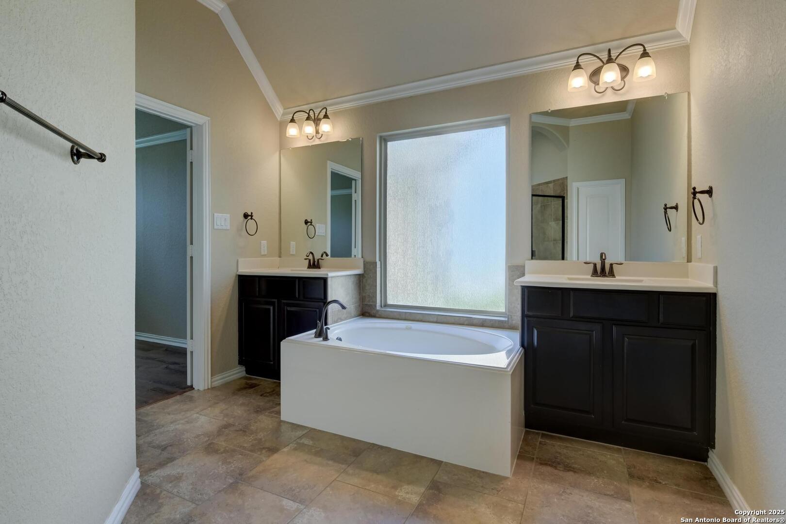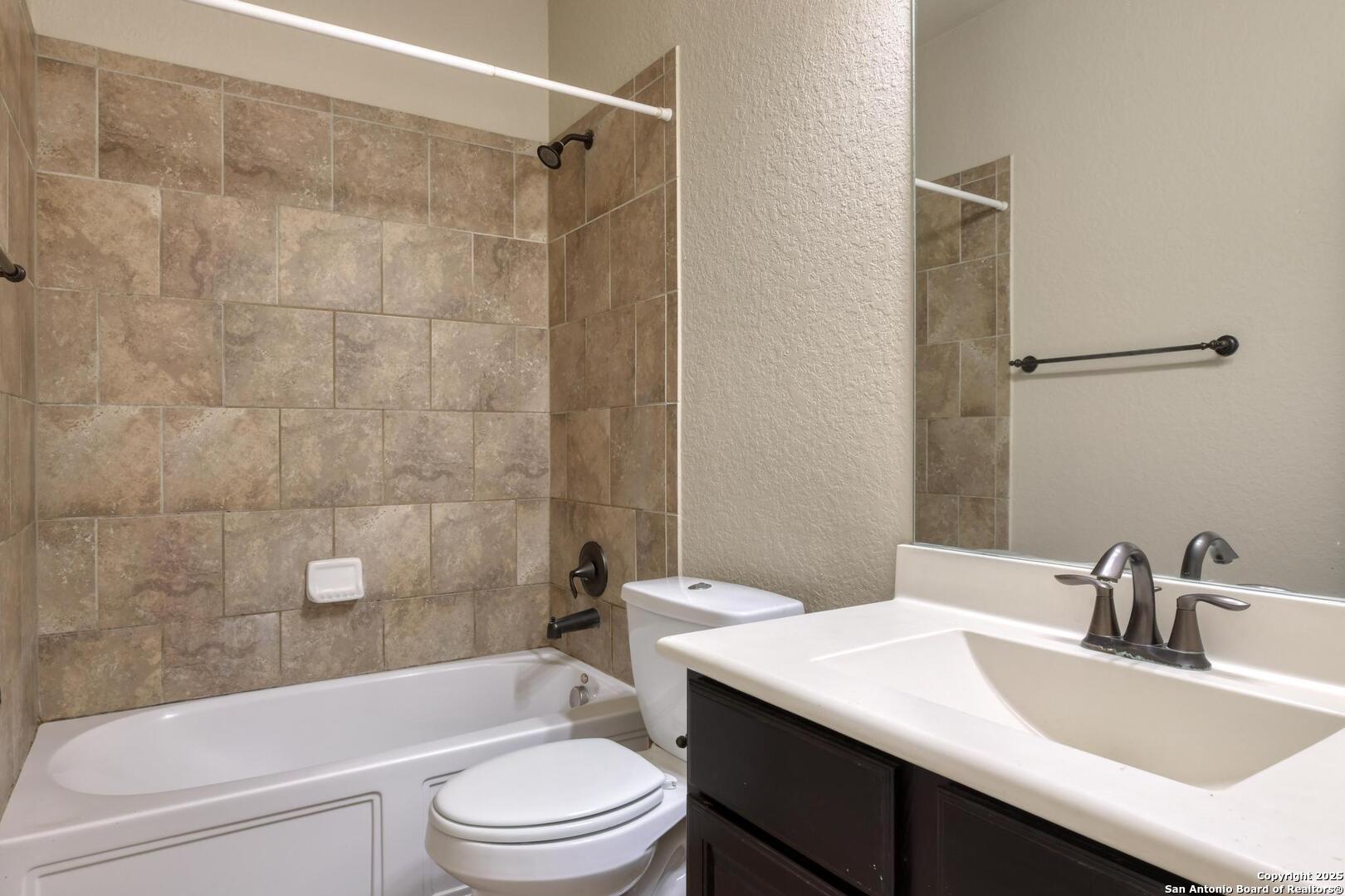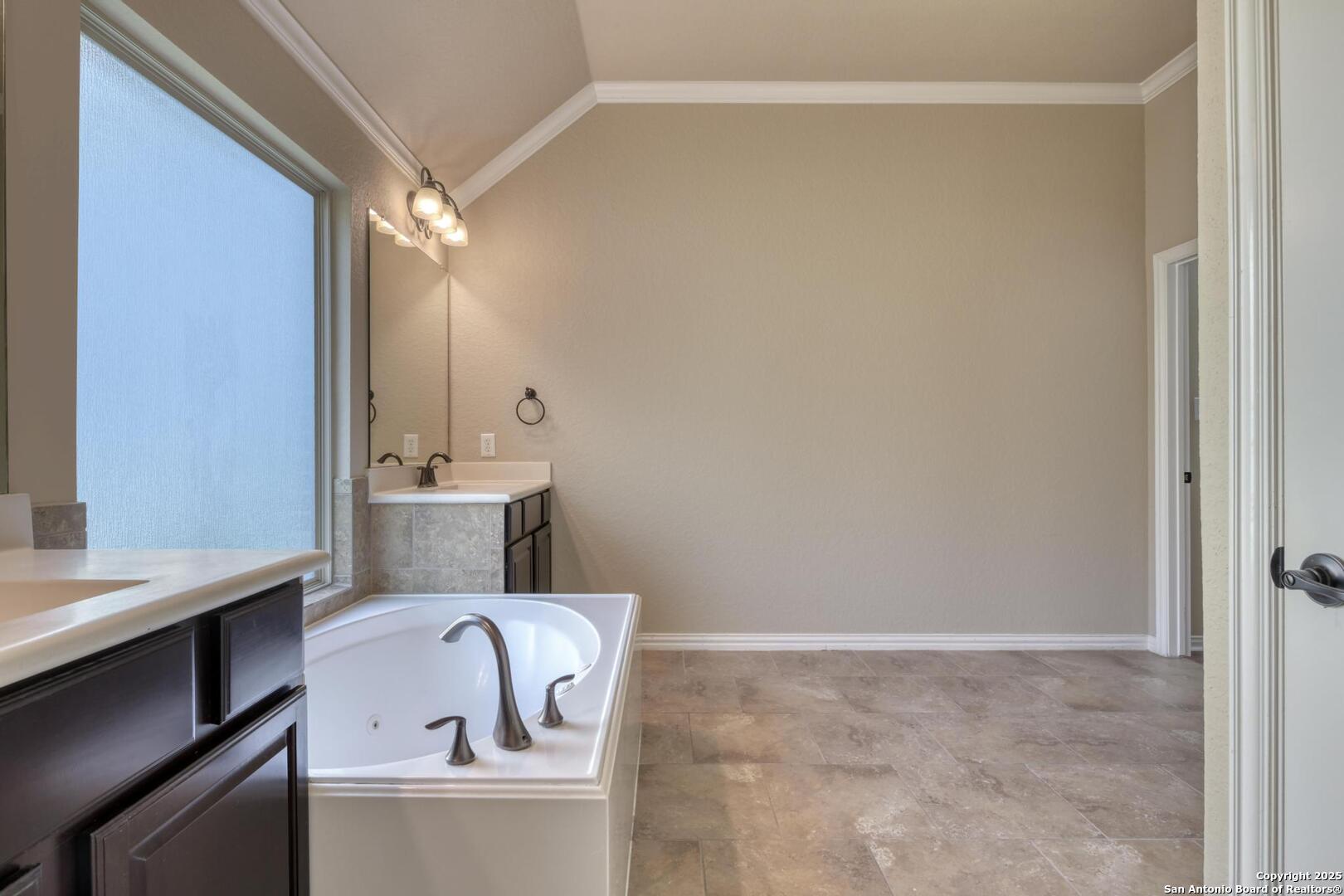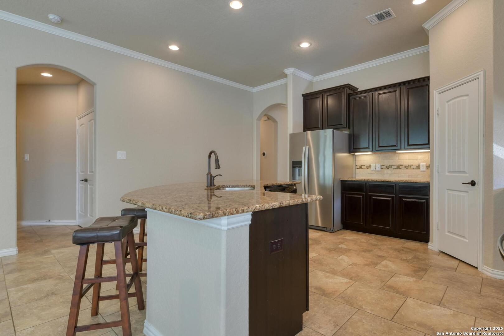 This meticulously maintained home offers a standout floor plan featured as Lennar's popular model home -move-in ready and packed with value due to custom upgrades. Nestled on a level lot that backs to a peaceful green space. This home offers privacy in the backyard. Inside, enjoy an open-concept layout with high ceilings, energy-efficient features like ceiling fans and a programmable thermostat, and custom finishes throughout which includes upgraded kitchen cabinets. Lennar's signature "All Included" features shine here: stainless steel appliances, upgraded granite kitchen counters, crown molding, designer tile backsplash, 18 staggered tile flooring in living areas and Lifeproof flooring in bedrooms (No Carpet), and a luxurious jetted garden tub in the master bath. The full sprinkler system keeps the yard looking its best, while the extended 12 16 patio slab expands your outdoor living space-ideal for entertaining. The wood fence was replaced and stained in 2023. Feb 2025 a new tankless water heater was installed. This home checks all the boxes for style, comfort, and convenience. A must-see for buyers seeking turnkey living in a serene setting!