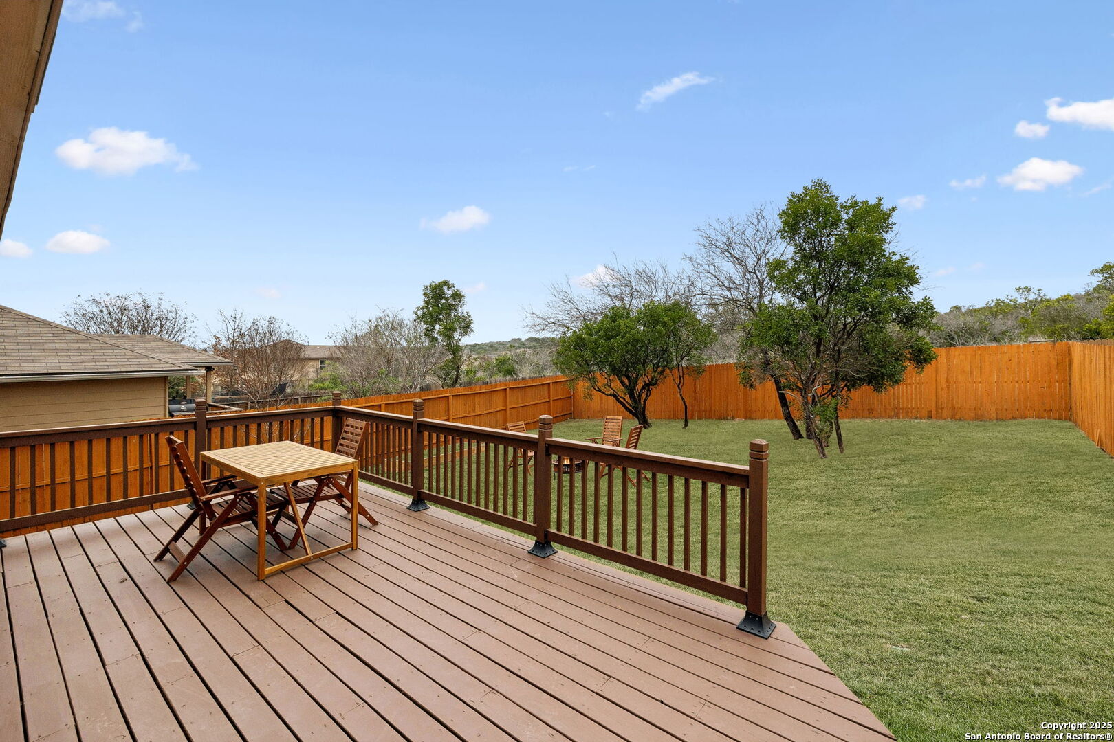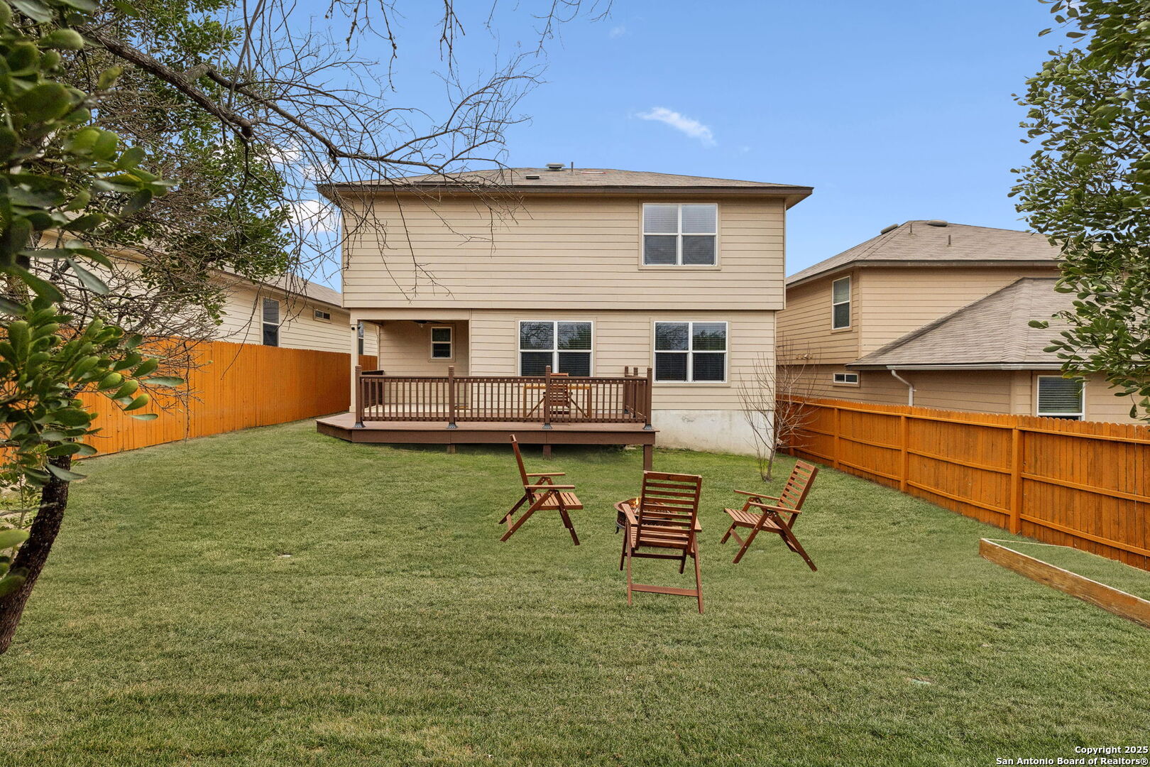 This charming, modern 3 bedroom, 2 1/2 bath is found in popular Laurel Mountain Ranch off 1604 in the heart of the growing Far West Side with an assumable VA loan. The two-story, 2,000+ square foot family home with a two-car, attached garage has a well-designed and open-floor plan with large, shared living and dining space, fully updated kitchen with breakfast bar, a nice-sized laundry room and half bath downstairs. Upstairs, there's a second, substantial living area with the home's three bedrooms and two full baths located off of it. The comfortable primary suite is ample-sized, and its full bath has separate shower and tub and dual vanities. The two secondary bedrooms share a nice hall bath. A nice mix of ceramic tile, wood and carpeting are complimented by a neutral color palette and attractive finishes and fixtures throughout. Out back, there's a well-kept back yard with large deck that compliments the house, where you can look out as far as they eye can see. The home backs up to the neighborhood's expansive nature and walking trails. The Laurel Mountain Ranch neighborhood offers other fantastic amenities, including an NISD elementary school within walking distance, a swimming pool, playground and dog park. Plus, you'll love the convenience of being close to Hwy 1604, Hwy 151, Hwy 90, Seaworld, HEB, Costco, Walmart, hospitals, restaurants, shopping, entertainment and major roads. Come see this great and affordable family home today.