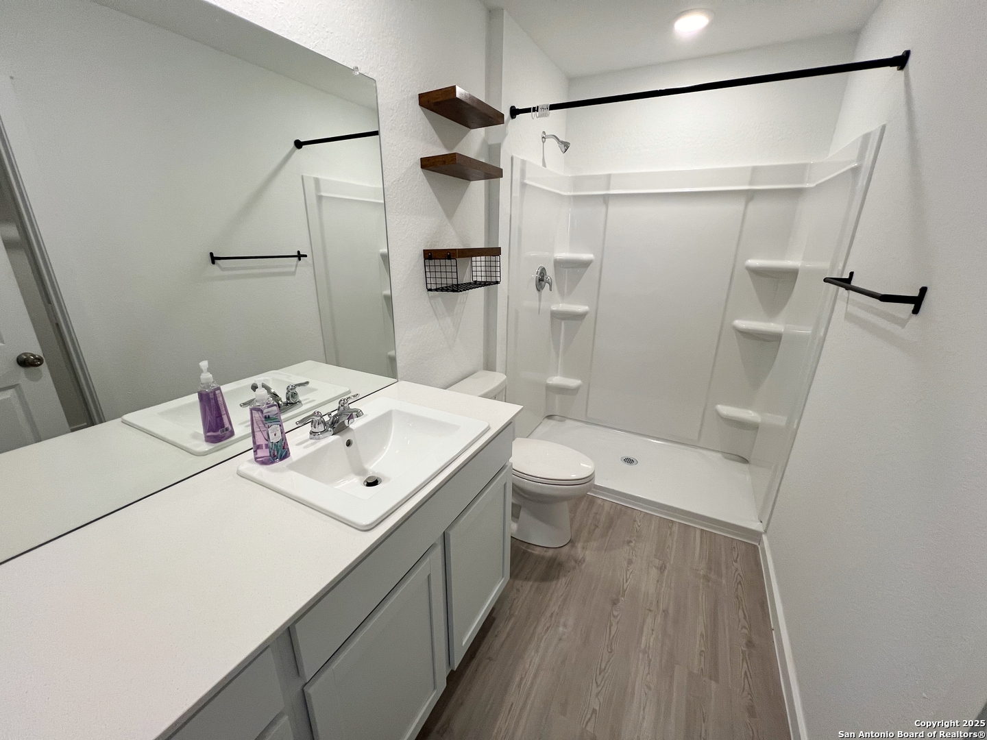 New 4 Bed 2 Bath 1483 sq ft Single Story Home on Cul-de-sac. Vinyl Plank flooring throughout, Carpets only in the bedrooms. Kitchen with Granite Counters. Stainless Appliances, including Fridge, Gas Stove, Microwave, Dishwasher. Primary Bedroom with Walk-in Closet. Primary Bath with Large walk-in Shower. Fenced Yard, Sprinkler System. 2 Car Garage with Potassium Chloride Water Softener. 1GB of high speed internet included. Close to Randolph, 1604, IH-10.
