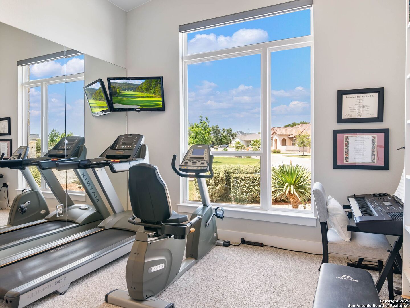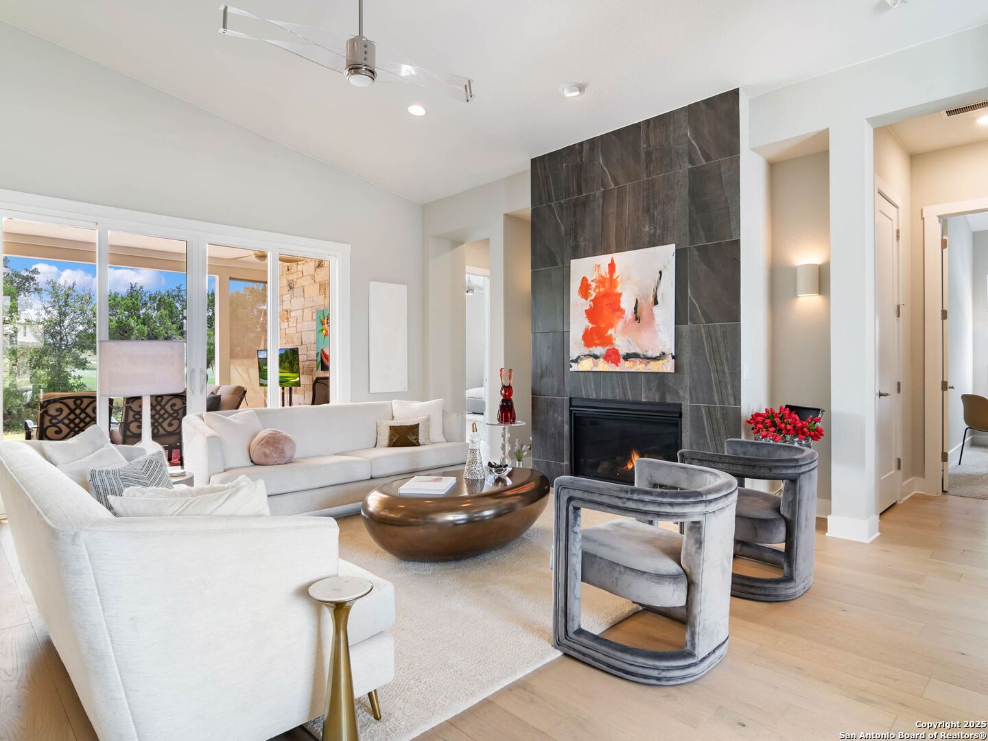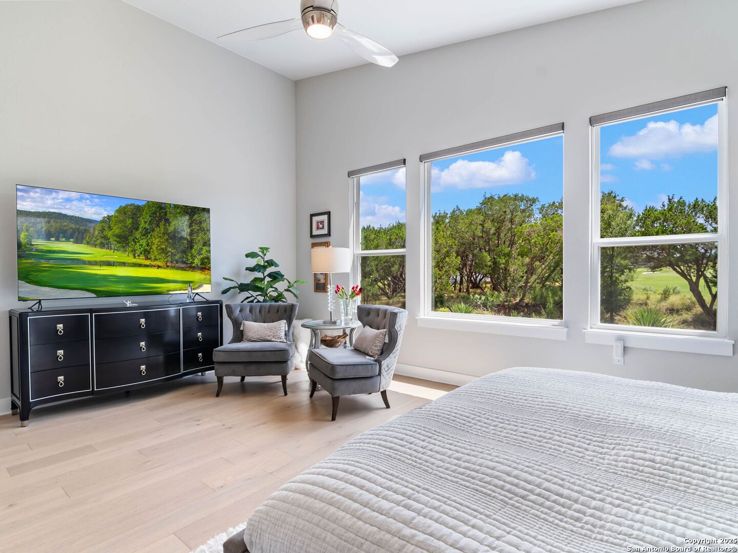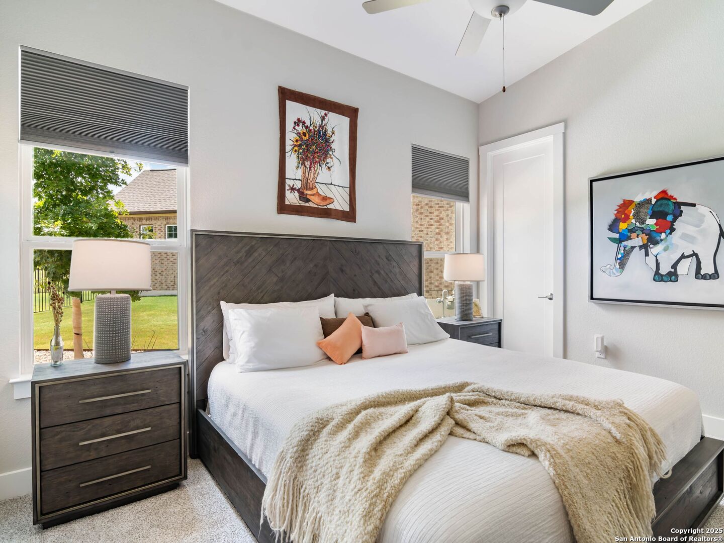Exquisite Home on One of the Largest Lots in Kissing Tree! Welcome to an exceptional opportunity to own one of the most coveted homes in the luxurious 55+ Kissing Tree community! Situated on one of the largest lots and perfectly positioned off Tee Box 8, this stunning property offers expansive, tree-lined views that create a sense of privacy and serenity rarely found. Imagine sipping your morning coffee on the covered back patio, embraced by the gentle sounds of a tranquil water feature and the soothing ambiance of nature. For those who love to entertain, an additional covered patio set further into the yard provides the perfect setting for unforgettable gatherings under the Texas sky. Inside, you'll be greeted by a home where no detail was overlooked. Thoughtfully designed with excellence in mind, this modern beauty boasts designer lighting-including breathtaking blown glass pendant lights-alongside sleek built-in appliances, and high-end finishes throughout. The open-concept kitchen features a large island that flows seamlessly into the living area and out to the patio spaces, offering an ideal layout for entertaining or simply relaxing. This home includes 3 spacious bedrooms, 2.5 bathrooms, and an oversized garage with epoxy flooring, dedicated golf cart parking and a 50a EV outlet too! A charming creek behind the home adds to the property's peaceful, natural ambiance. From the striking light fixtures and stylish ceiling fans to the smart layout and premium upgrades, this home invites you to fall in love the moment you step through the door. There is even a 24K Generac generator, to keep power to your home during any outages! Come experience the lifestyle you've been dreaming of.