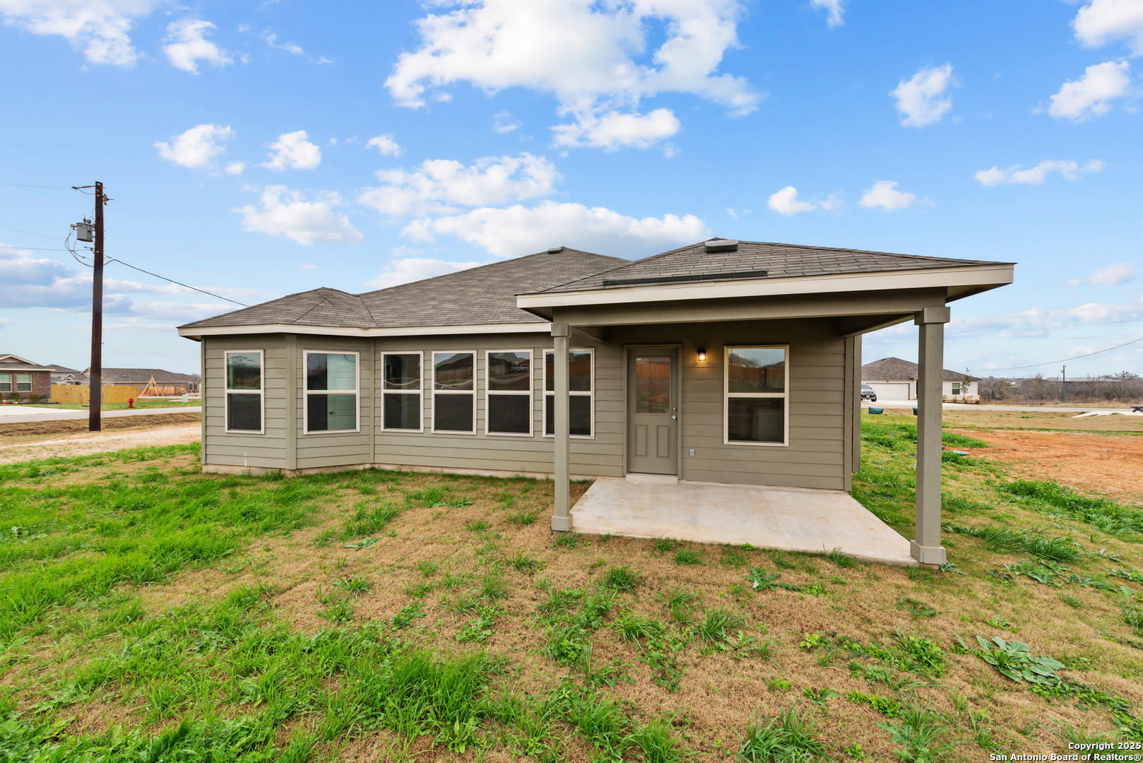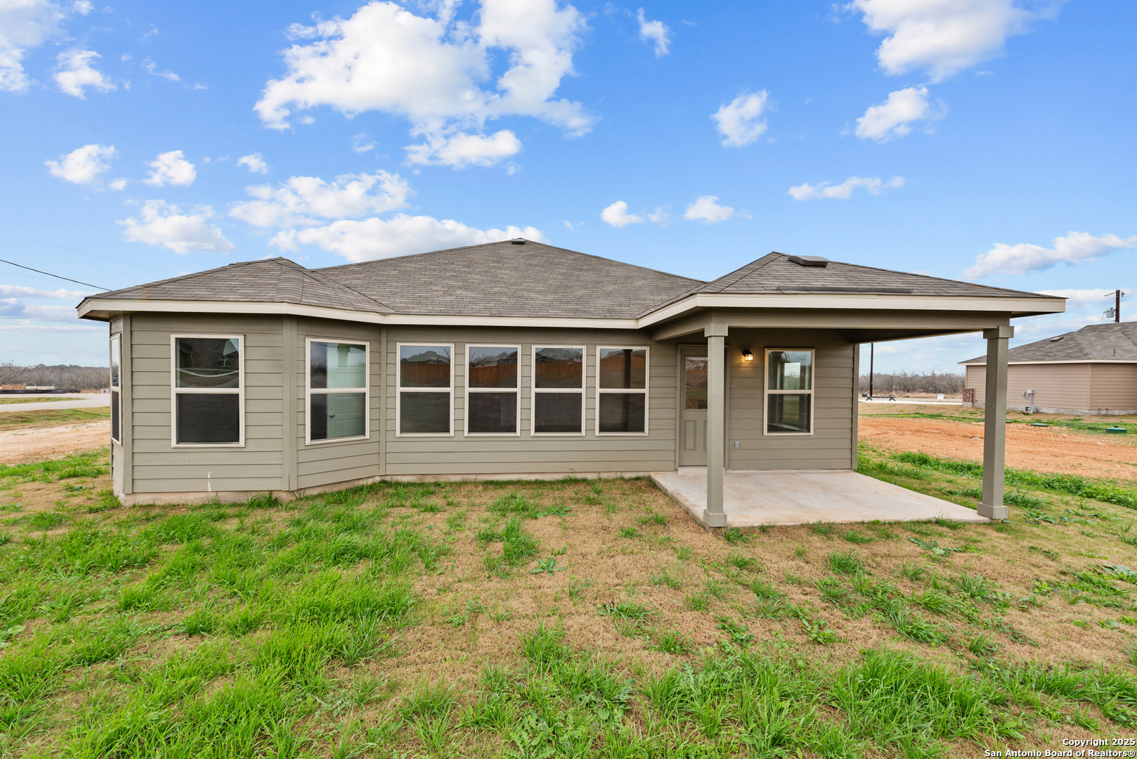 **READY NOW*** Welcome to this stunning 4-bedroom, 2-bathroom home located at 117 Reno Trail in Floresville, TX. Meticulously built by M/I Homes, this new construction offers a perfect blend of modern design and functionality, all conveniently situated on a single level. The home features a spacious open floor plan that seamlessly connects the kitchen, dining area, and living room, creating a welcoming and versatile living space. The kitchen is a chef's dream, with sleek countertops, ample cabinet storage, and modern appliances, making it the heart of the home for culinary endeavors and entertaining guests. Each of the 4 bedrooms is well-appointed, offering ample space for relaxation and personalization. The 3 bathrooms are elegantly designed with contemporary fixtures and finishes, ensuring both style and comfort. Step outside to enjoy the covered patio, perfect for al-fresco dining or simply unwinding after a long day.\ Located in a serene neighborhood in Floresville, this home offers a peaceful atmosphere while still providing easy access to shopping, dining, entertainment, and top-rated schools. It's an ideal place for families, professionals, or anyone seeking a comfortable and contemporary living space.