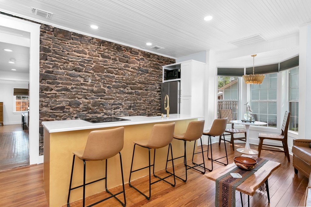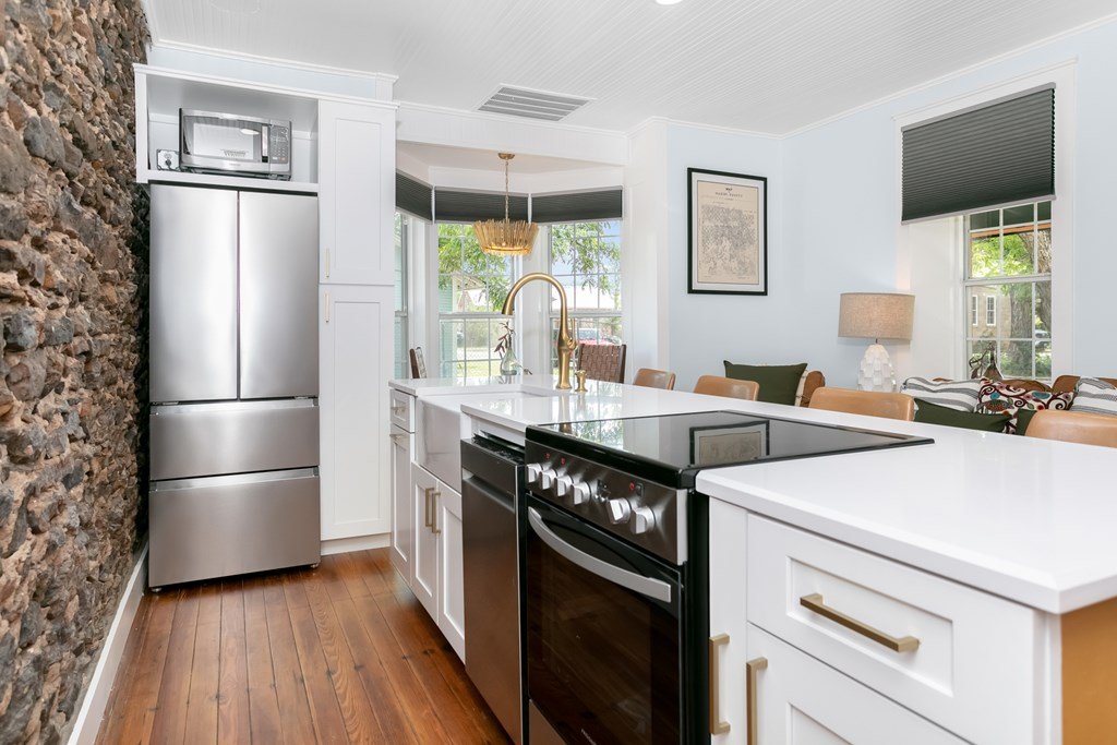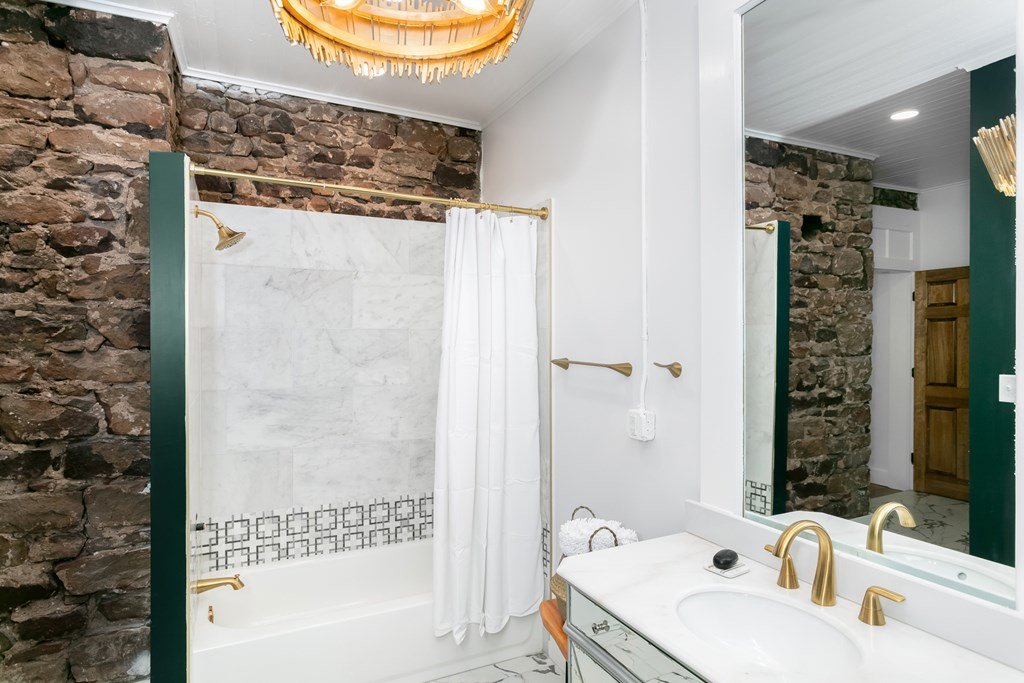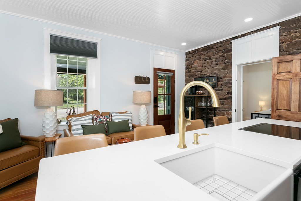 Hill Country Dream Home Just Steps from Historic Mason Square! Welcome to your dream retreat in the heart of Texas Hill Country! This stunning 1931 sandstone home has been meticulously transformed into a modern masterpiece, blending timeless charm with contemporary elegance. Prime Location: Just one block off the picturesque Mason Square, you'll enjoy the best of small-town charm with shops, dining, and local attractions at your doorstep. Spacious Bedrooms: This home boasts 3 beautifully designed bedrooms, each with its own en suite bathroom, offering privacy and comfort for family and guests. Exquisite Design: Experience the perfect blend of Hill Country glam with thoughtfully chosen touches of brushed gold and deep green, creating an inviting and sophisticated atmosphere. Stylish Living Spaces: The open-concept kitchen and living room feature stunning exposed sandstone, providing a warm and rustic backdrop for gatherings and entertaining. Attention to Detail: Every corner of this home showcases exquisite details, from custom finishes to elegant lighting, making it a true showstopper. PLUS all furnishings convey!