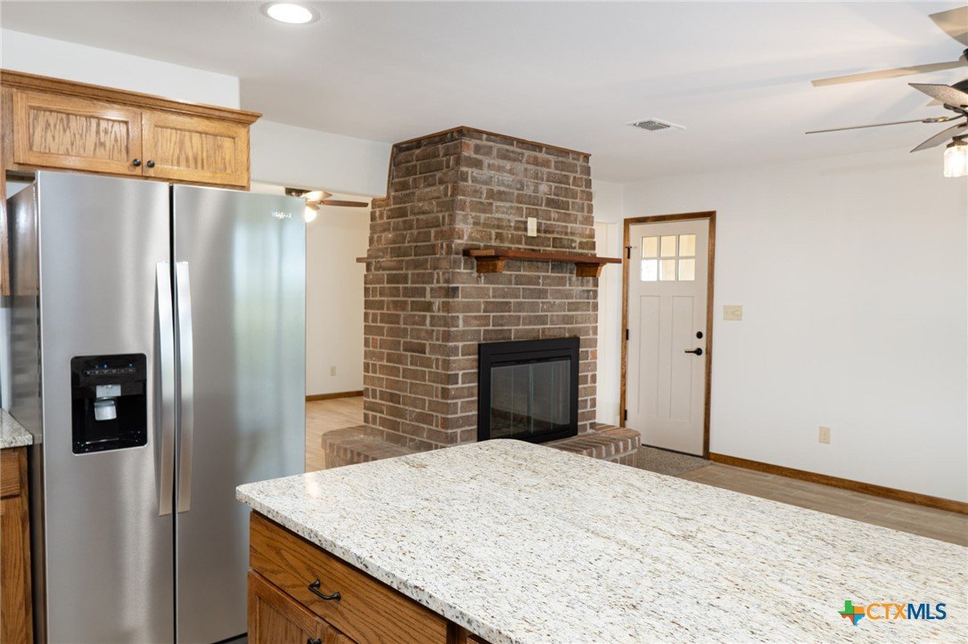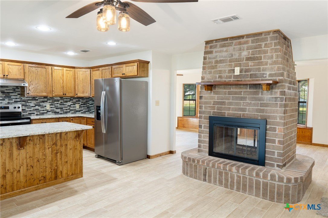Discover country living at its finest with this stunning, newly reimagined home nestled on 11 acres in the desirable Wood-Hi area. Thoughtfully updated and impeccably maintained, this one-of-a-kind property seamlessly blends modern comforts with serene rural charm. Step inside to find granite countertops, beautifully updated bathrooms, and a kitchen designed to impress, featuring custom cabinetry, stainless steel appliances, and ample storage. The spacious living area features a cozy double-sided fireplace, perfect for gathering with family and friends, while new double-pane windows fill the home with natural light and offer energy efficiency. You'll love the generous closet and storage space throughout the home and the covered patio, ideal for relaxing and taking in the peaceful countryside views. Practical amenities include a carport under the roofline, a separate detached garage, and a 40' x 60' barn — perfect for equipment, hobbies, or livestock. The property is fenced and cross-fenced, offering versatility for animals or agriculture, and is graced with large, mature trees providing shade and beauty. Whether you're looking for a forever home, a weekend retreat, or a place to start your homestead, this exceptional property is ready to welcome you home. Don’t miss this rare opportunity to own a piece of the Wood-Hi countryside!