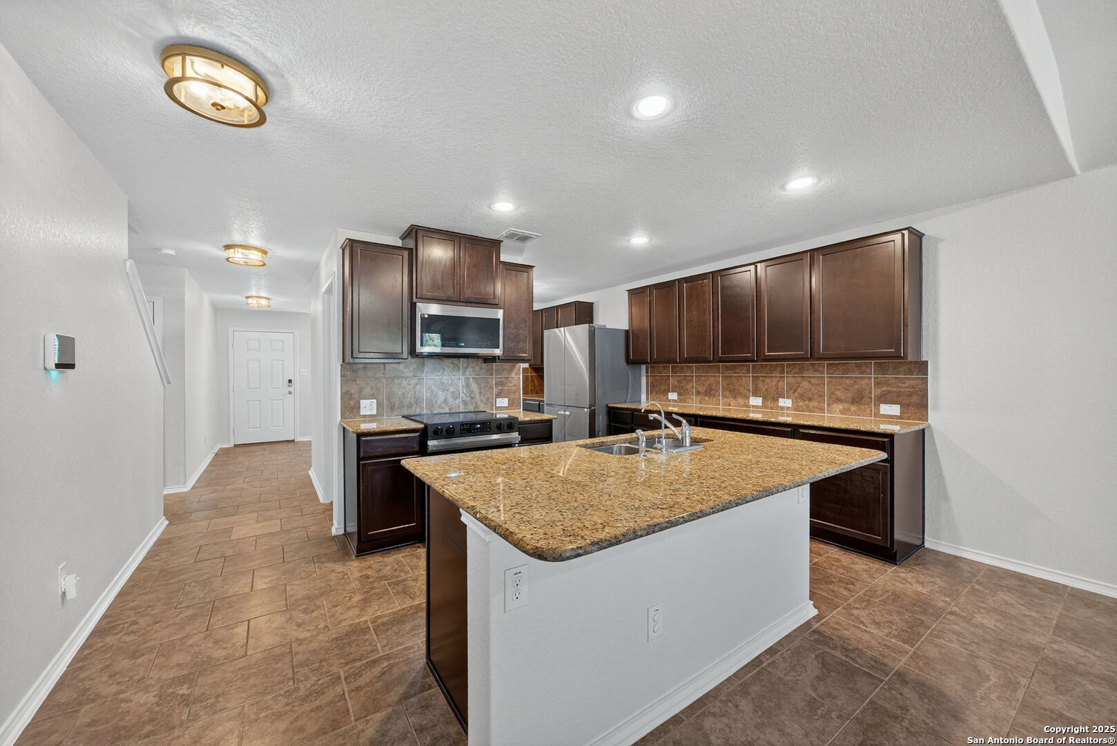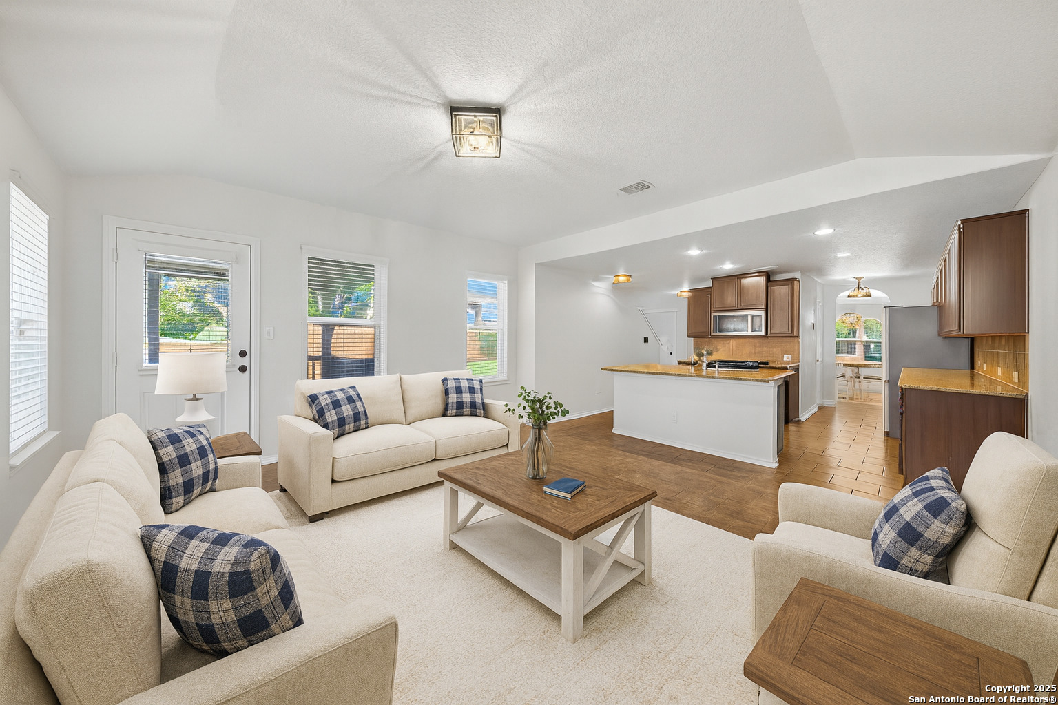 Come and experience this stunning two-story home situated on a quiet cul-de-sac. Oversized tile flooring welcomes you and flows seamlessly through the living room and kitchen. The open layout features a large island breakfast bar, abundant cabinetry and counter space, and a covered patio deck perfect for relaxing. The primary suite is conveniently located downstairs, with all secondary bedrooms and a spacious loft/game room upstairs. The backyard offers a covered patio with a gazebo-an ideal setting for entertaining or family gatherings. Conveniently located near Loop 1604, Hwy 151, Lackland AFB, shopping, dining, and SeaWorld. A must-see home!