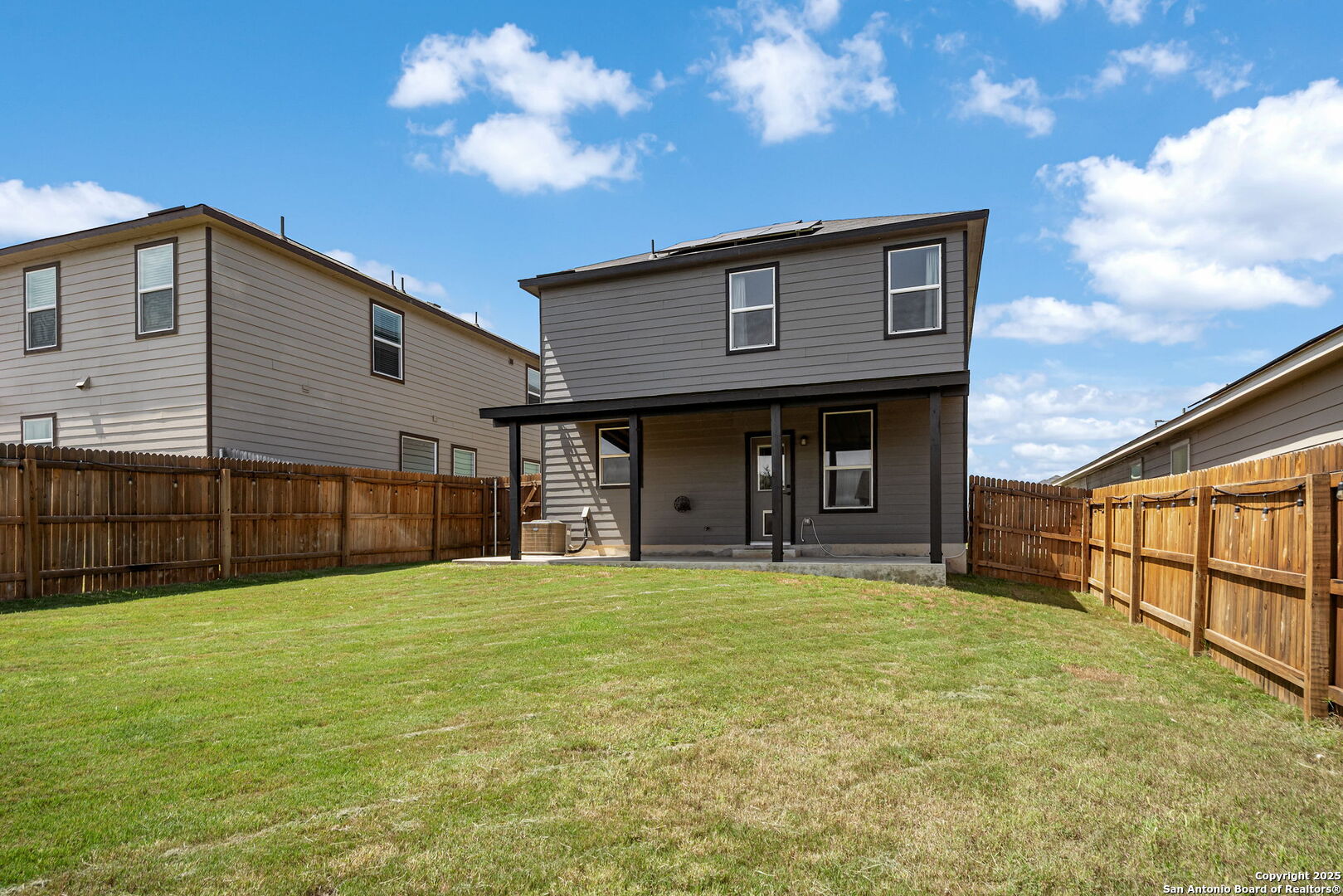 Spacious 2-story home featuring 3 bedrooms, 2.5 bathrooms, and a versatile loftperfect for a second living area, home office, or playroom. The open-concept layout includes a large living area, separate dining space, and a well-appointed kitchen with stainless steel appliances, ample cabinetry, and countertop space. All bedrooms are located upstairs for added privacy, including a generous primary suite with a walk-in closet and a private bathroom featuring a garden tub, stand-in shower, and dual vanities. Enjoy outdoor living with a large covered patio and a large fenced backyardideal for relaxing or entertaining. Home is equipped with solar panels for energy efficiency and lower utility costs. Additional highlights include a 2-car garage and a dedicated laundry room. Conveniently located off Hwy 90. Quick drive to Lackland AFB.