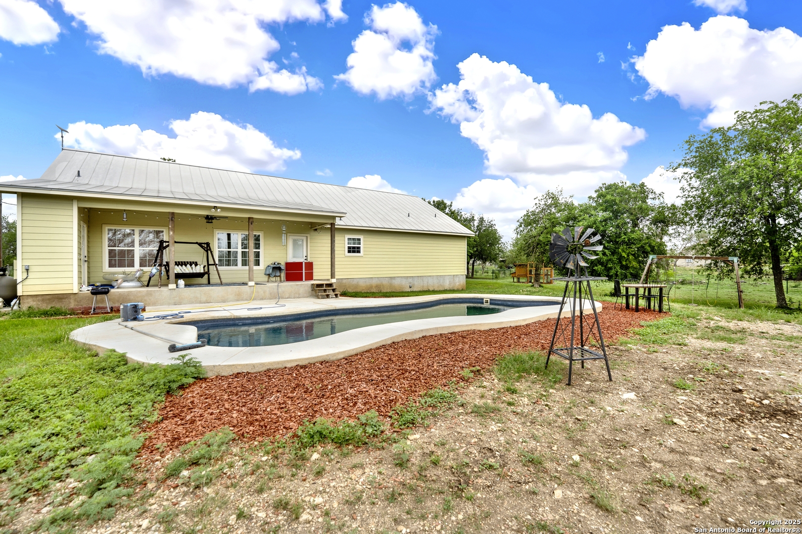 SELLER OFFERING CLOSING CONCESSIONS!! Impressive 10 acre ag-exempt property just north of Hondo, TX! Enjoy this homestead set up perfectly for your enjoyment from outdoor recreation to an exquisite farmhouse, this property has it all! Whether it's hunting, tending to the chicken coop or just swimming and relaxing in the beautiful pool, you won't lack for entertainment. As you enter this property off of 421 the gated easement road leads to the fully fenced and cross fenced acreage, a 2500+ square foot home with an in-ground pool, craft/office house and large 30x40 metal shop with a lift. As you enter the home you will notice the open concept, high ceilings, amazing kitchen and tile work and modern farmhouse flair. The split design offers privacy with the owner's suite on one side of the home with a large double vanity, gorgeous tiled shower and spacious closet. On the opposite side of the home you will find 3 additional good size bedrooms and another WOW bathroom! Just minutes to Hondo and not a far drive to San Antonio. Enjoy country living at its finest with amenities within a short drive!