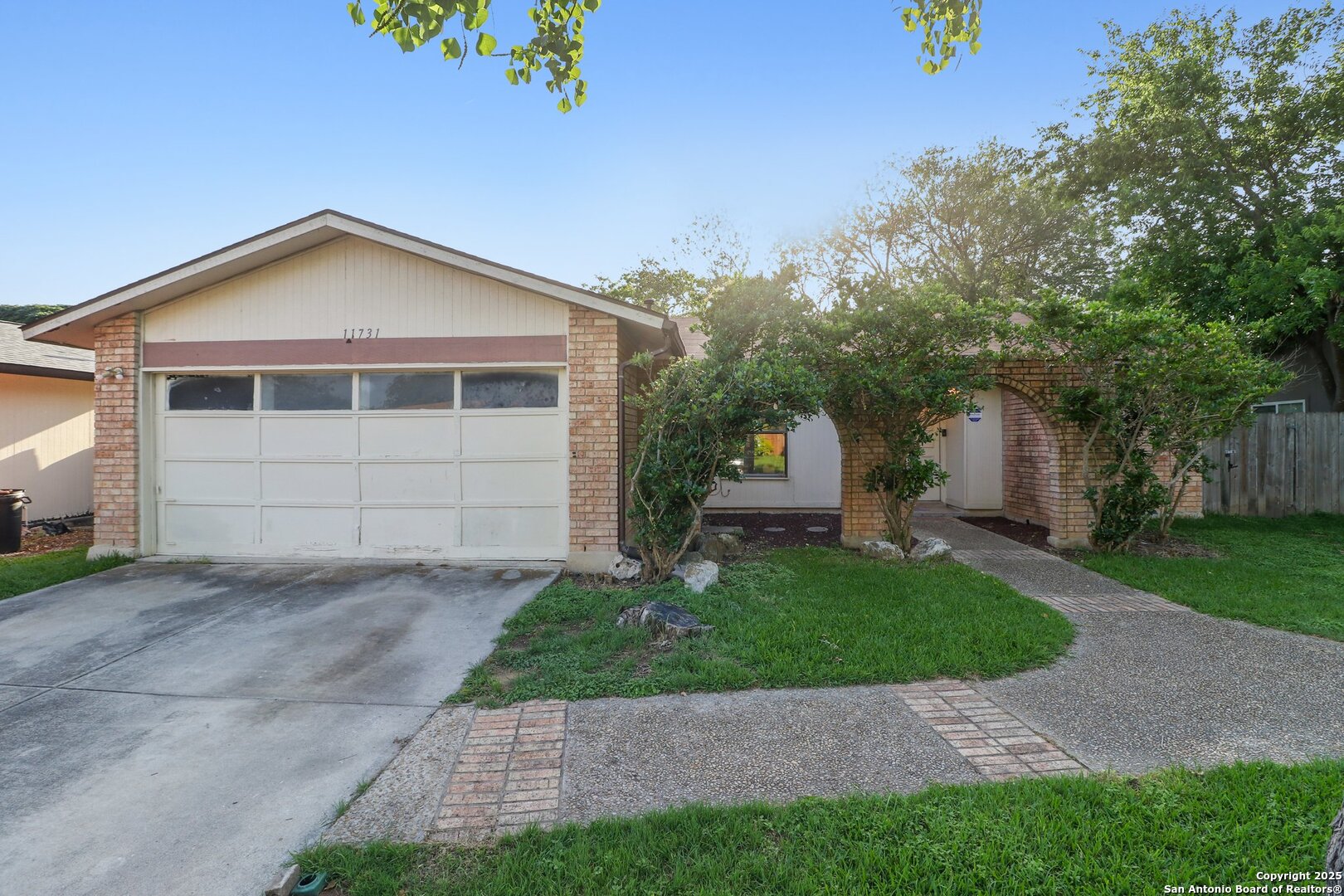 Must-See Opportunity! This charming single-story traditional home is full of potential and ready for your personal touch. Featuring a spacious open floor plan, tile flooring throughout, and a desirable split-bedroom layout, it offers both comfort and versatility. The expansive backyard includes a large storage shed-perfect for projects or extra storage. Out front, you'll love the eye-catching brick arch patio and elegant double front doors that add tons of curb appeal. The converted garage offers flexible space ideal for a guest room, game room, or home office. With just a little TLC, this home could truly shine. Located minutes from top shopping, dining, and entertainment-don't miss your chance to make it yours!
