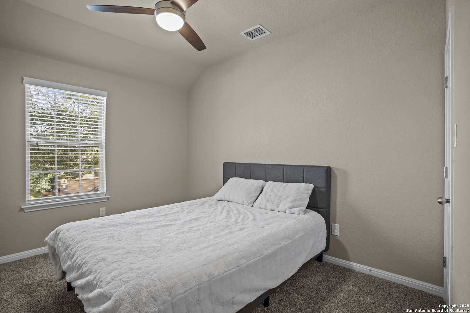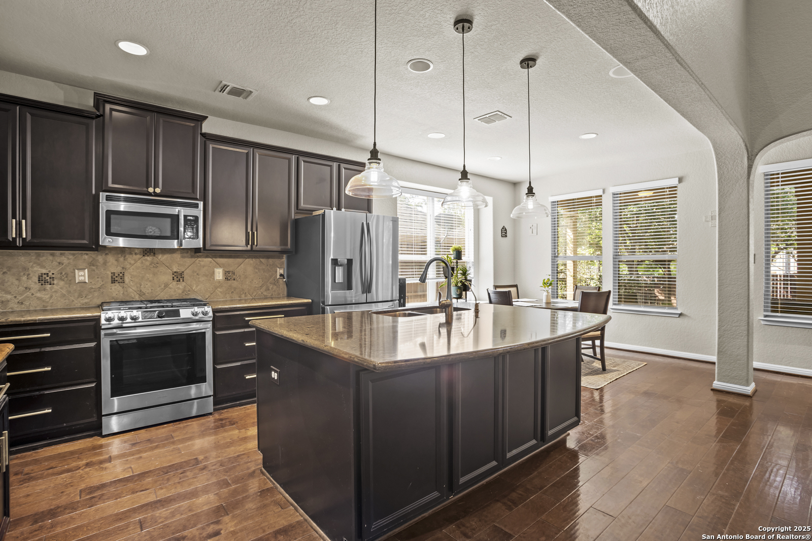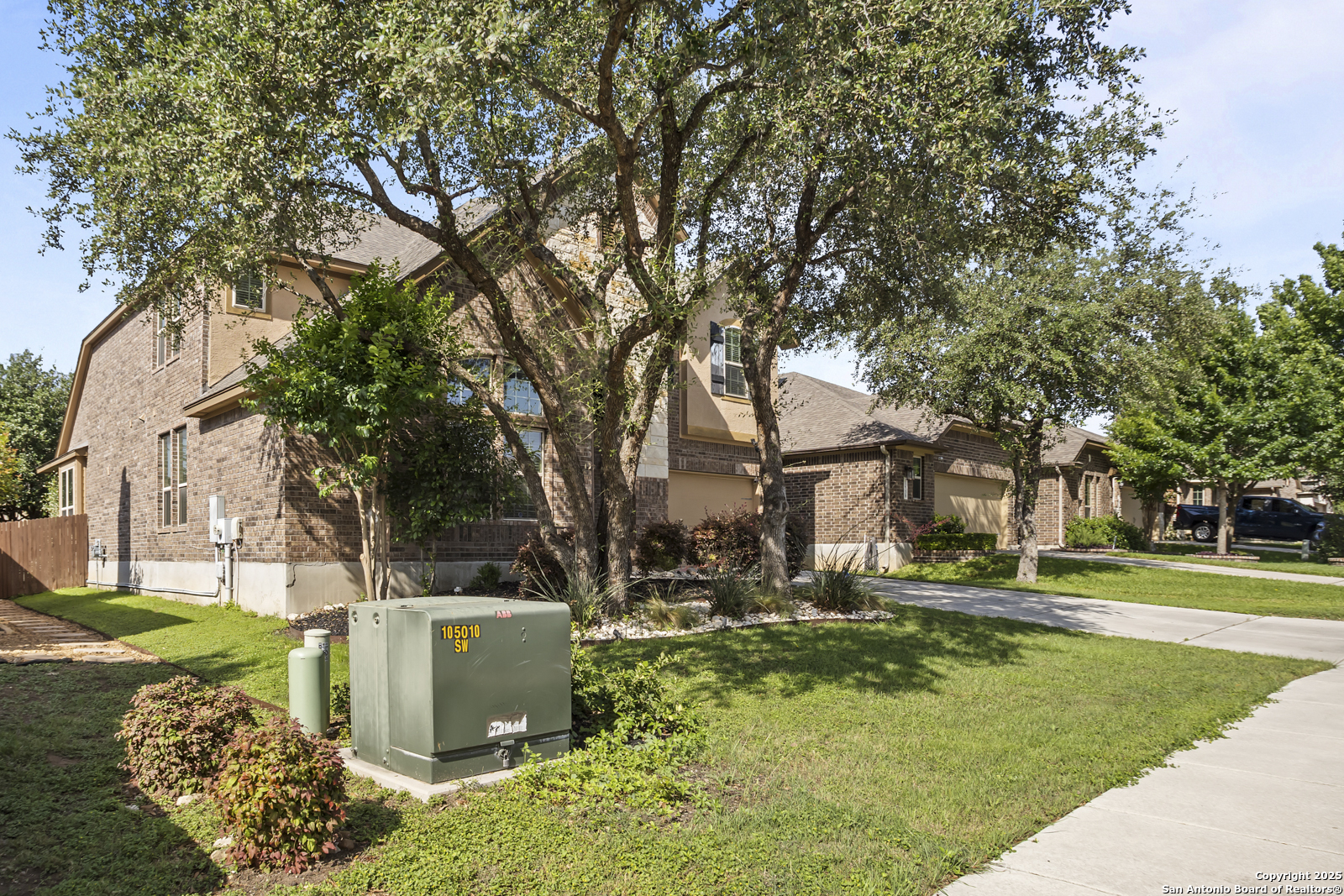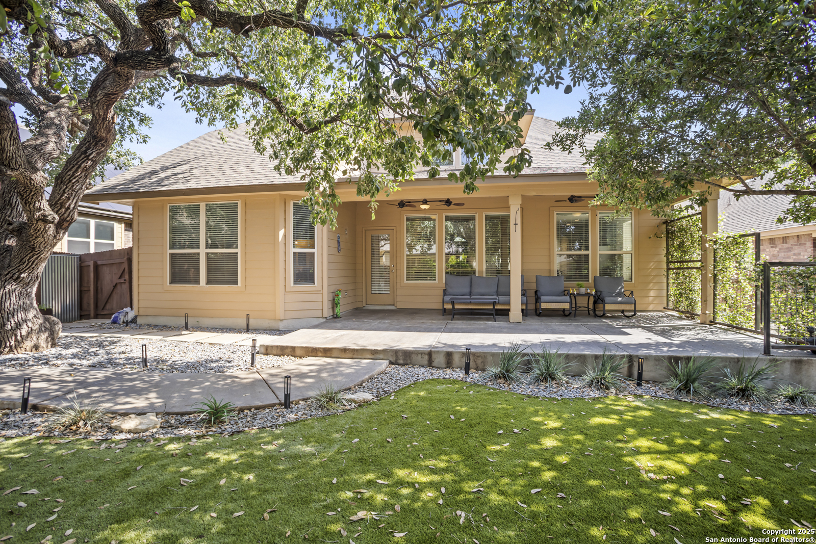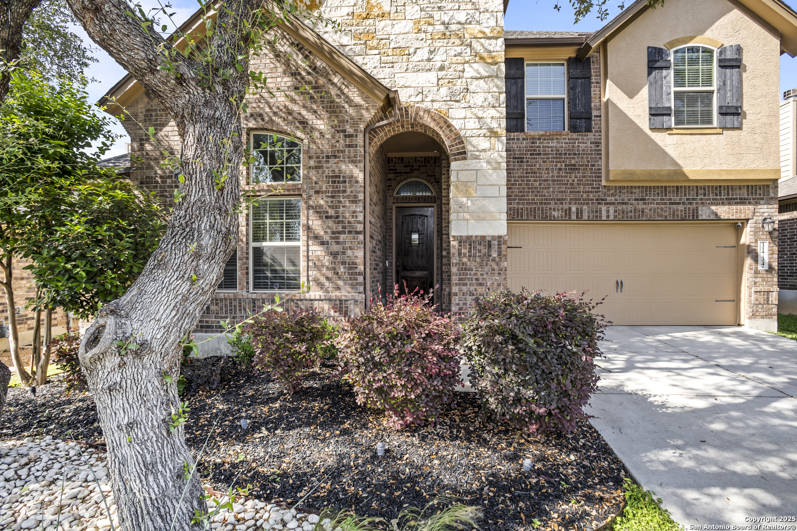 Welcome to this stunning 4-bedroom, 2.5-bathroom home located on the west side of San Antonio, near the vibrant Alamo Ranch dining and shopping district. Upon entering, you'll find a private office at the front of the house-perfect for working away from the main living areas. Next, a spacious dining room seamlessly connects to the kitchen, making it ideal for hosting gatherings. The grand kitchen boasts granite countertops, ample cabinet space, a large island, and gas cooking on a range stove with built-in stainless steel appliances. The adjacent living room features high ceilings and an abundance of natural light, offering a comfortable space for relaxing and entertaining. The downstairs master suite, located just off the living room, also enjoys high ceilings and plenty of natural light. The ensuite bath includes a double vanity, a separate shower and tub, and a walk-in closet. Upstairs, you'll be welcomed by an expansive loft that connects the remaining bedrooms, ensuring a great flow throughout the upper level. In the backyard, a large covered patio awaits, complete with ceiling fans for added comfort as well as stone walkways through the backyard.