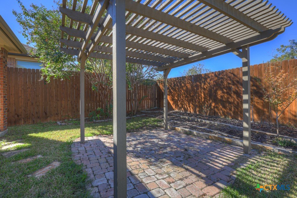 Check out our new pictures! REDUCED. *** Foundation work completed with transferable warranty. *** Beautifully maintained, controlled (gated) access garden home with lovely backyard has 3 bedrooms, 2 baths plus an office with french doors giving you ample space for all your needs. Open living, kitchen and dining makes entertaining fun. Enjoy sitting on your back porch while you enjoy your lush backyard and butterfly gardens. Close to schools, shopping and restaurants. HEB and Walmart are just down the street. Easy access to Hwy 35. **Moveable shelves in garage are excluded.