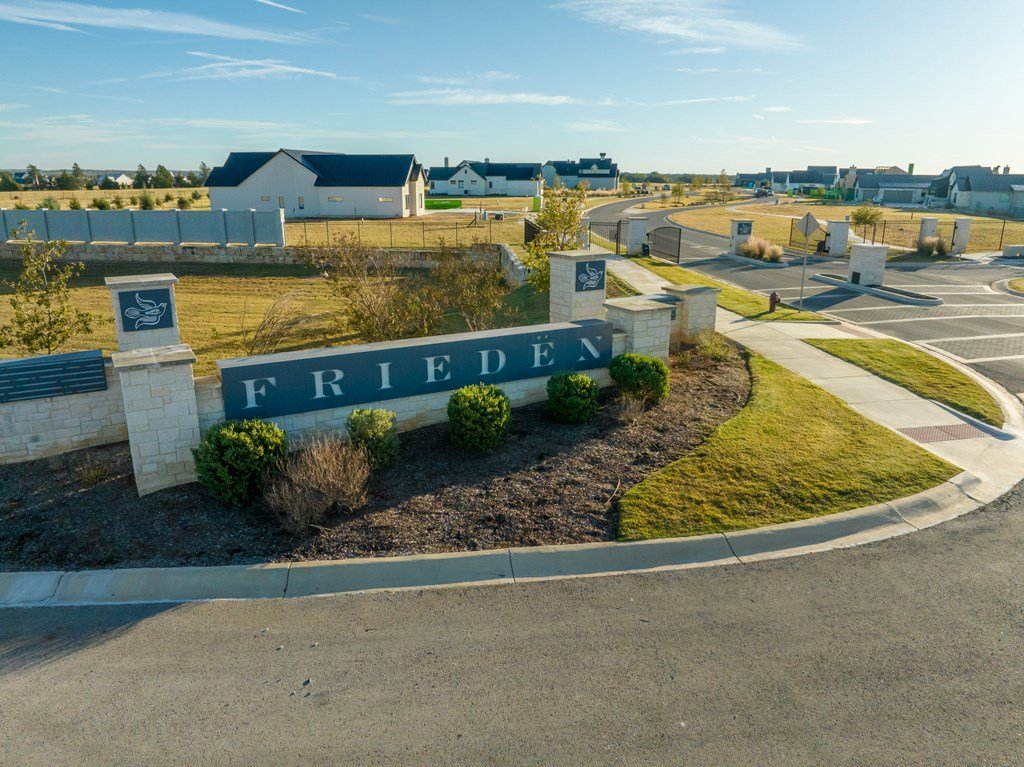 Home to be built on two Lots! Build your dream home in a Southern Living–approved gated community. Builder is ready with customizable plans for this unique home located on a shaded double lot with post oak trees. Open-concept kitchen, dining, and living area with a double-sided gas fireplace. Primary suite is privately located with its own porch, large tile shower, separate tub, and 160 sq. ft. walk-in closet. Two additional bedrooms in a separate wing, each with a private bath and walk-in closet. 2-car garage plus golf cart bay, polish cement floors throughout. Includes allowances, tech rough-ins, and a landscape plan by a landscape architect. Time to meet with this "Boot Ranch" approved builder and customize your new home. Landscaping, driveway, appliances, and certain upgrades negotiable. Builder specs and drawings available with initial meeting with the builder. Frieden is the first Southern Living Inspired Community in Texas, is recognized among the south's most prestigious neighborhoods, reflecting the spirit and style of Southern Living. The 2026 Southern Living Ideal House is currently under construction within the community. Become a part of this wonderful community just minutes from the bustle of Main Street in one of the most popular town's in Texas.