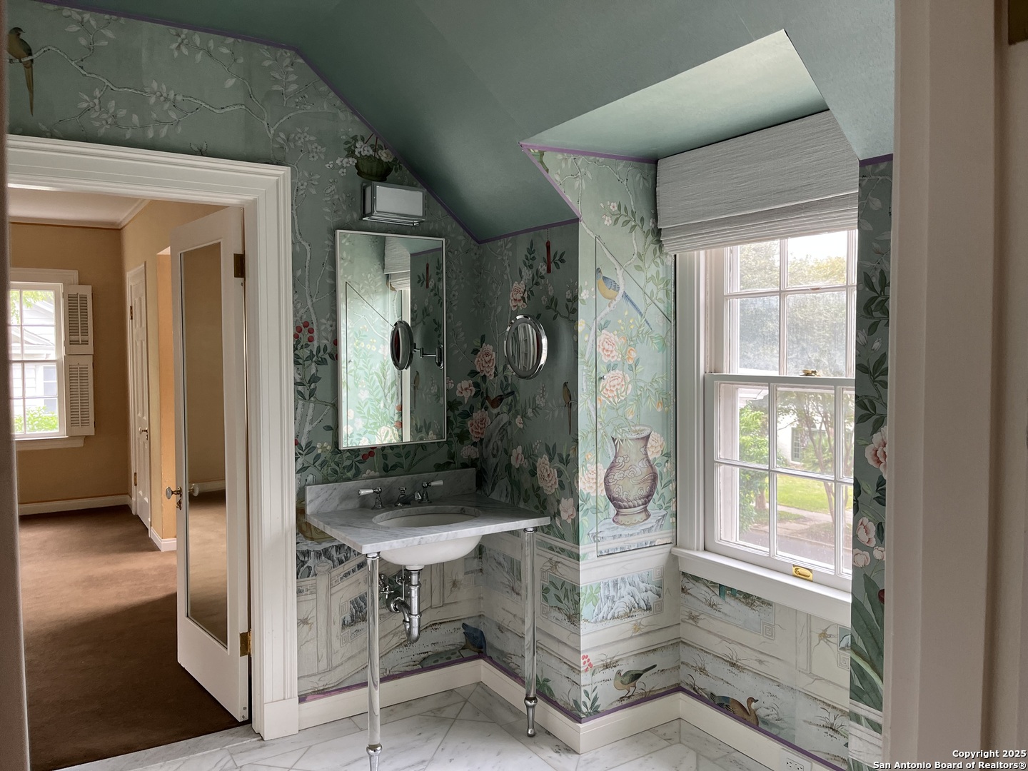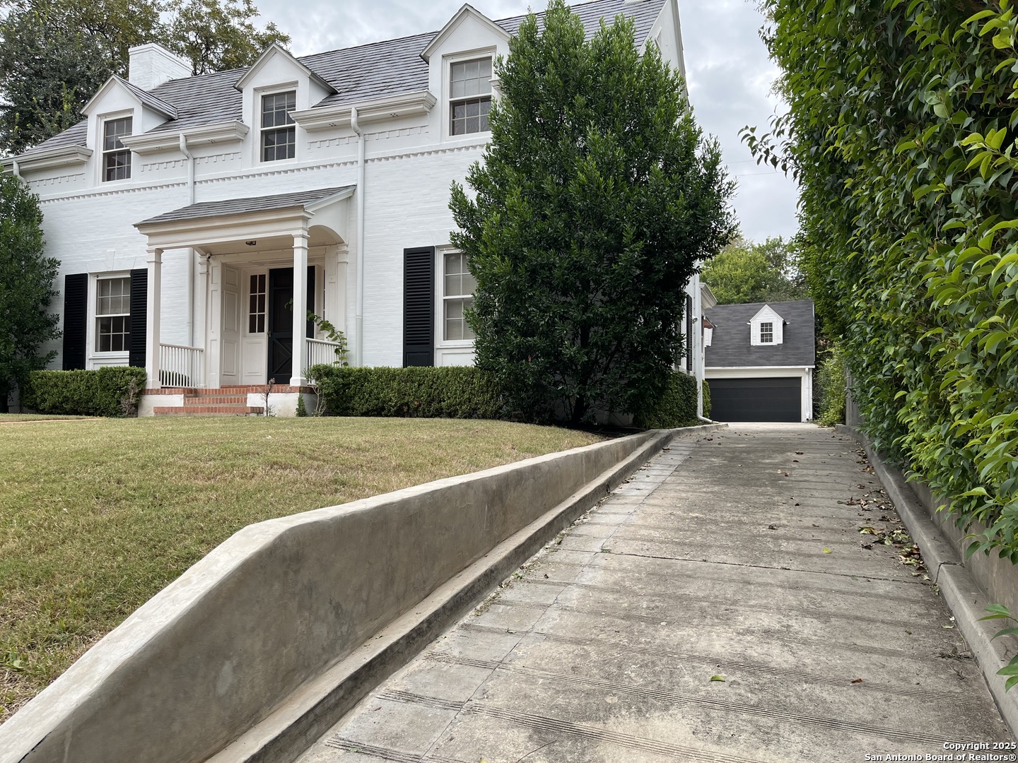This beautiful home in Monte Vista is situated on a wonderfully landscaped lot with mature trees and shrubbery. The Georgian style architecture is evident on both the interior and exterior. Although officially a 2-bedroom, 2 bath home, a downstairs library and bar is a likely location for a remodel to convert to a main floor primary and ensuite. The property has a guest/maid's quarters above the garage. Beautiful lap pool and patio in secluded backyard. Lots of hardwood floors, windows and stylish finishes. Convenient location in a fabulous neighborhood!