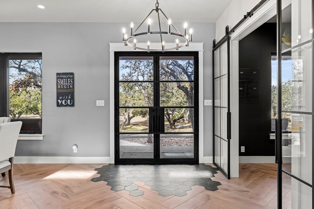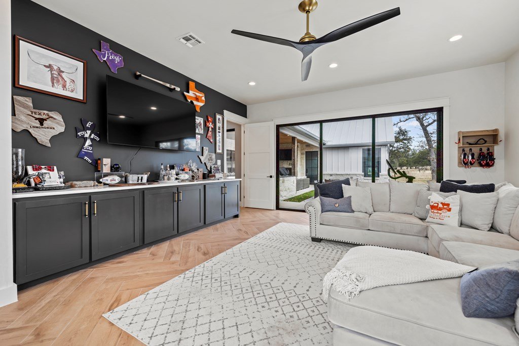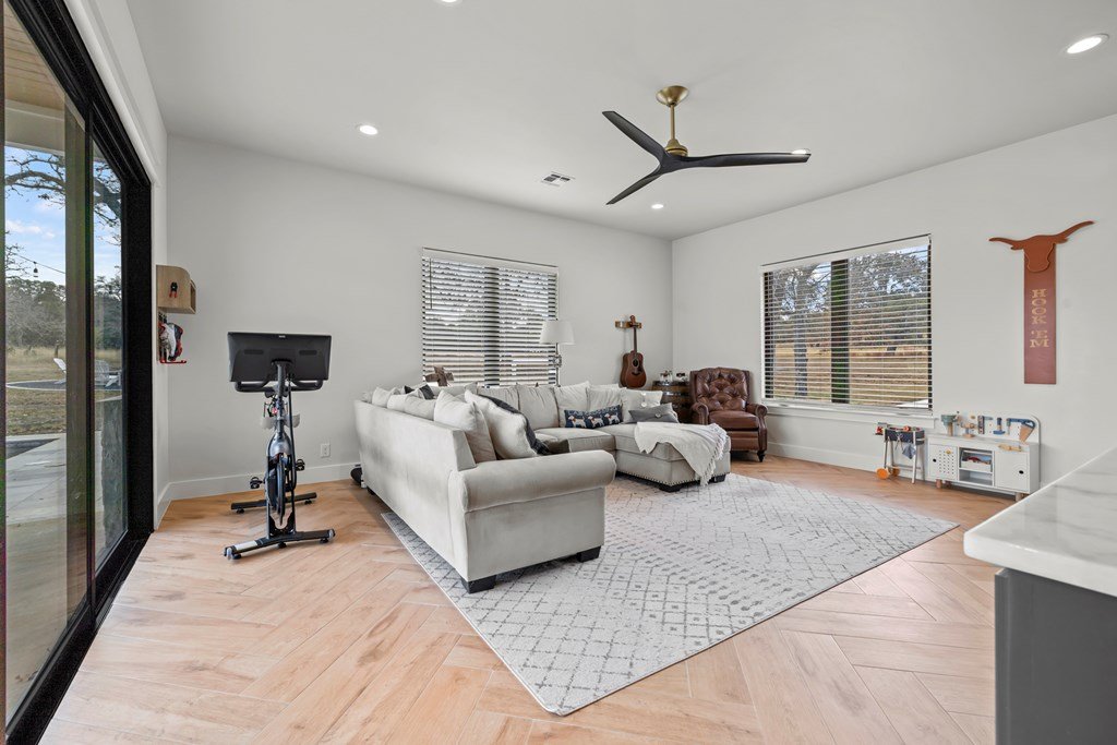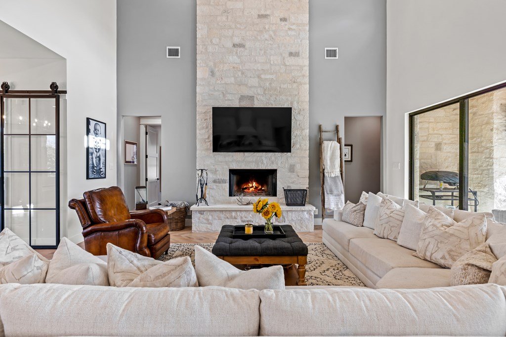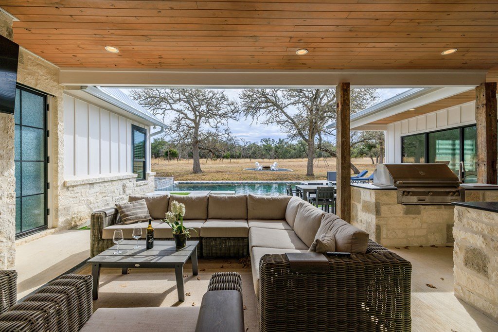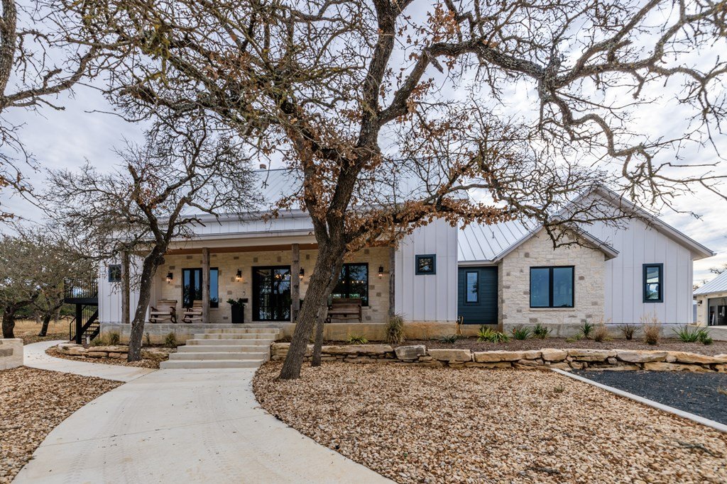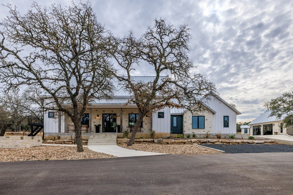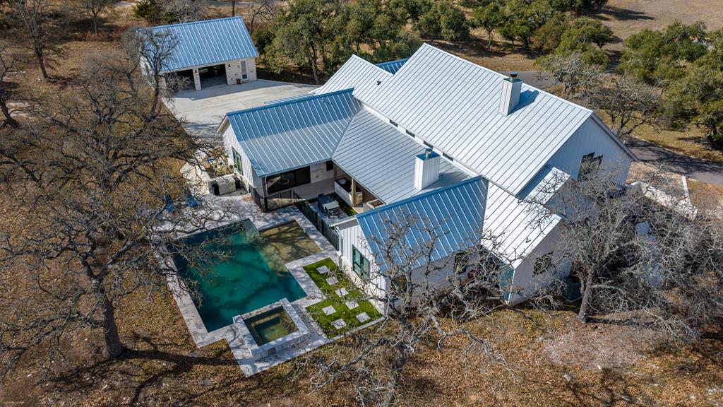 This beautiful home w/ 4 bedrooms, 4.5 baths sits on a 5.82-acre scenic lot with Texas Hill Country views. The interior features a spacious layout with abundant natural light, a sleek kitchen with modern appliances and ample cabinetry. The open floor plan seamlessly integrates the indoor and outdoor living spaces. The property includes a covered patio, a pool, a hot tub, and an exterior entrance guest quarters, as well as an additional garage and storage building. The home has a Lutron all-in-one lighting system and Pentair remote control system. It's located in the beautiful gated Hidden Springs Agrihood community described as "luxurious country living" with a 29-acre community garden and pond, plus pickle ball courts, pool and pavilion - all about 15-minutes from historic Fredericksburg and 50-minutes from a major airport. *Buyer/Buyer agent to verify all details including square footage.