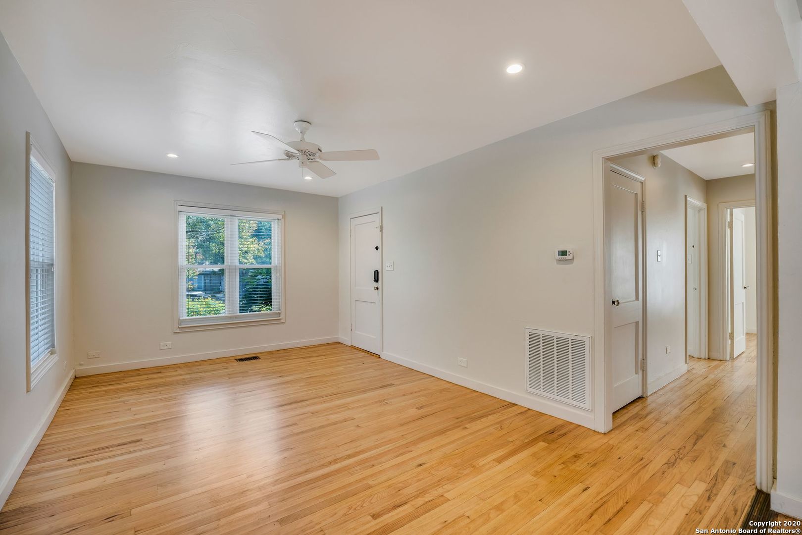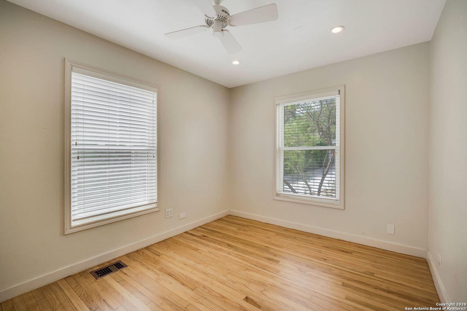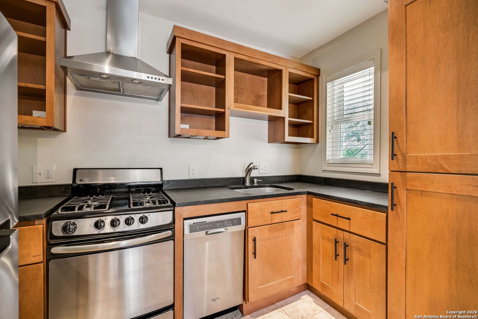DOWNSTAIRS Unit of this charming Duplex is a 2 bedroom 1 bath and available for move in late May or early June! Gated entrance to beautiful xeriscape back yard and covered parking. Kitchen is small but has all the amenities including stainless steel appliances, granite countertops and custom cabinets. Open living and dining area. All flooring is wood except tiled bathroom and travertine kitchen. Washer and dryer included the apartment's utility room. LOCATION is convenient to restaurants, shopping, universities, Alamo Heights, Olmos Park, downtown, San Antonio Int'l airport and major highways.