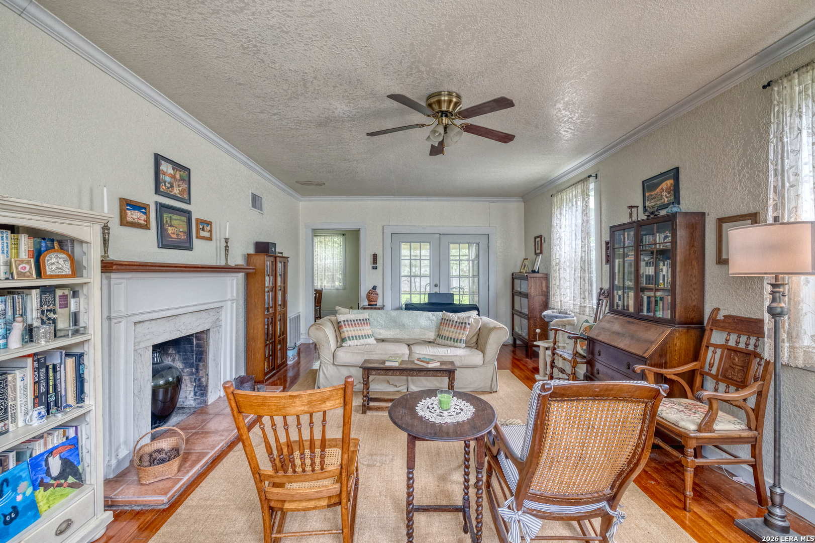 Step into storybook charm with this delightful two-story home that feels like something straight out of a fairy tale. Nestled on a beautiful, tree-filled lot, the setting is as inviting as the home itself, with mature, towering trees creating a peaceful backdrop and a sense of privacy. Inside, you'll find spacious rooms throughout, accented by a warm blend of hardwood and ceramic tile flooring. The living room is the heart of the home, featuring a cozy wood-burning fireplace-perfect for gathering on cool evenings. The layout offers both functionality and character, with a unique Jack-and-Jill bath connecting the primary bedroom to a quaint adjoining space currently used as an art studio, ideal for a home office, reading nook, or creative retreat. Downstairs, directly beneath this space, a charming screened-in porch invites you to relax and unwind while overlooking the picturesque backyard. Whether you're enjoying morning coffee or evening breezes, this space captures the essence of quiet country living. The backyard also features a large outbuilding, offering excellent storage or workshop potential. With its timeless charm, generous spaces, and enchanting setting, this home is full of opportunity. A little tender loving care will truly make it shine-transforming it into a one-of-a-kind jewel box you'll be proud to have as your home.