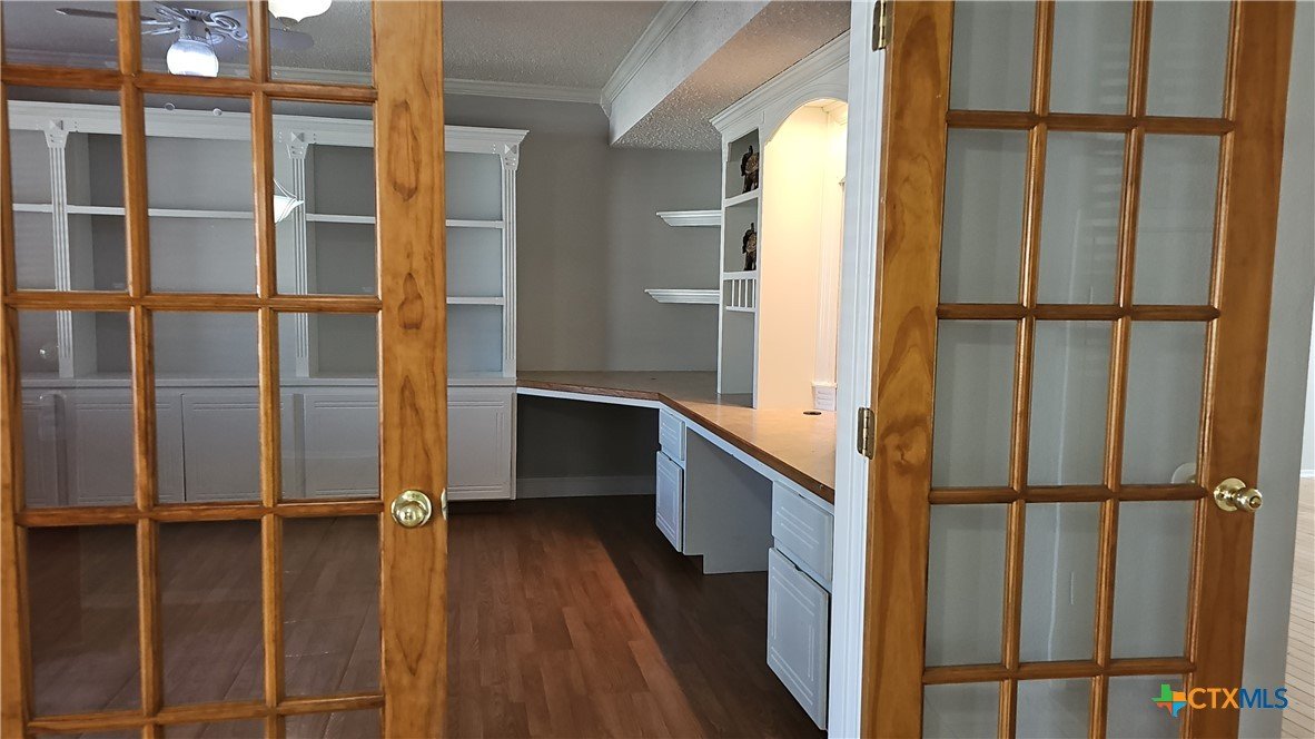 Ready for quick close - GO! Attach water district notice under OTHER.Nice and bright practical home featuring a downstairs master;large office with french doors and built-in desks, shelves & plenty of work space, great for home office: formal dining; practical kitchen with tiled counter and back splash; open breakfast area with plantation shutters; floors are hardwood;covered patio with benches; extended patio area which is great for entertaining family & friends; large backyard with mature large trees