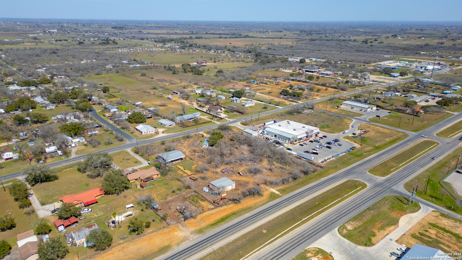 4.5+ Acres with PRIME frontage to Hwy 87 and Loop 107. Access from both sides!! Perfect for any type of business. Not in the City Limits of San Antonio. This property also includes a 2077sqft Rock home. Neighboring Tractor Supply. Hwy 87 is heavily traveled with so many new neighborhoods and businesses moving in just within a few miles.