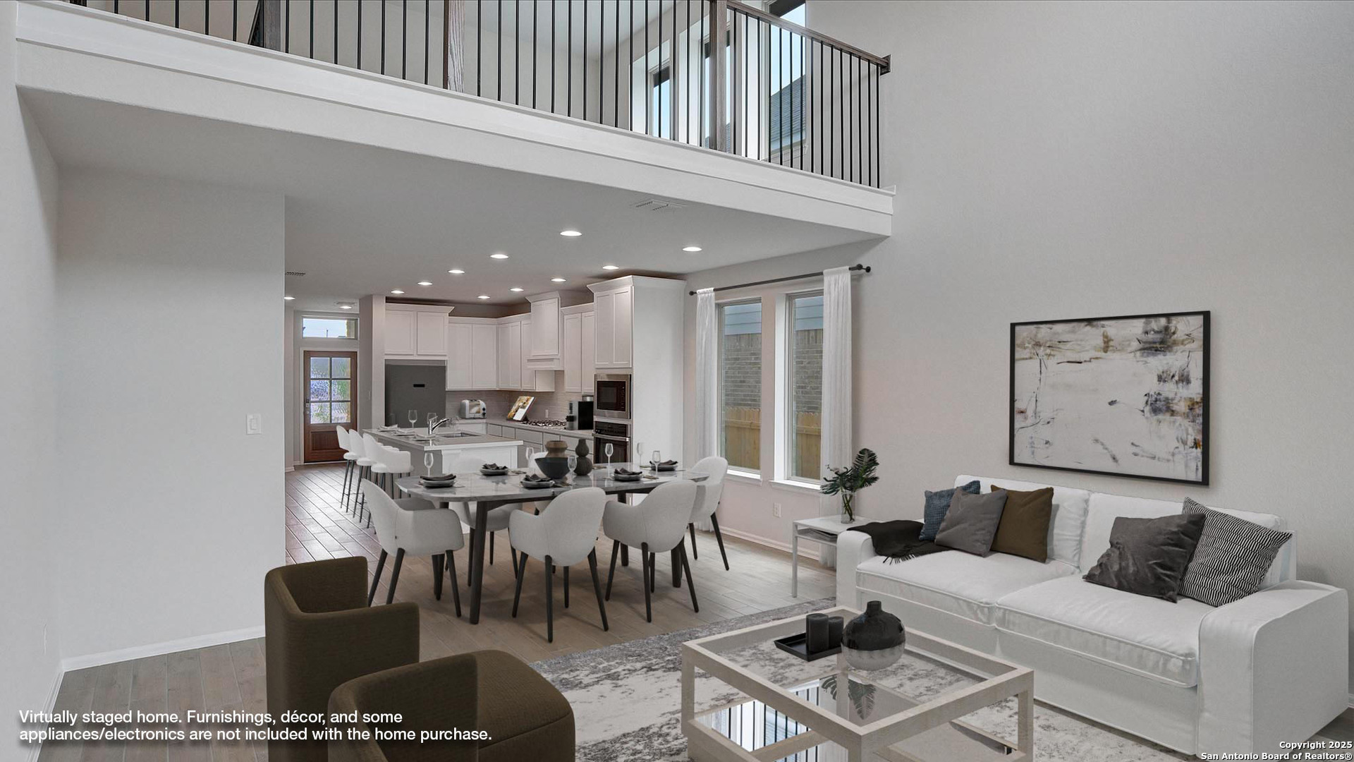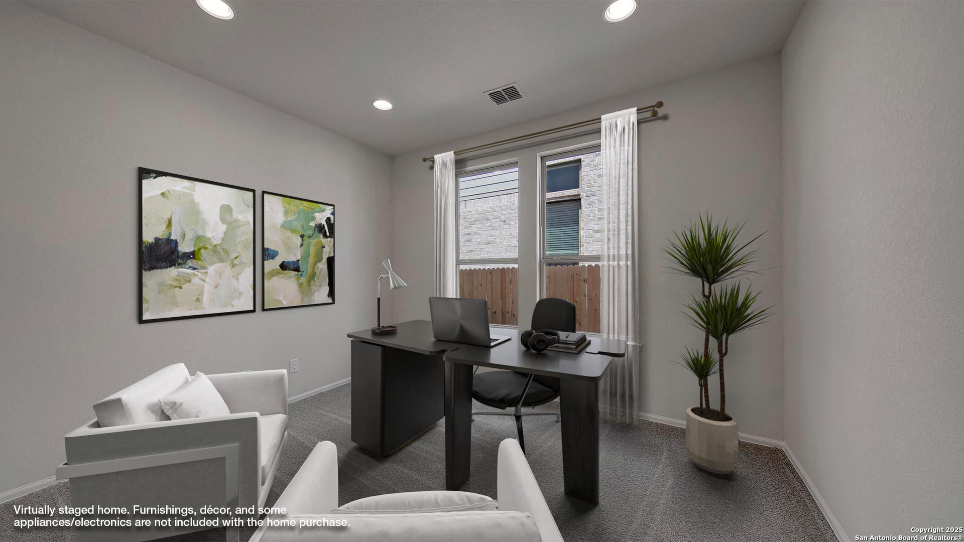 READY FOR MOVE-IN!! Entry leads to open kitchen, dining area and two-story family room. Kitchen features walk-in pantry, generous counter space and inviting island with built-in seating space. Home office with French doors just across from kitchen. First-floor primary suite includes 10-foot ceiling. Double doors lead to primary bath with dual vanities, separate glass-enclosed-shower and two walk-in closets. A game room and two secondary bedrooms are upstairs. Covered backyard patio. Mud room off two-car garage.