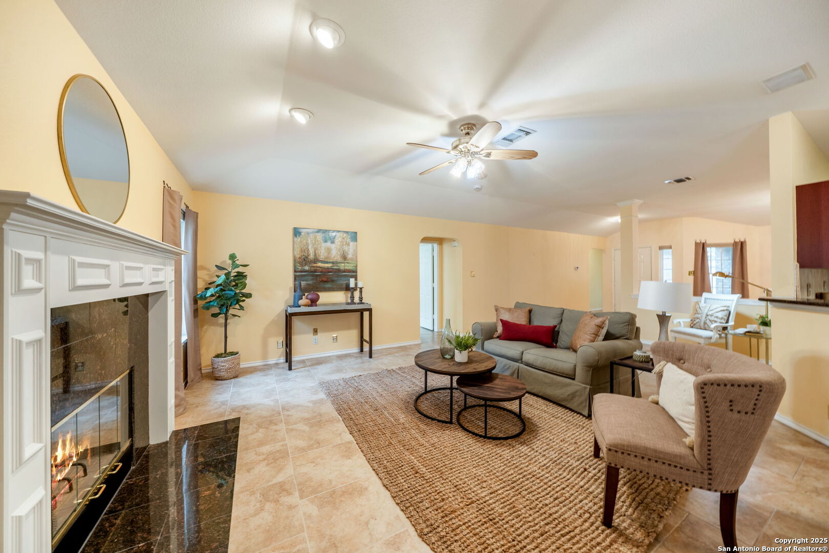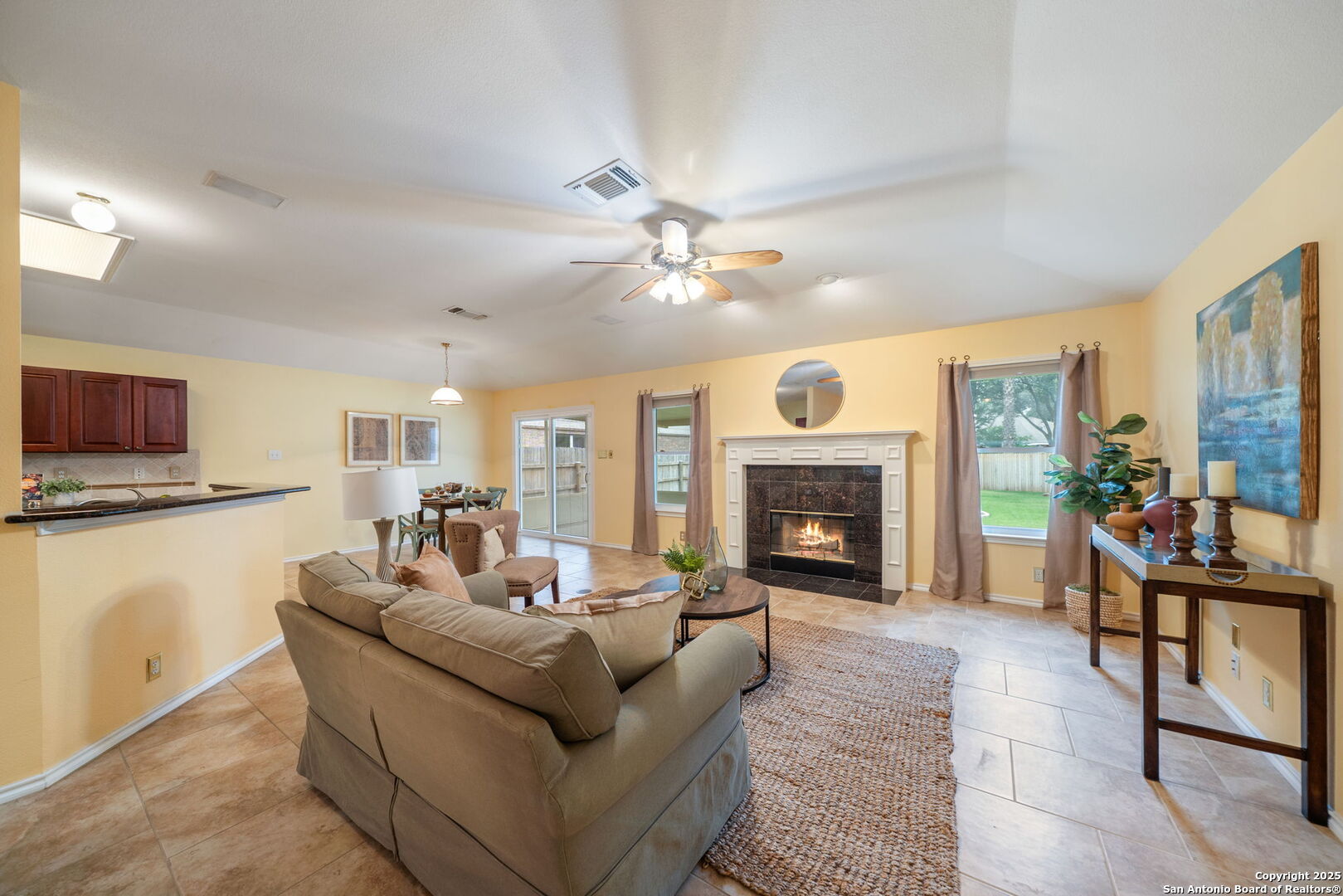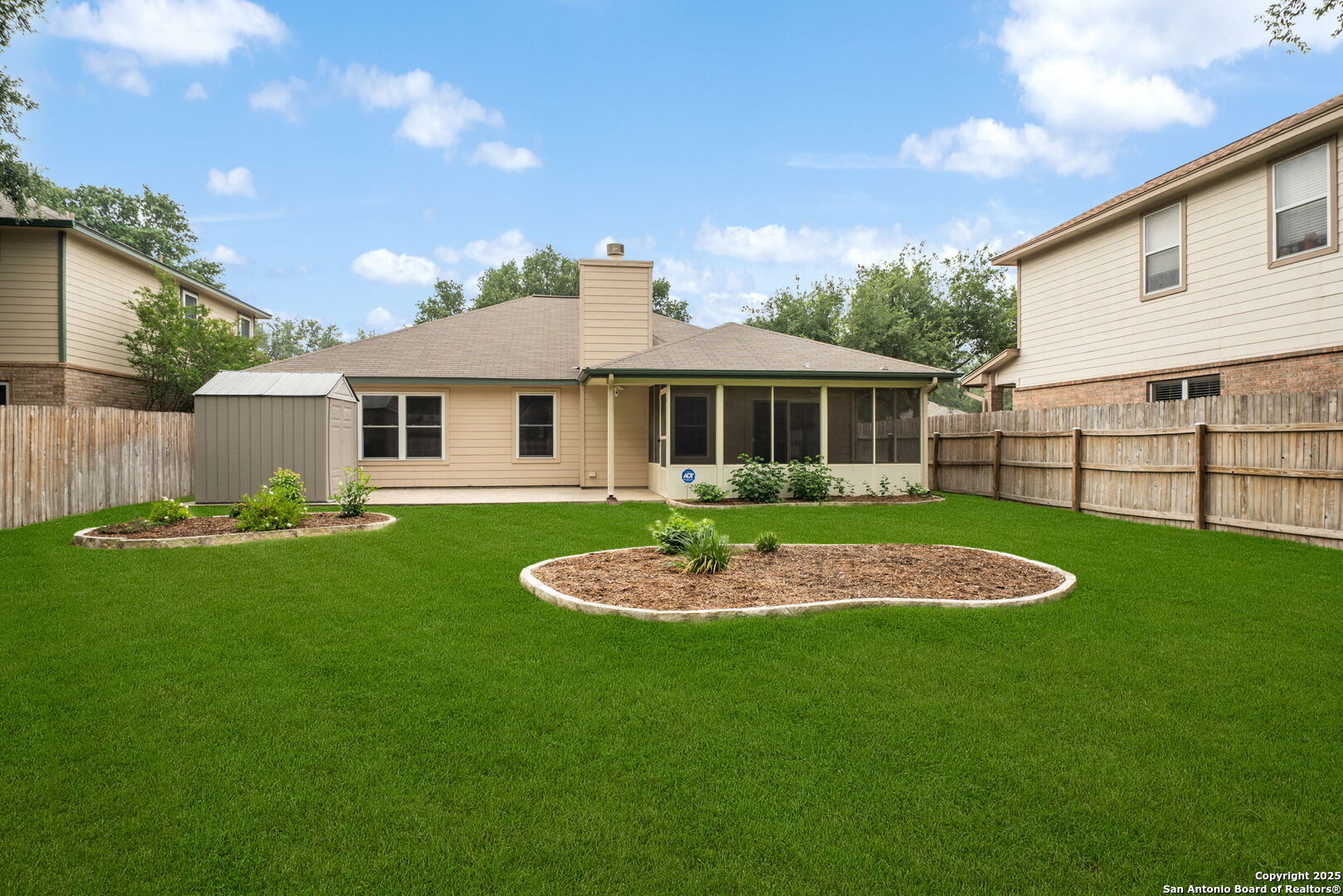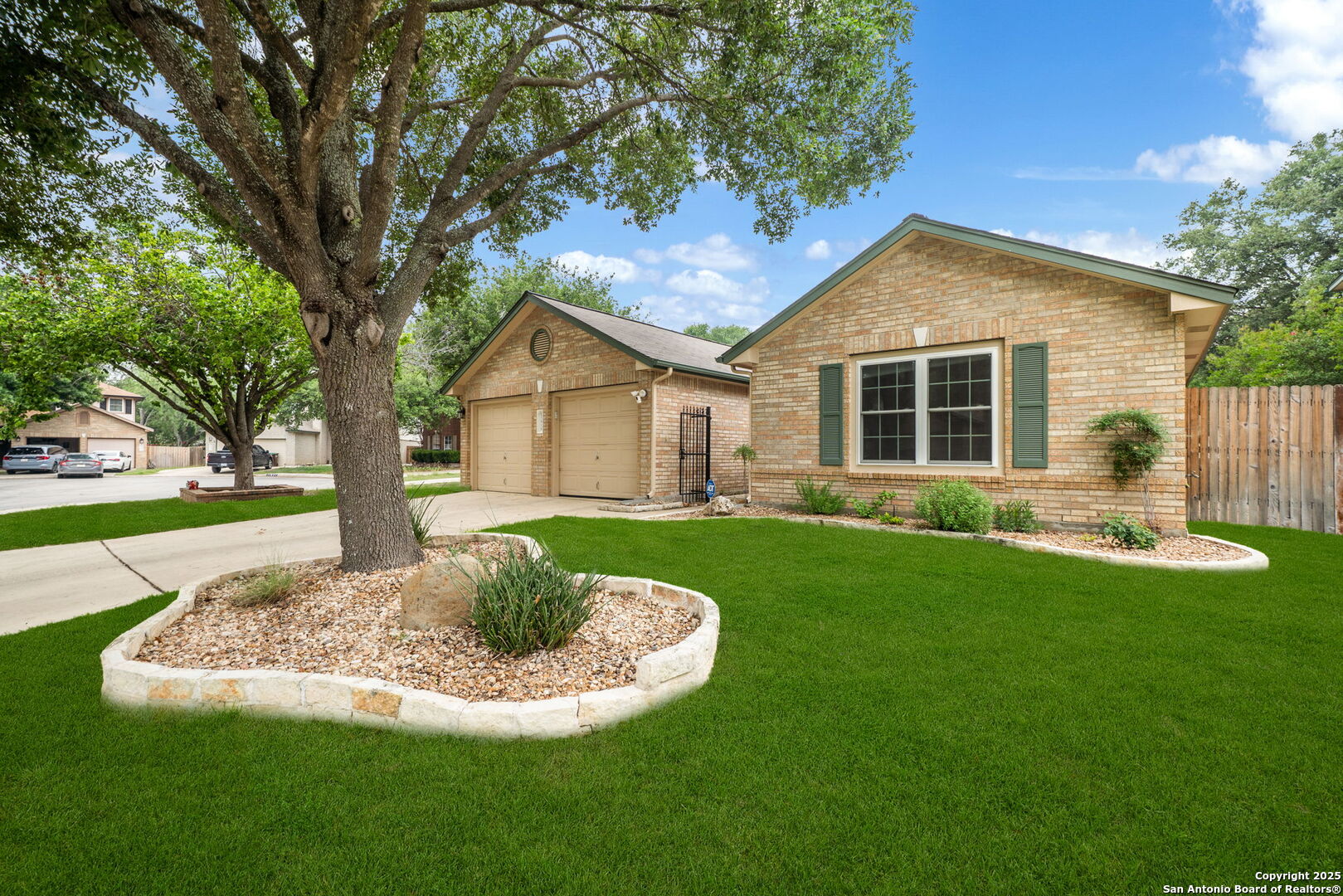 Welcome to 11819 Wheathill-Comfort and Convenience in Westcreek. This well-maintained one-story home reflects thoughtful living inside and out. A grand oak tree adds curb appeal and shade, creating a warm first impression as you arrive. Inside, the spacious living area features a wood-burning fireplace-great for relaxing evenings or casual get-togethers. The oversized kitchen offers ample counter space, a smooth-top range, and built-in microwave, perfect for everyday cooking or weekend hosting. The split-bedroom design enhances privacy, with a generous primary suite that includes a double vanity and plenty of space to unwind. Located in the desirable Westcreek community, this 3-bedroom, 2-bath home offers easy access to the best of San Antonio.