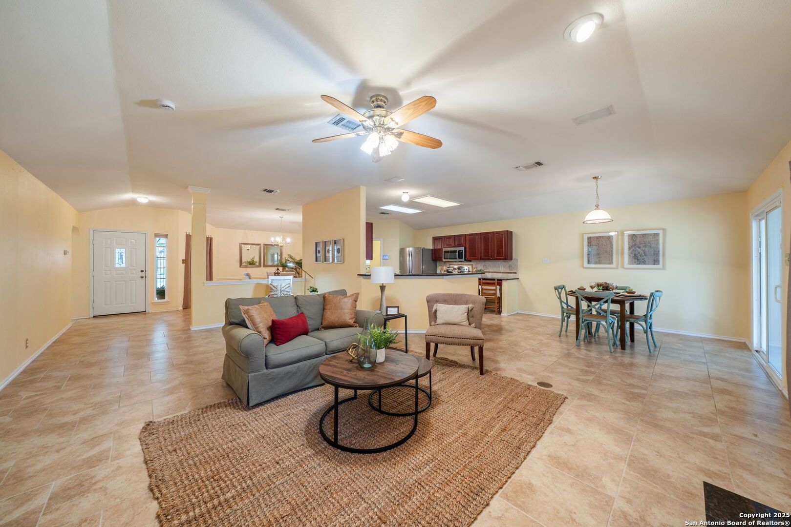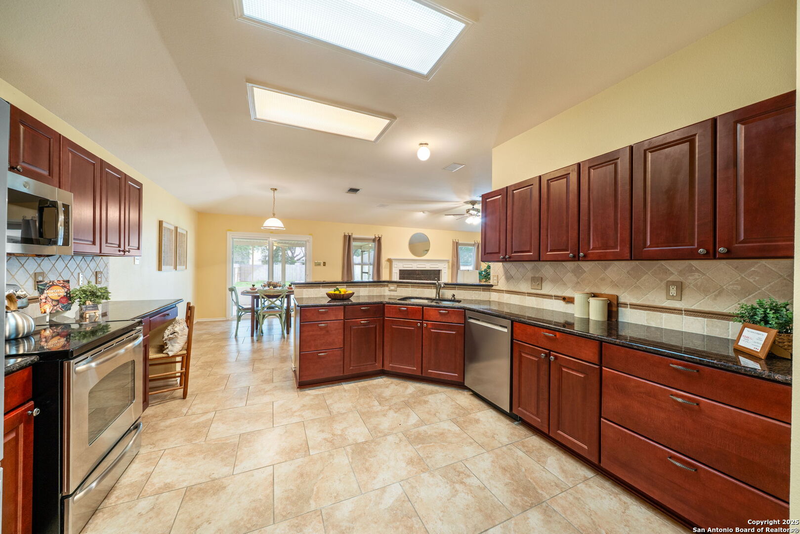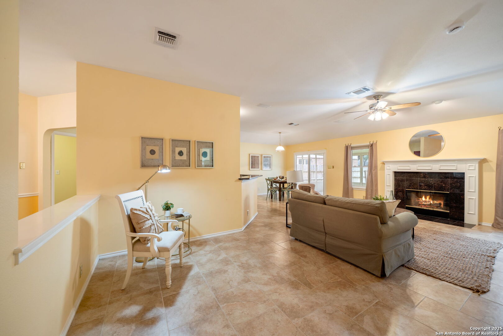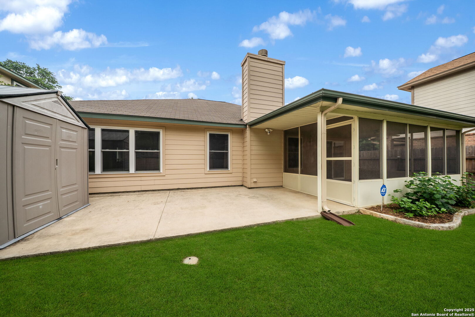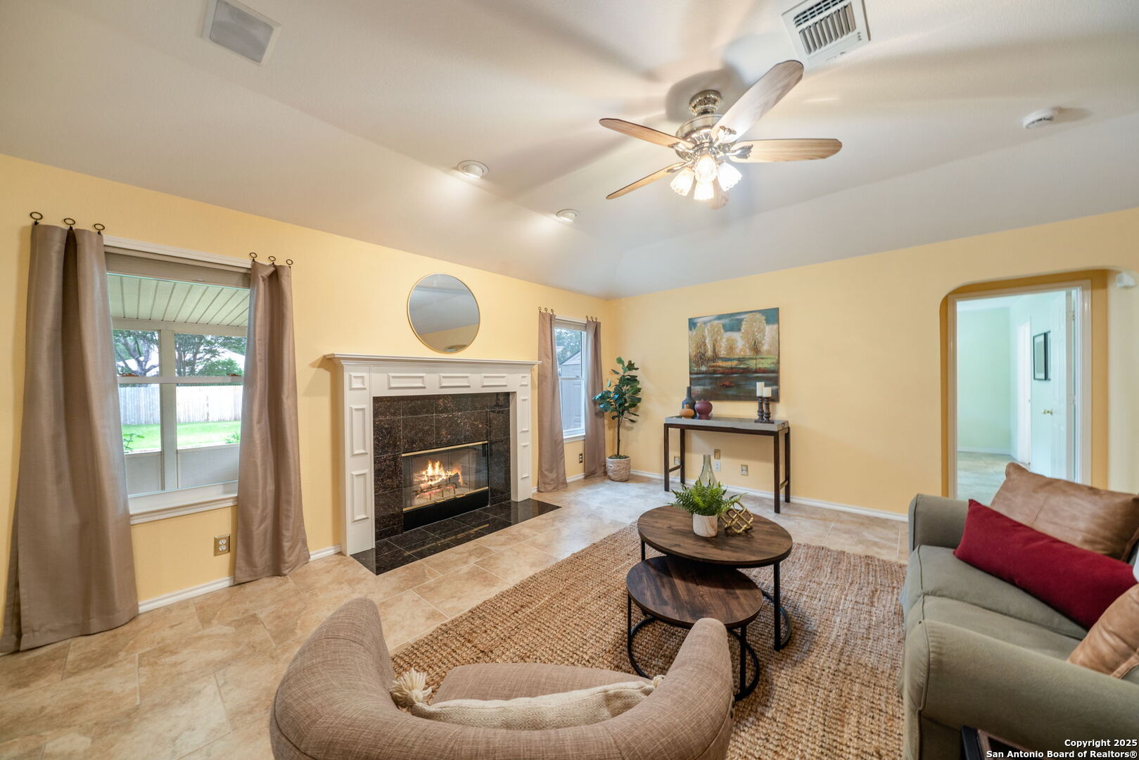 Welcome to 11819 Wheathill-Comfort and Convenience in Westcreek. This well-maintained one-story home reflects thoughtful living inside and out. A grand oak tree adds curb appeal and shade, creating a warm first impression as you arrive. Inside, the spacious living area features a wood-burning fireplace-great for relaxing evenings or casual get-togethers. The oversized kitchen offers ample counter space, a smooth-top range, and built-in microwave, perfect for everyday cooking or weekend hosting. The split-bedroom design enhances privacy, with a generous primary suite that includes a double vanity and plenty of space to unwind. Located in the desirable Westcreek community, this 3-bedroom, 2-bath home offers easy access to the best of San Antonio.