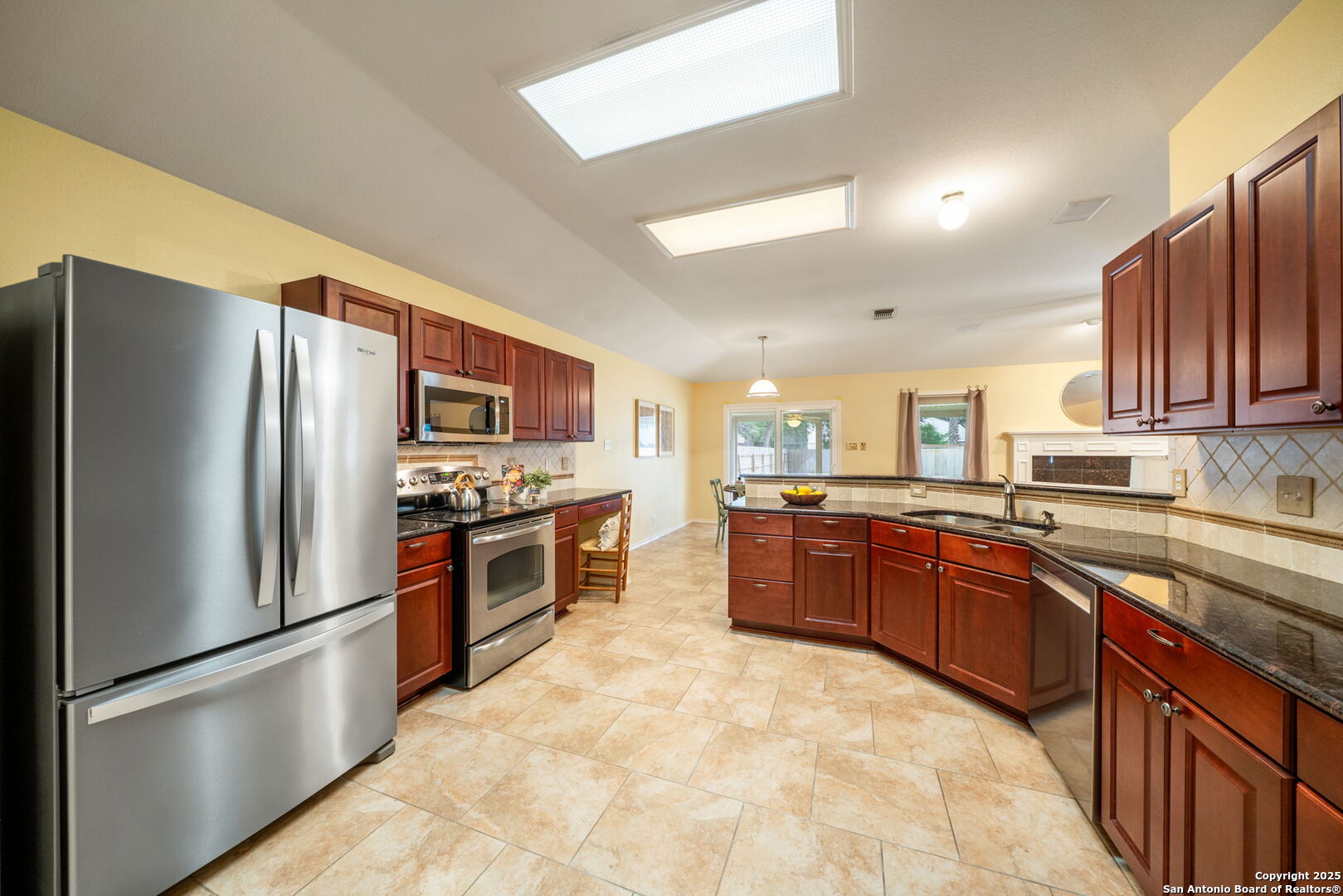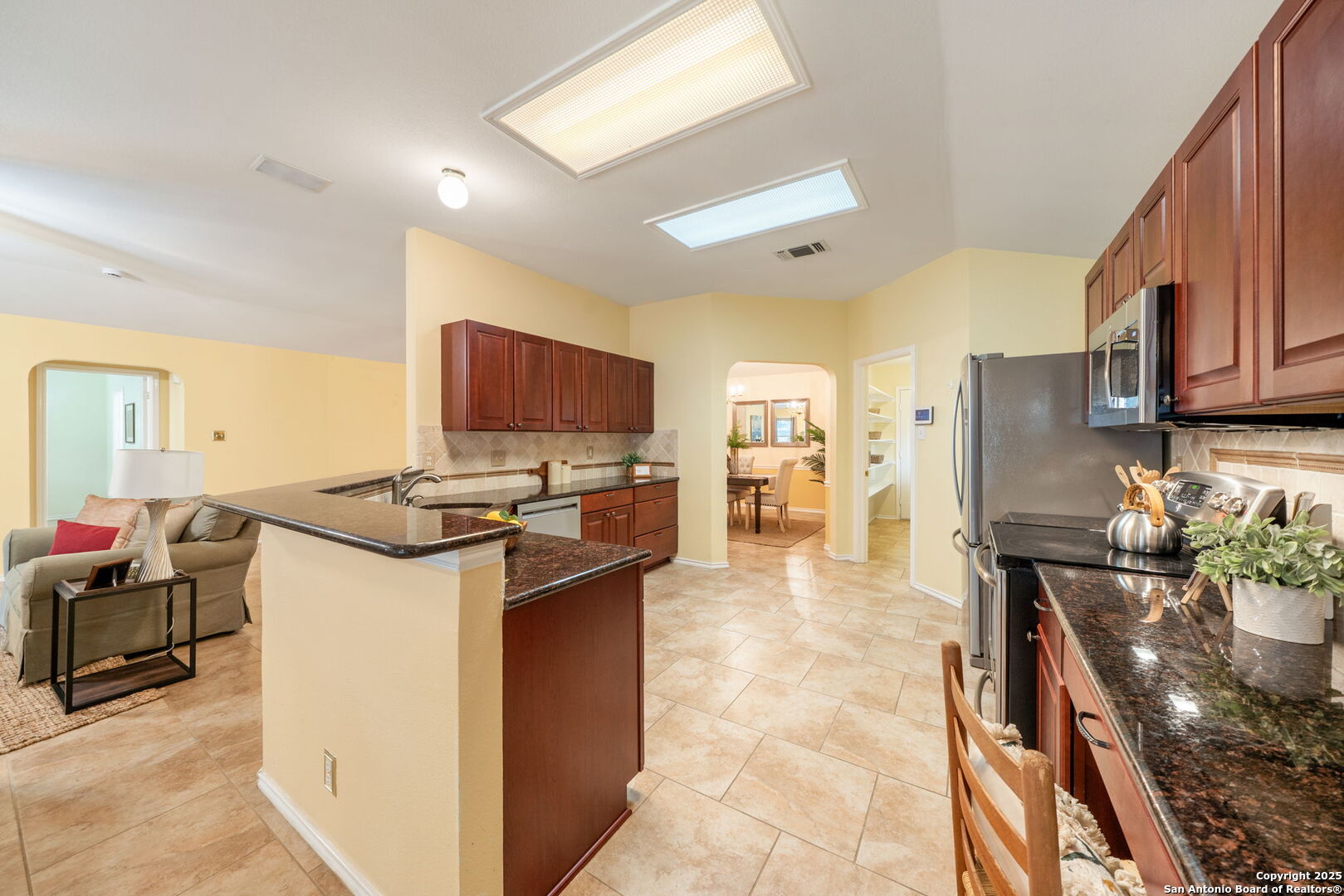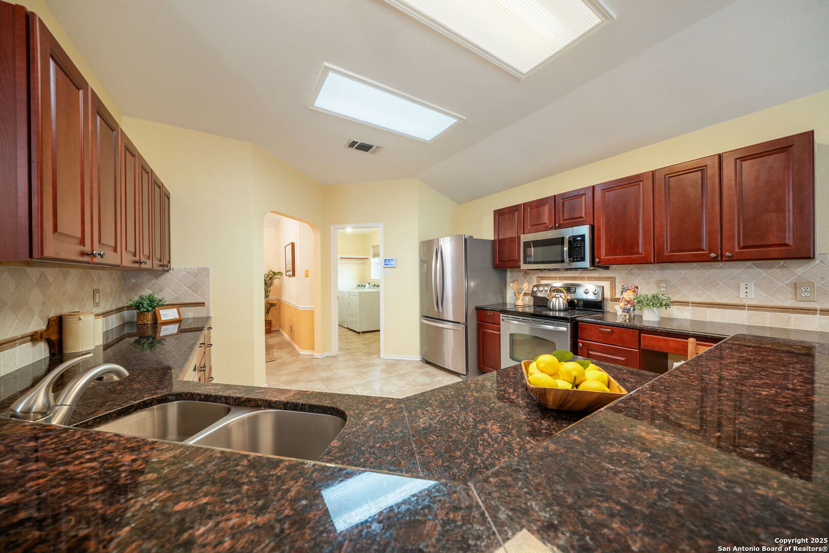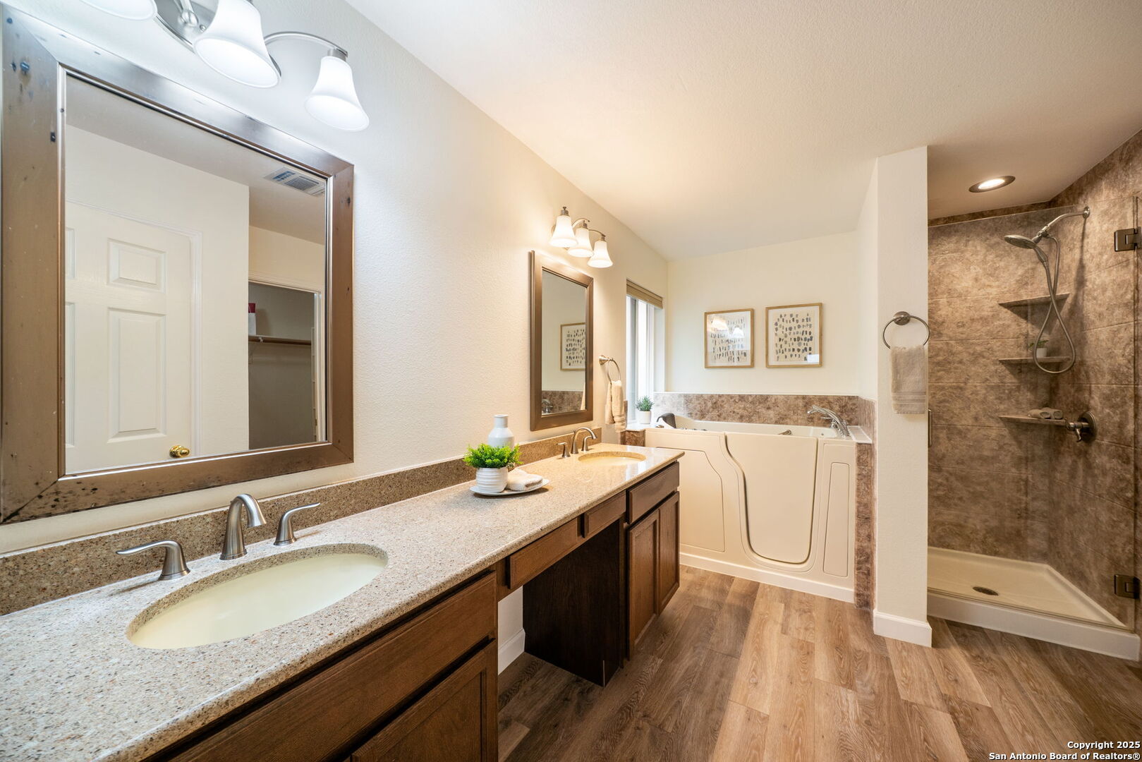 Welcome to 11819 Wheathill-Comfort and Convenience in Westcreek. This well-maintained one-story home reflects thoughtful living inside and out. A grand oak tree adds curb appeal and shade, creating a warm first impression as you arrive. Inside, the spacious living area features a wood-burning fireplace-great for relaxing evenings or casual get-togethers. The oversized kitchen offers ample counter space, a smooth-top range, and built-in microwave, perfect for everyday cooking or weekend hosting. The split-bedroom design enhances privacy, with a generous primary suite that includes a double vanity and plenty of space to unwind. Located in the desirable Westcreek community, this 3-bedroom, 2-bath home offers easy access to the best of San Antonio.