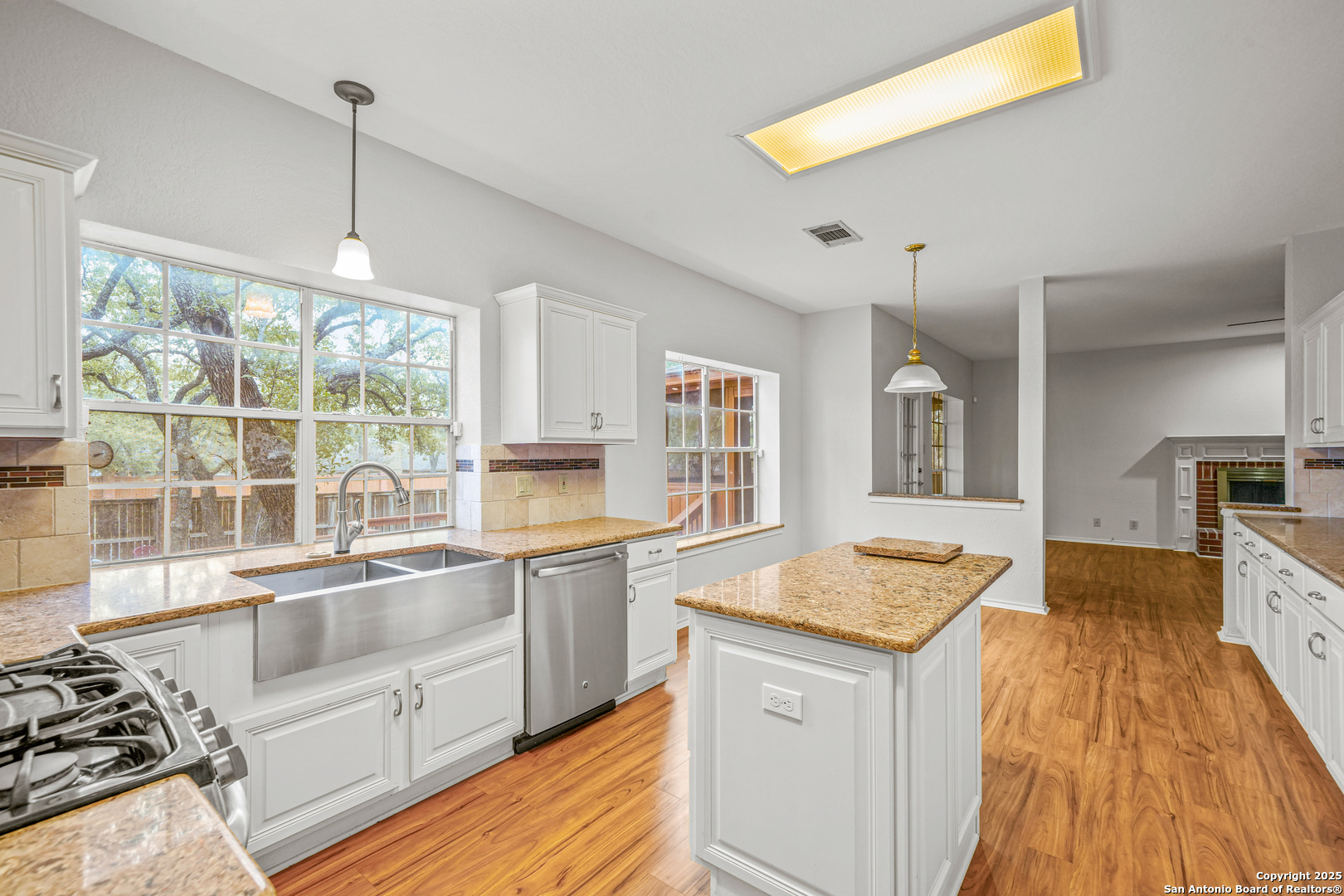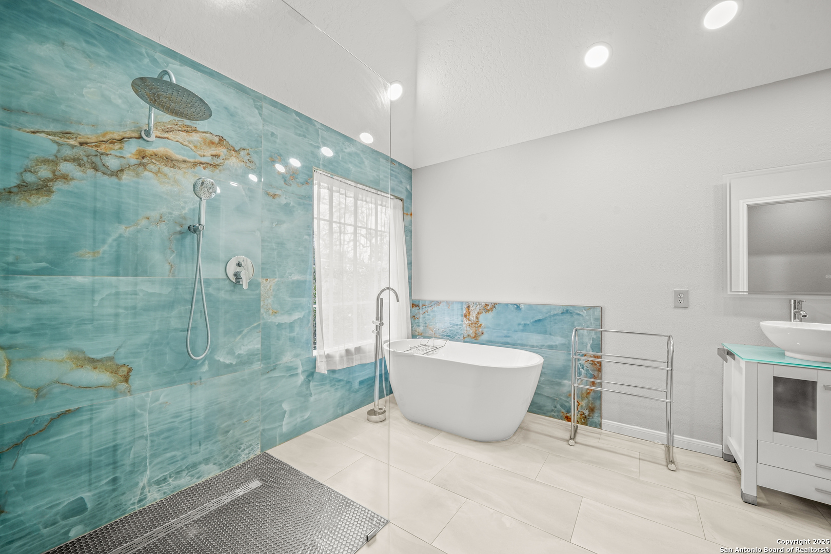 Welcome to this stunning 4-bedroom, 2.5-bath home in the desirable Westcreek subdivision! Nestled in a peaceful neighborhood with mature trees, this home features a spacious living and dining area, high ceilings, and a beautifully updated kitchen with modern countertops and cabinets. The master suite offers a luxurious retreat with an updated bathroom, walk-in shower, and soaking tub. Enjoy the expansive backyard, perfect for relaxing or entertaining, with majestic oak trees in both the front and back. Conveniently located near SeaWorld, shopping, dining, and entertainment, this home is a must-see!