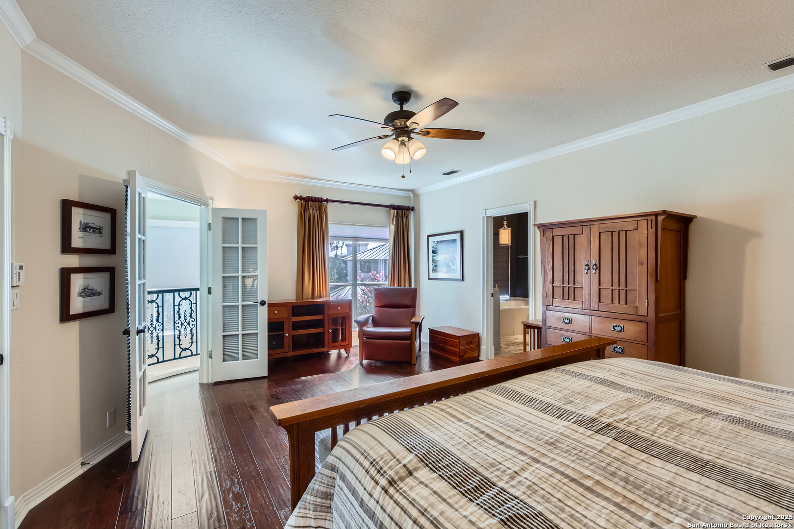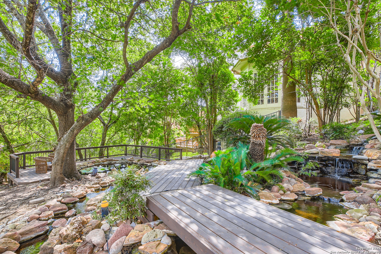 Welcome to this custom home in Elm Creek-a gated community offering 24hour security, privacy, and peace of mind. Nestled under mature trees, this amazing home blends charm with modern luxury. Featuring 4 large bedrooms, including two primary suites. The main primary suite has separate his and her bath, it's designed for flexible living. Inside, you'll find thoughtful upgrades throughout: a Butler's pantry/coffee bar, a dedicated bar area, an office for work from home or study, and a media room perfect for movie nights and entertainment. Step outside onto the brand new deck or find tranquility beside the serene koi pond in your own landscaped retreat. Fish included! The location adds even more value..This home is very close to shopping centers, restaurants, and entertainment-everything you need within easy reach. Live the balance of comfort, style, and convenience in one remarkable Elm Creek property.