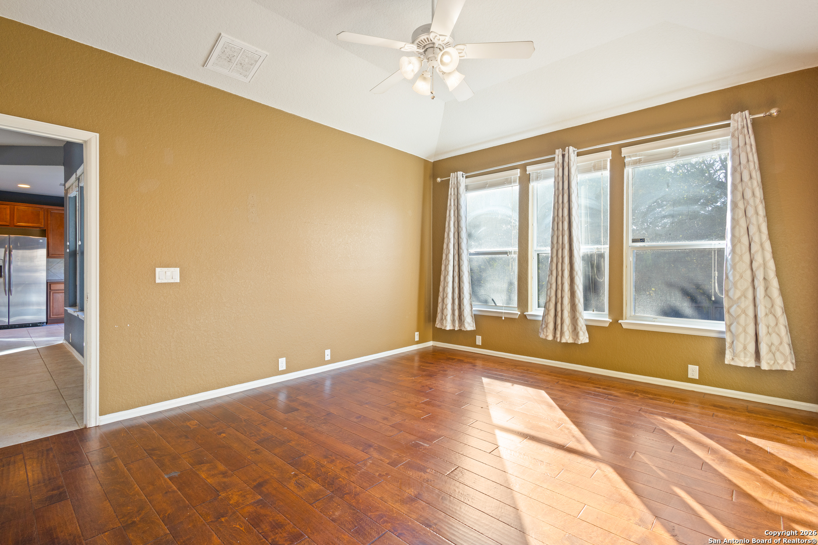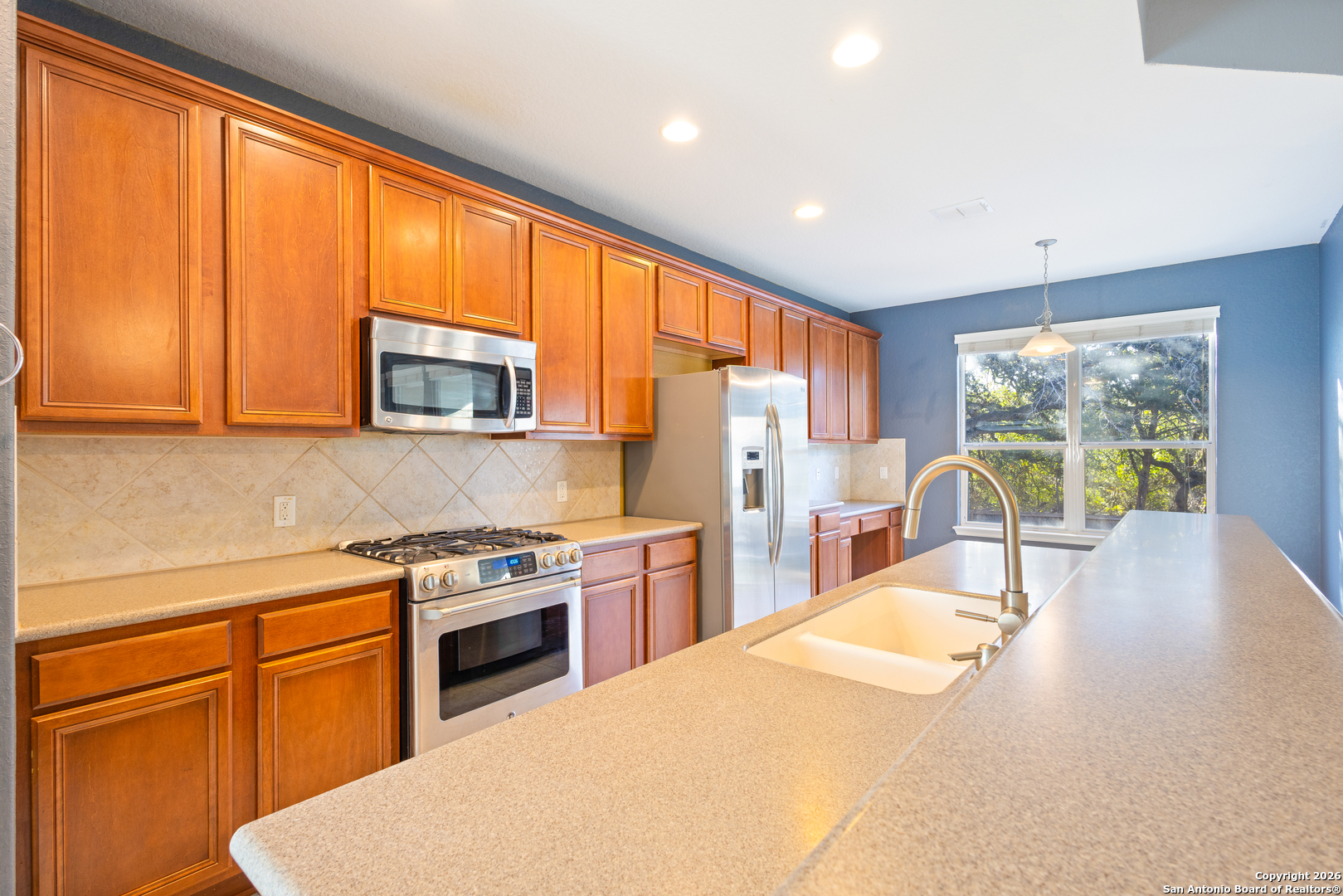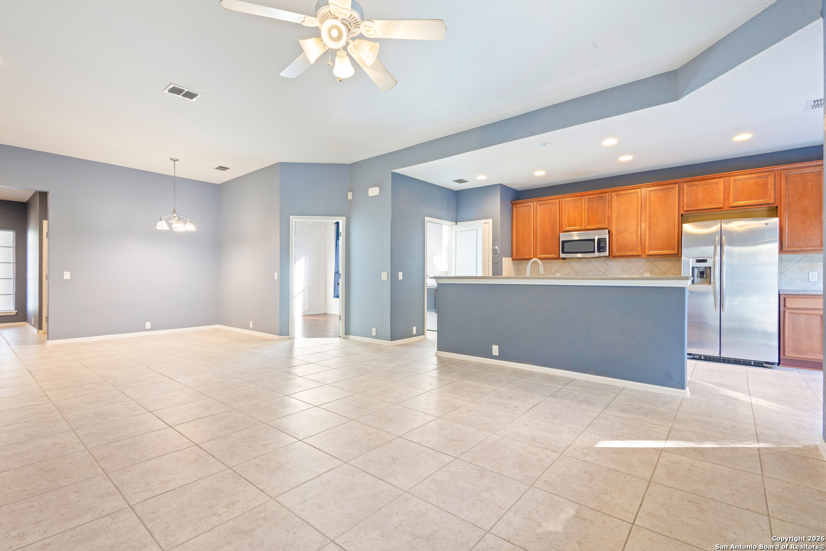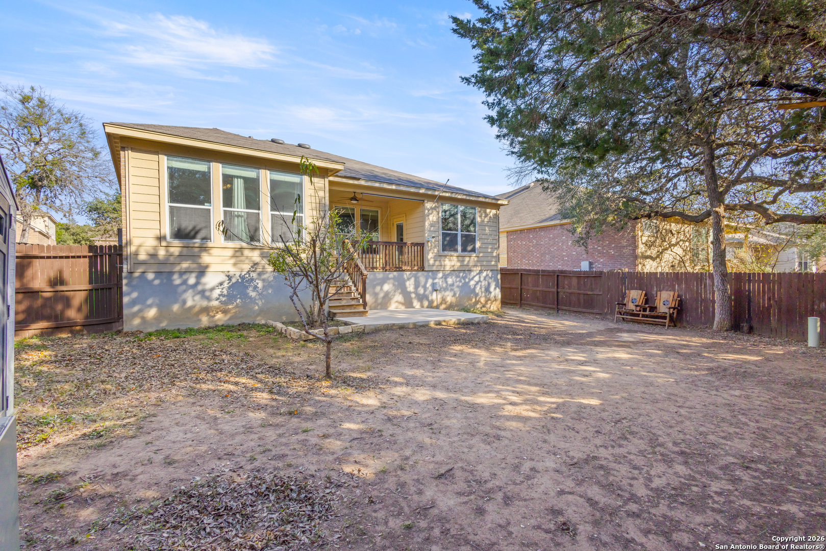 Come see your next home located in the Alamo Ranch area of San Antonio. This well-maintained 3-bedroom, 2-bath home with a flex room offers 1,885 square feet of functional living space designed for comfort and versatility. The open living and dining areas are filled with natural light and provide an inviting setting for everyday living and entertaining. The spacious kitchen features ample cabinetry and workspace, flowing seamlessly into the main living areas. The private primary suite includes an en-suite bath, while two additional bedrooms and a flex room offer adaptable space ideal for a home office, second living area, or hobby room. Enjoy added privacy with no back neighbors, along with a backyard that provides room to relax, entertain, or personalize to your needs. Conveniently located in Alamo Ranch, this home offers easy access to Loop 1604, Hwy 151, shopping, dining, parks, and major San Antonio employers. Move-in ready and competitively priced, this property presents an excellent opportunity in one of West San Antonio's most sought-after areas. The roof was replaced in 2025, the HVAC in 2021, the water heater replaced with an energy efficient tankless heater in 2022 and the water softer was added in 2020 all systems are paid off and even the washer dryer and fridge are included with the sale of the home. Schedule your showing today. Descubre su proxima casa ubicada en el area de Alamo Ranch en San Antonio. Esta casa bien mantenida cuenta con 3 recamaras, 2 banos y un espacio flexible, ofreciendo 1,885 pies cuadrados de area habitable disenada para comodidad y funcionalidad. Las areas abiertas de sala y comedor reciben abundante luz natural, creando un ambiente acogedor para la vida diaria y para reuniones. La cocina es amplia y cuenta con buen espacio de gabinetes y superficies de trabajo, conectandose de manera fluida con las areas principales. La recamara principal ofrece privacidad con bano completo, mientras que las recamaras secundarias y el cuarto flexible brindan opciones ideales para oficina en casa, sala adicional o area multiusos. Disfrute de mayor privacidad con sin vecinos en la parte trasera, ademas de un patio con espacio para relajarse, convivir o personalizar segun sus necesidades. Ubicada en Alamo Ranch, esta propiedad ofrece acceso conveniente a Loop 1604, Hwy 151, tiendas, restaurantes, parques y centros de empleo en San Antonio. Lista para mudarse y con precio competitivo, esta propiedad representa una excelente oportunidad en el area oeste de San Antonio. El techo fue reemplazado en 2025, el sistema de calefaccion, ventilacion y aire acondicionado (HVAC, por sus siglas en ingles) en 2021, el calentador de agua fue sustituido por uno sin tanque (tankless) de bajo consumo energetico en 2022 y el suavizador de agua se anadio en 2020. Todos los sistemas estan liquidados e incluso la lavadora, secadora y refrigerador estan incluidos con la venta de la casa. Programe su visita hoy mismo.