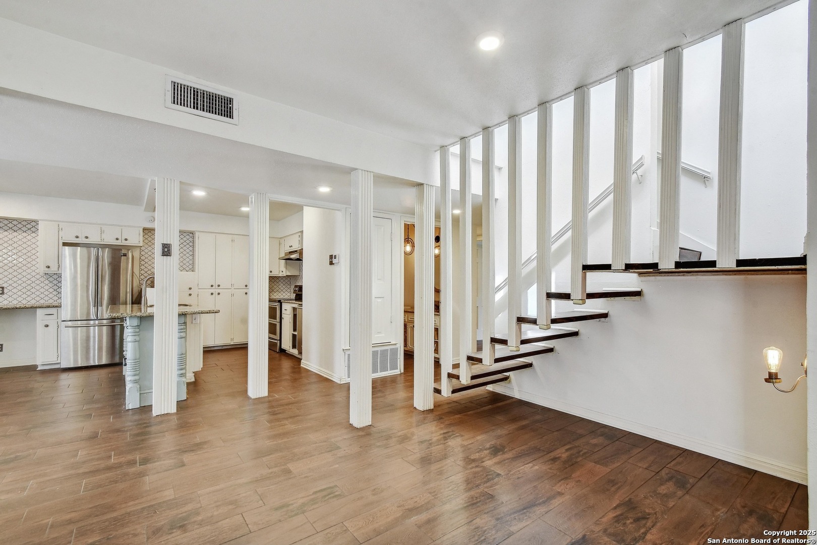 Discover modern comfort in this beautifully updated townhome nestled in the heart of Enchanted village, central San Antonio. This inviting home features an open floor plan with a stunning kitchen boasting granite countertops, sleek stainless-steel appliances, and ample cabinetry for all your storage needs. The spacious primary bedroom is conveniently located on the first floor, offering privacy and ease. Upstairs, you will find two additional well-appointed bedrooms. This property includes a 2-car garage with garage door opener.