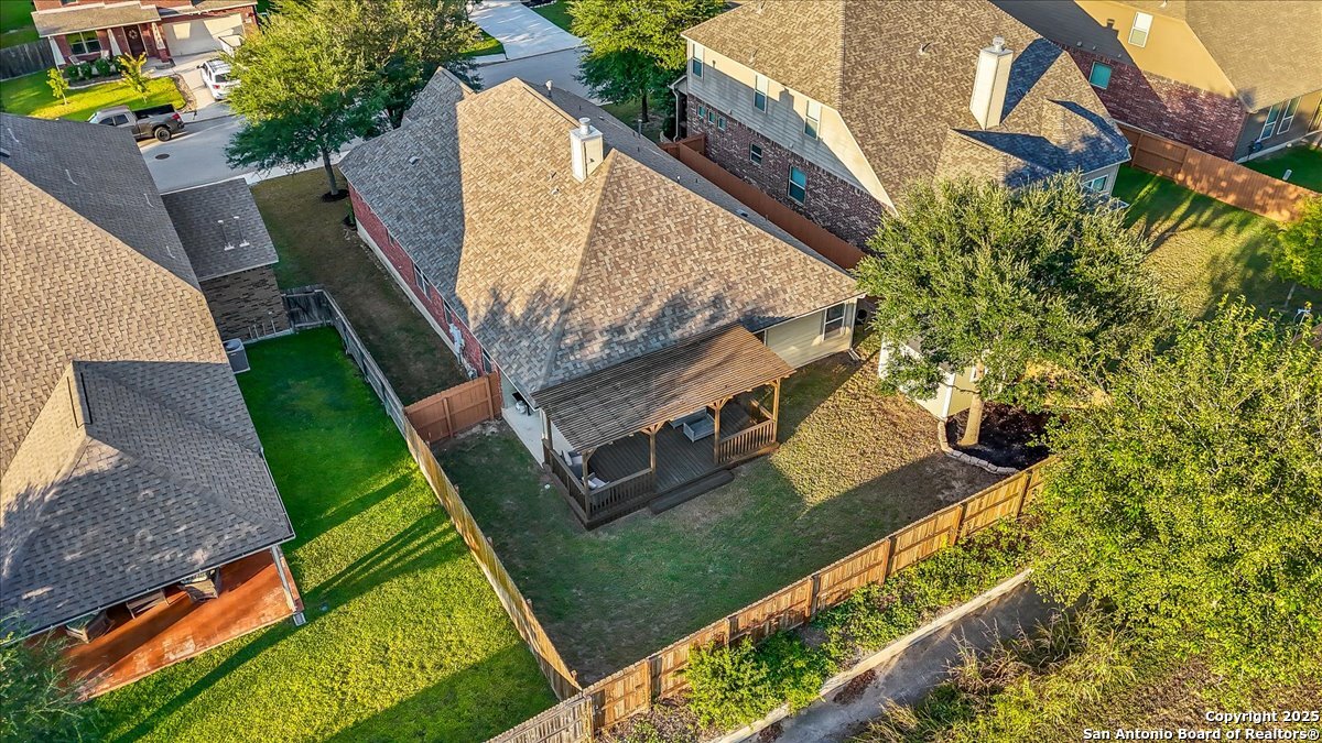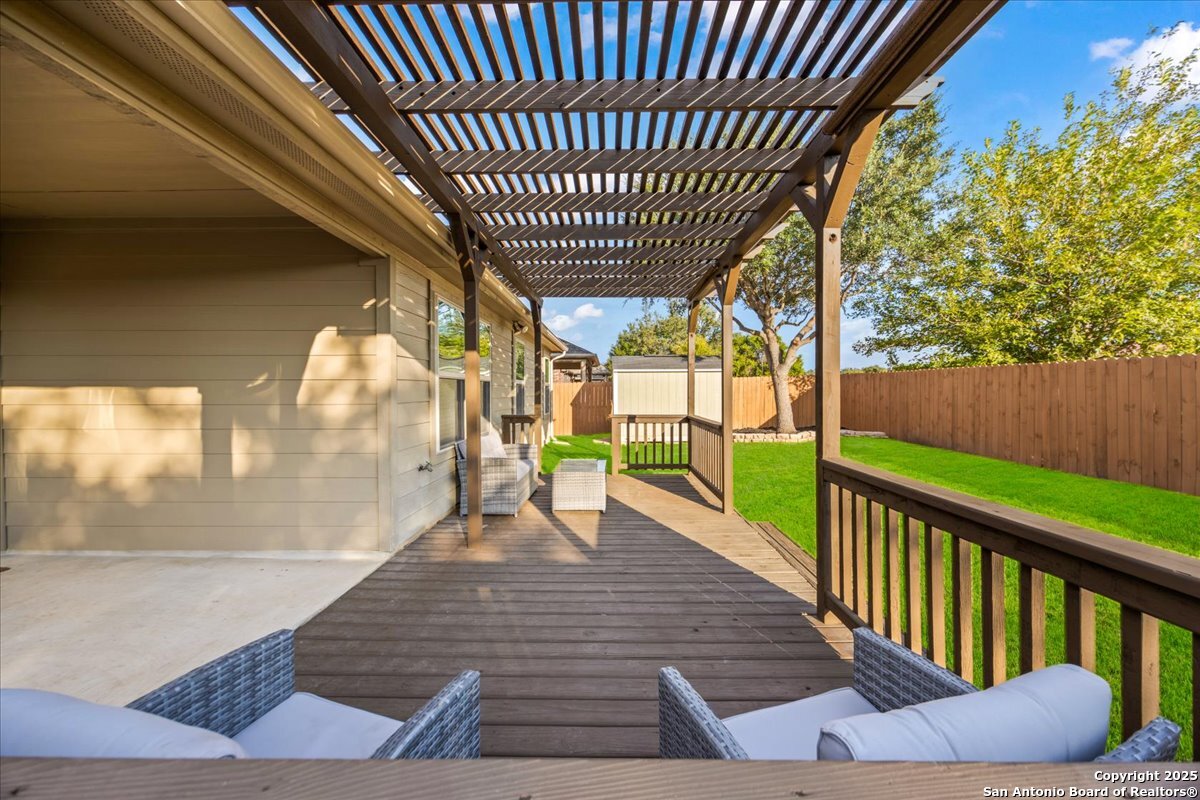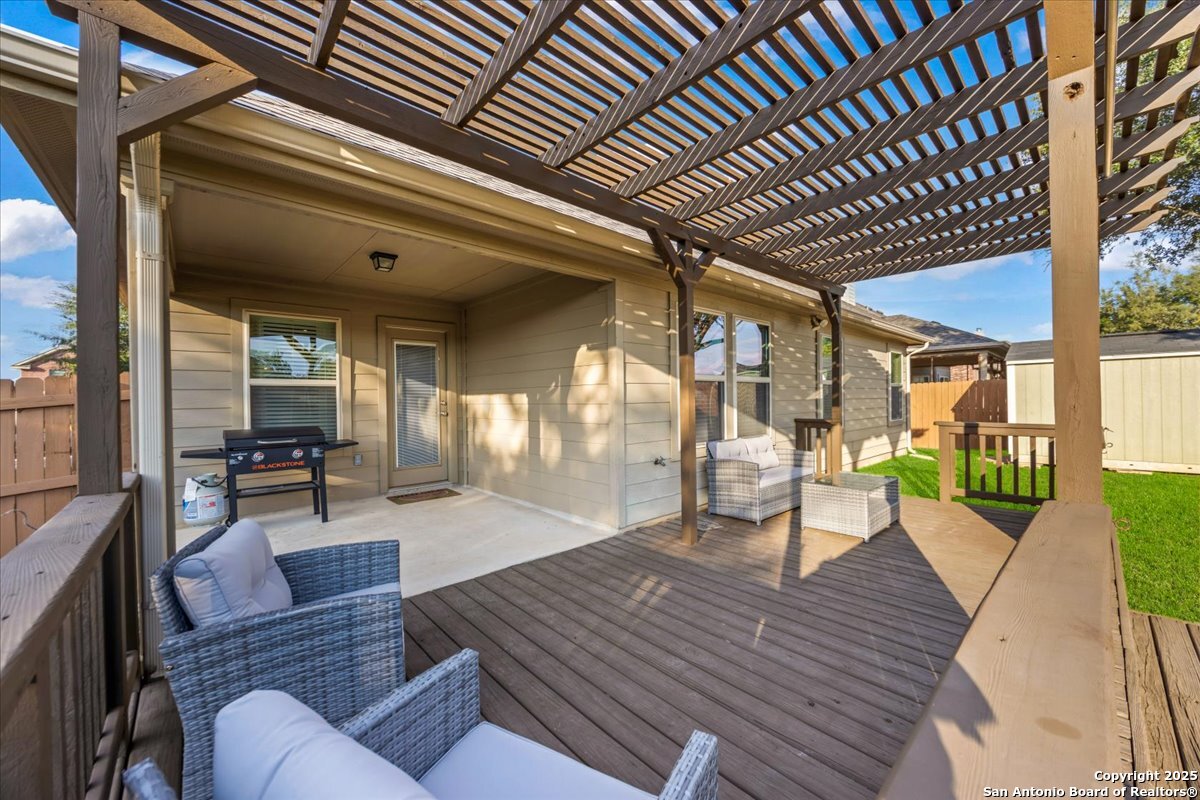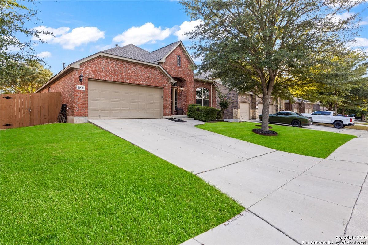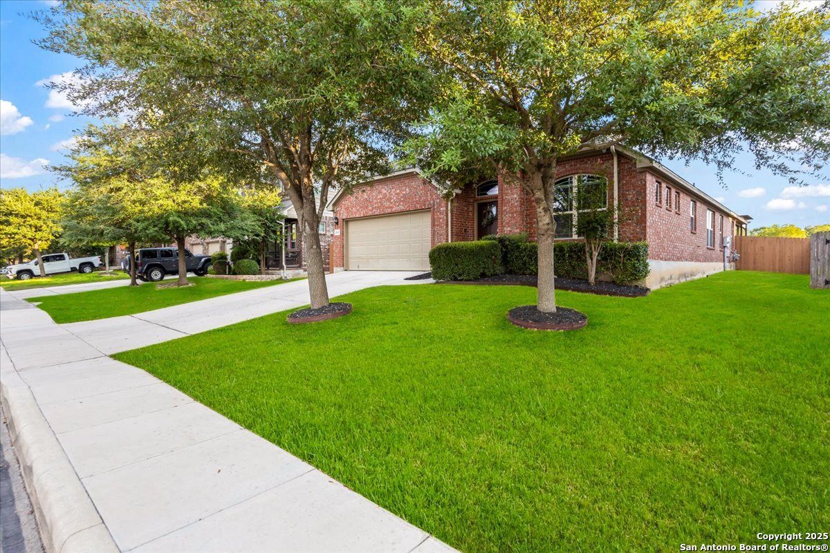 This immaculate one-story home sits in a well-established section of Alamo Ranch, offering comfort, style, and privacy with no neighbors behind. Inside, three spacious bedrooms and two full bathrooms provide an easy and functional layout. A dedicated dining room, uncommon in many modern floor plans, pairs beautifully with a study or flex space that adapts to your needs. Warm wood floors, crown molding in key areas, and a cozy fireplace create a sense of character and care throughout. Recent updates bring peace of mind, including a new roof and privacy fence installed in 2023, and a brand-new HVAC system in 2025. Outdoors, an extended deck offers the perfect place to relax or entertain, while a backyard shed provides extra storage without compromising yard space. Living in Alamo Ranch also means access to community amenities such as playgrounds, sports courts, a swimming pool, and a clubhouse, making this home both a retreat and a hub for connection. Thoughtfully maintained and move-in ready, this property combines practical updates with timeless appeal in one of San Antonio's most sought-after communities. Welcome Home!