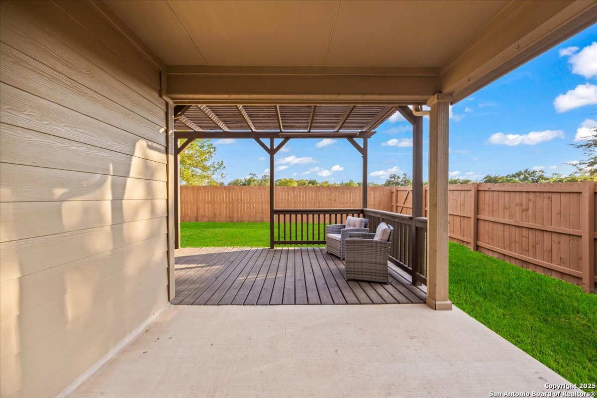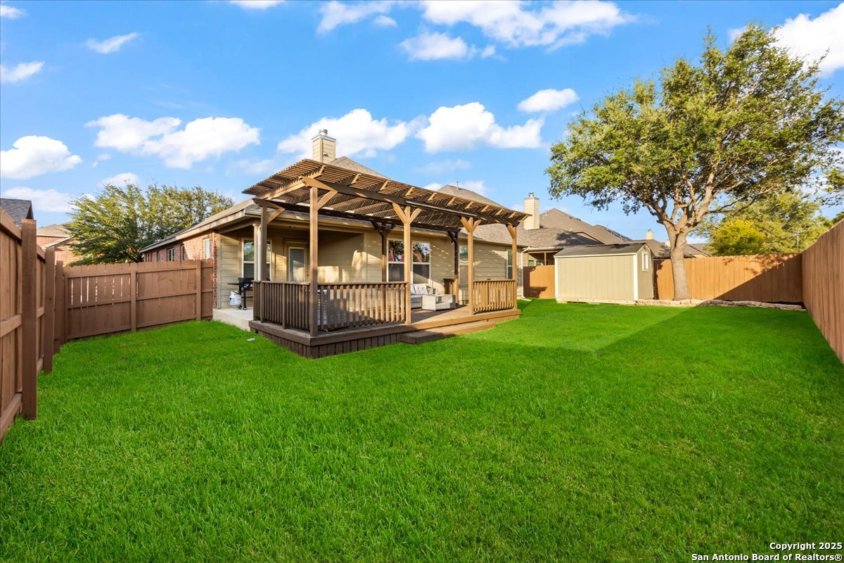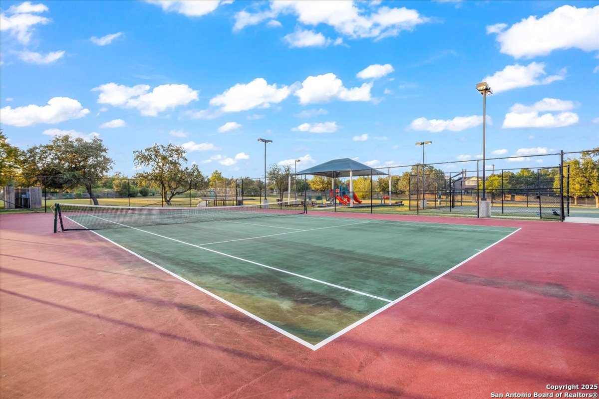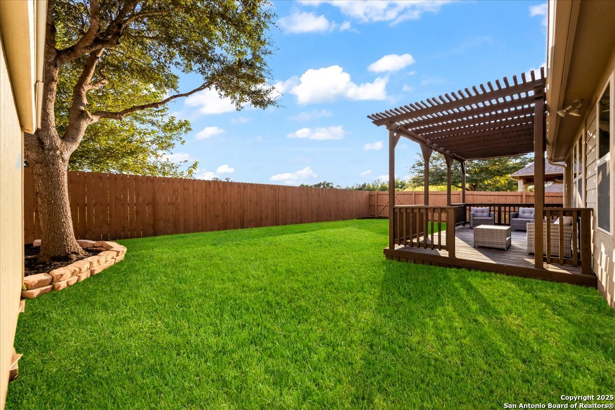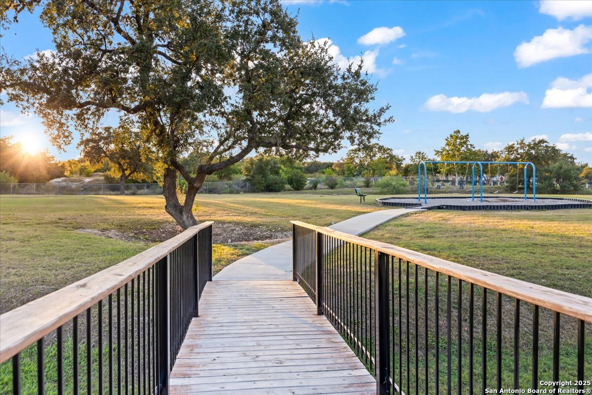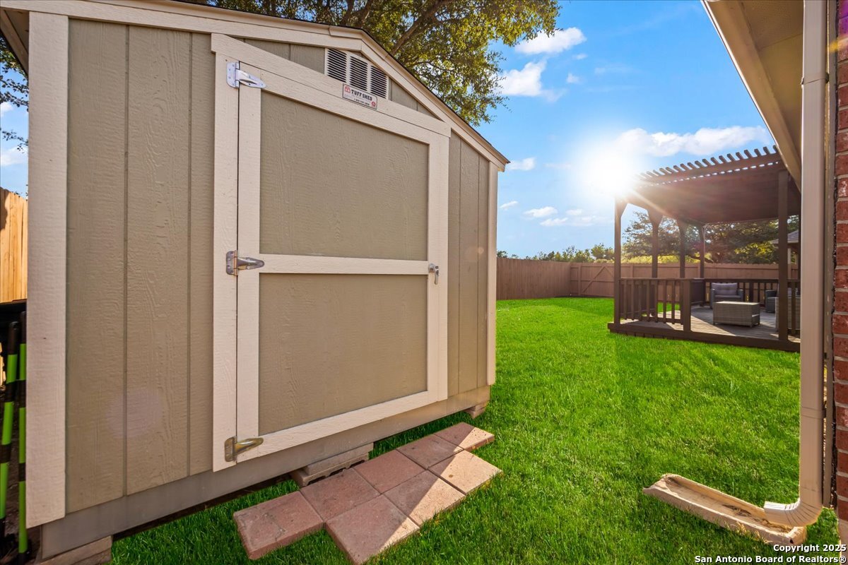 This immaculate one-story home sits in a well-established section of Alamo Ranch, offering comfort, style, and privacy with no neighbors behind. Inside, three spacious bedrooms and two full bathrooms provide an easy and functional layout. A dedicated dining room, uncommon in many modern floor plans, pairs beautifully with a study or flex space that adapts to your needs. Warm wood floors, crown molding in key areas, and a cozy fireplace create a sense of character and care throughout. Recent updates bring peace of mind, including a new roof and privacy fence installed in 2023, and a brand-new HVAC system in 2025. Outdoors, an extended deck offers the perfect place to relax or entertain, while a backyard shed provides extra storage without compromising yard space. Living in Alamo Ranch also means access to community amenities such as playgrounds, sports courts, a swimming pool, and a clubhouse, making this home both a retreat and a hub for connection. Thoughtfully maintained and move-in ready, this property combines practical updates with timeless appeal in one of San Antonio's most sought-after communities. Welcome Home!