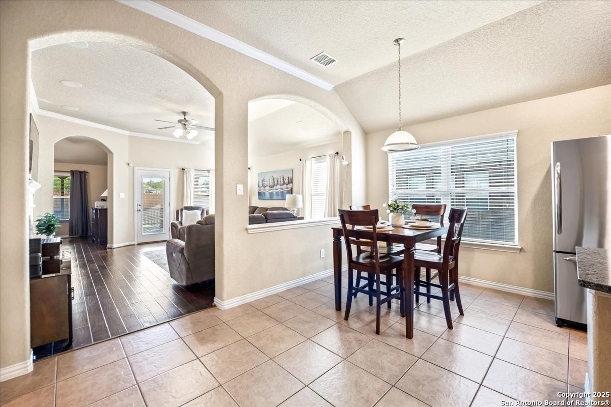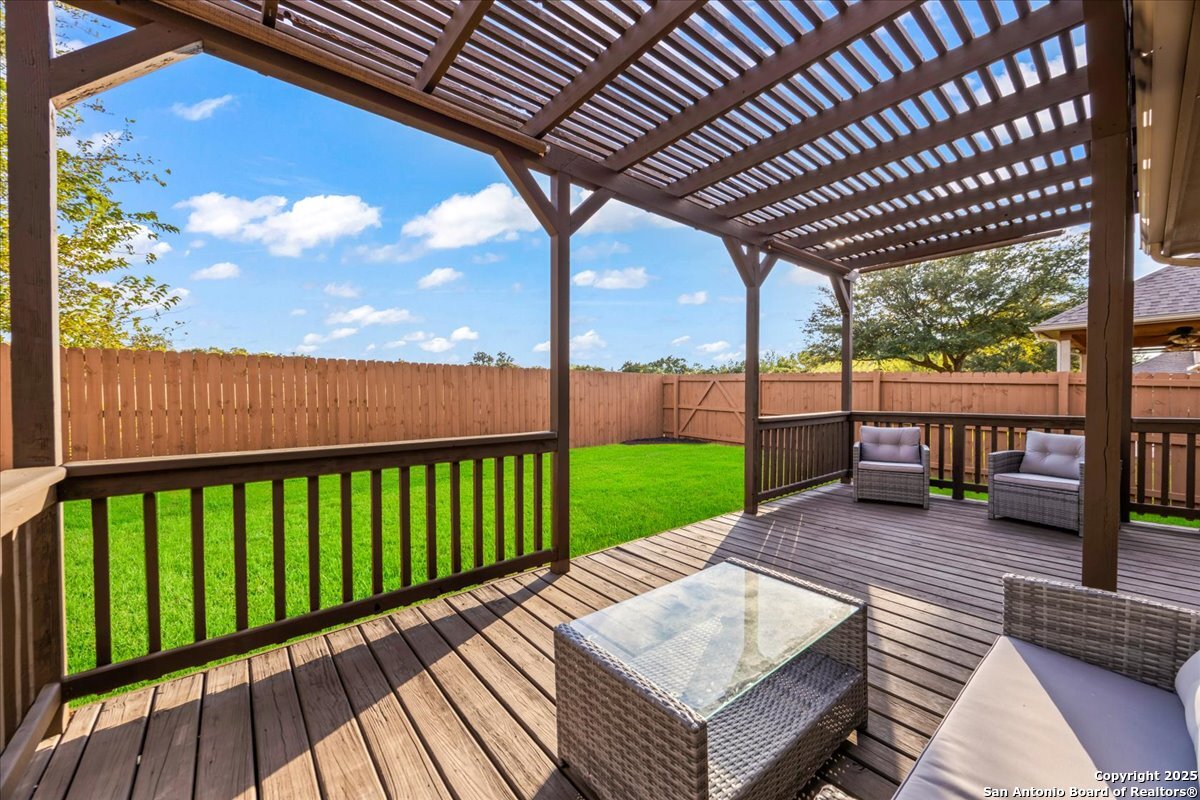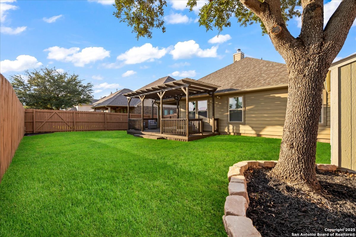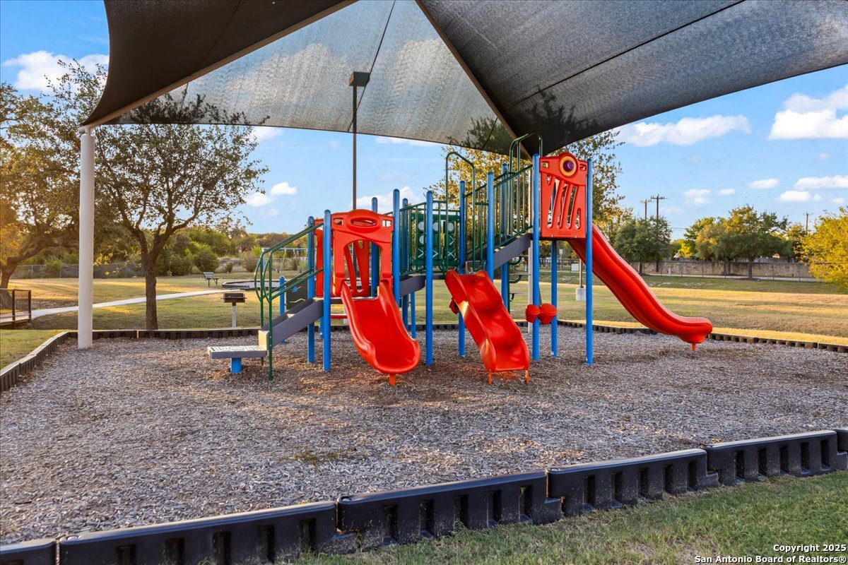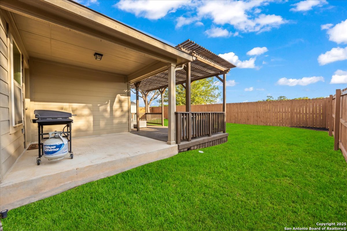 This immaculate one-story home sits in a well-established section of Alamo Ranch, offering comfort, style, and privacy with no neighbors behind. Inside, three spacious bedrooms and two full bathrooms provide an easy and functional layout. A dedicated dining room, uncommon in many modern floor plans, pairs beautifully with a study or flex space that adapts to your needs. Warm wood floors, crown molding in key areas, and a cozy fireplace create a sense of character and care throughout. Recent updates bring peace of mind, including a new roof and privacy fence installed in 2023, and a brand-new HVAC system in 2025. Outdoors, an extended deck offers the perfect place to relax or entertain, while a backyard shed provides extra storage without compromising yard space. Living in Alamo Ranch also means access to community amenities such as playgrounds, sports courts, a swimming pool, and a clubhouse, making this home both a retreat and a hub for connection. Thoughtfully maintained and move-in ready, this property combines practical updates with timeless appeal in one of San Antonio's most sought-after communities. Welcome Home!