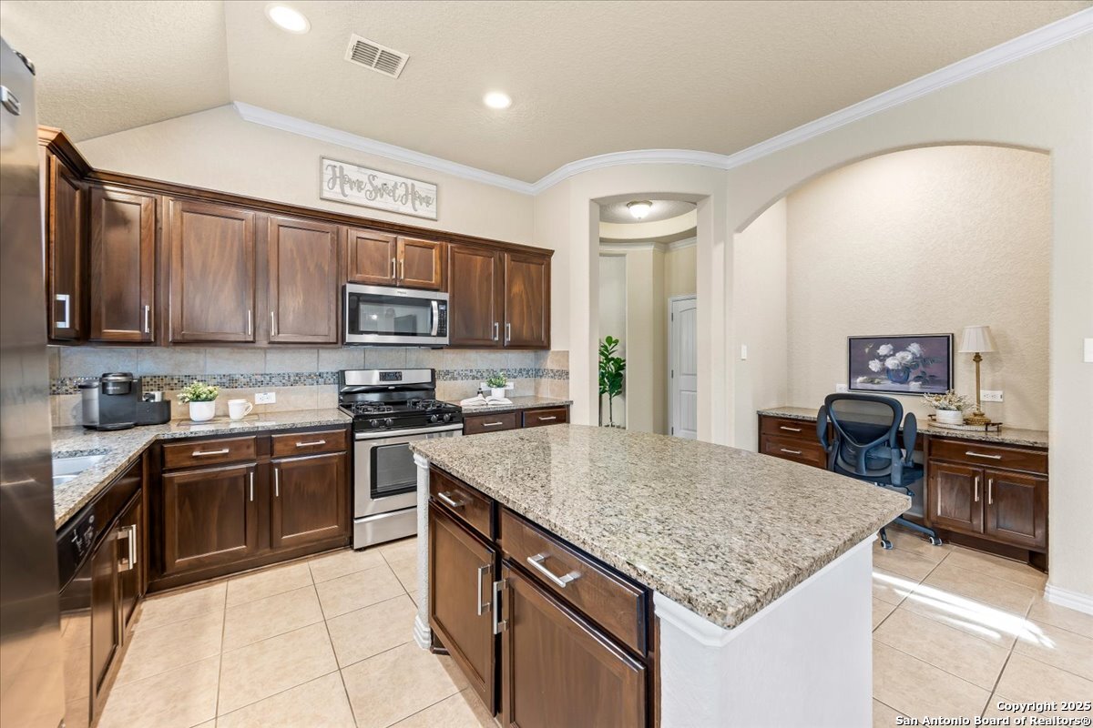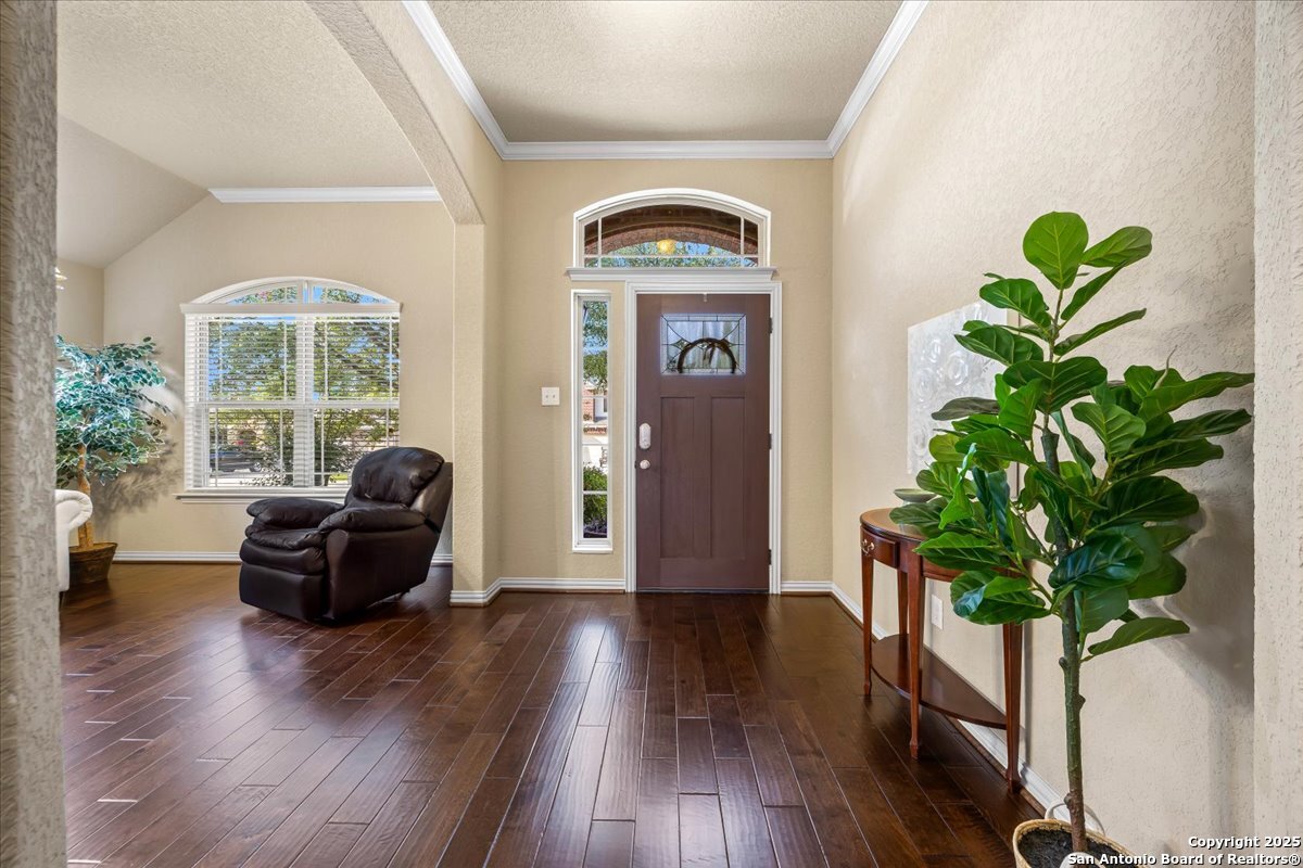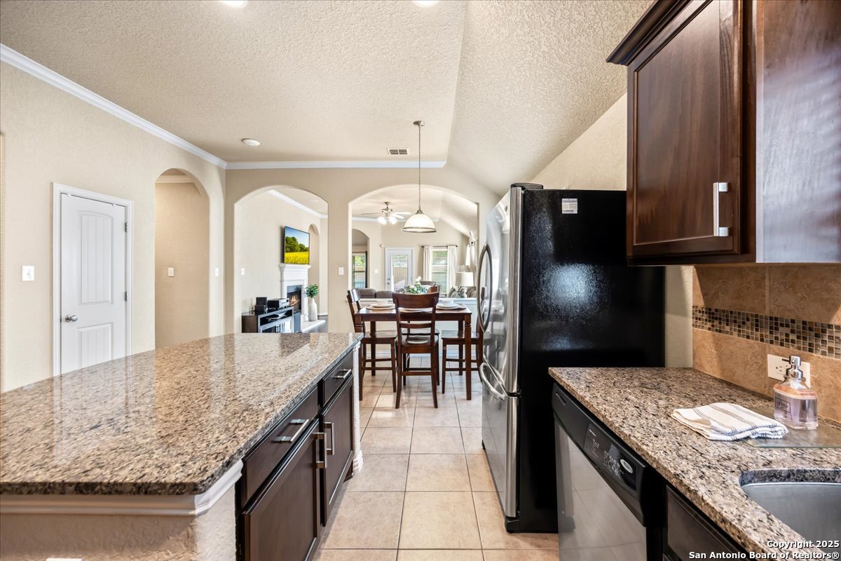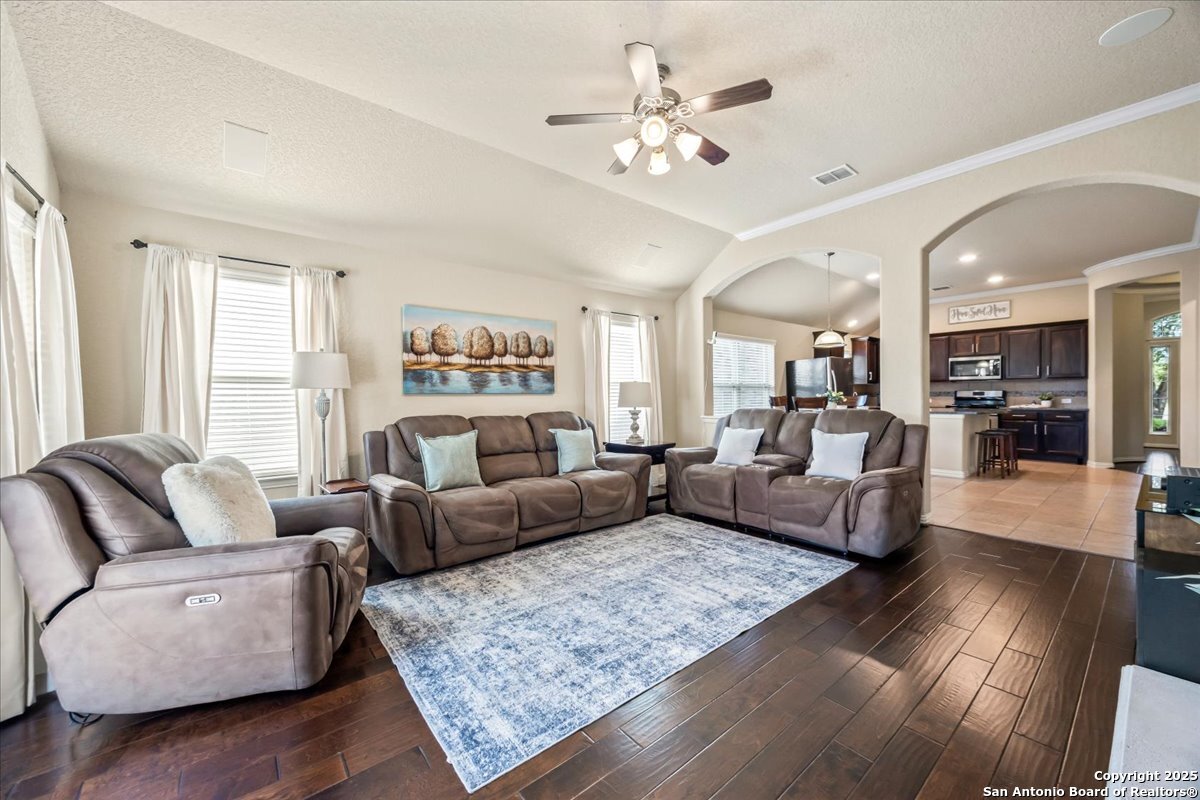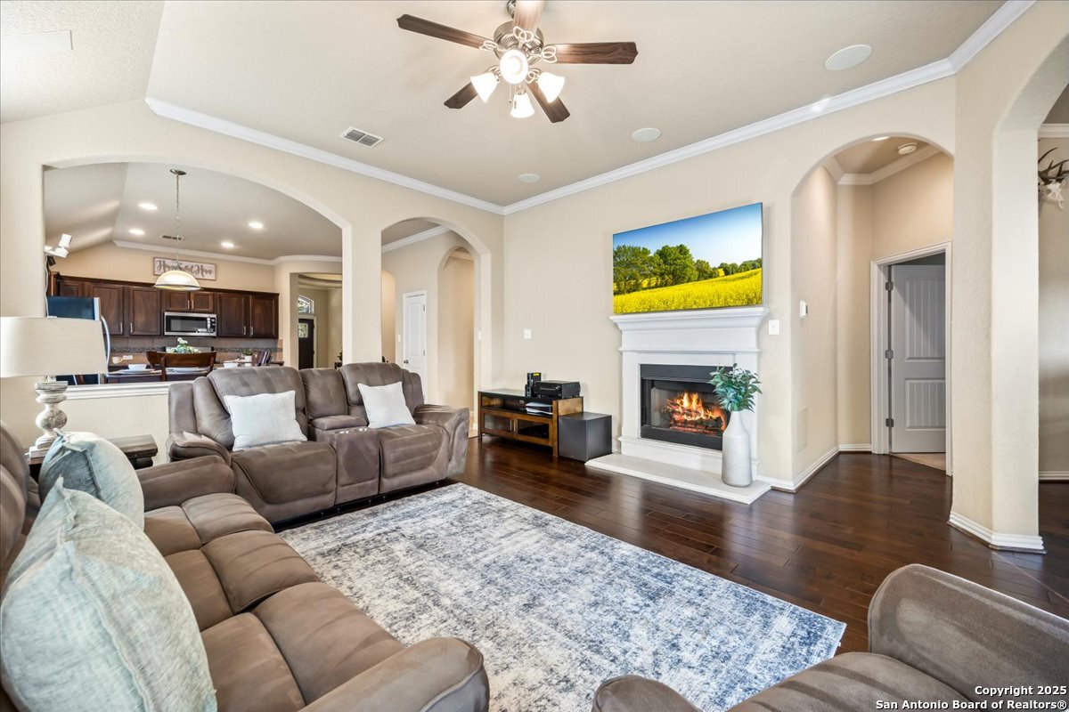 This immaculate one-story home sits in a well-established section of Alamo Ranch, offering comfort, style, and privacy with no neighbors behind. Inside, three spacious bedrooms and two full bathrooms provide an easy and functional layout. A dedicated dining room, uncommon in many modern floor plans, pairs beautifully with a study or flex space that adapts to your needs. Warm wood floors, crown molding in key areas, and a cozy fireplace create a sense of character and care throughout. Recent updates bring peace of mind, including a new roof and privacy fence installed in 2023, and a brand-new HVAC system in 2025. Outdoors, an extended deck offers the perfect place to relax or entertain, while a backyard shed provides extra storage without compromising yard space. Living in Alamo Ranch also means access to community amenities such as playgrounds, sports courts, a swimming pool, and a clubhouse, making this home both a retreat and a hub for connection. Thoughtfully maintained and move-in ready, this property combines practical updates with timeless appeal in one of San Antonio's most sought-after communities. Welcome Home!