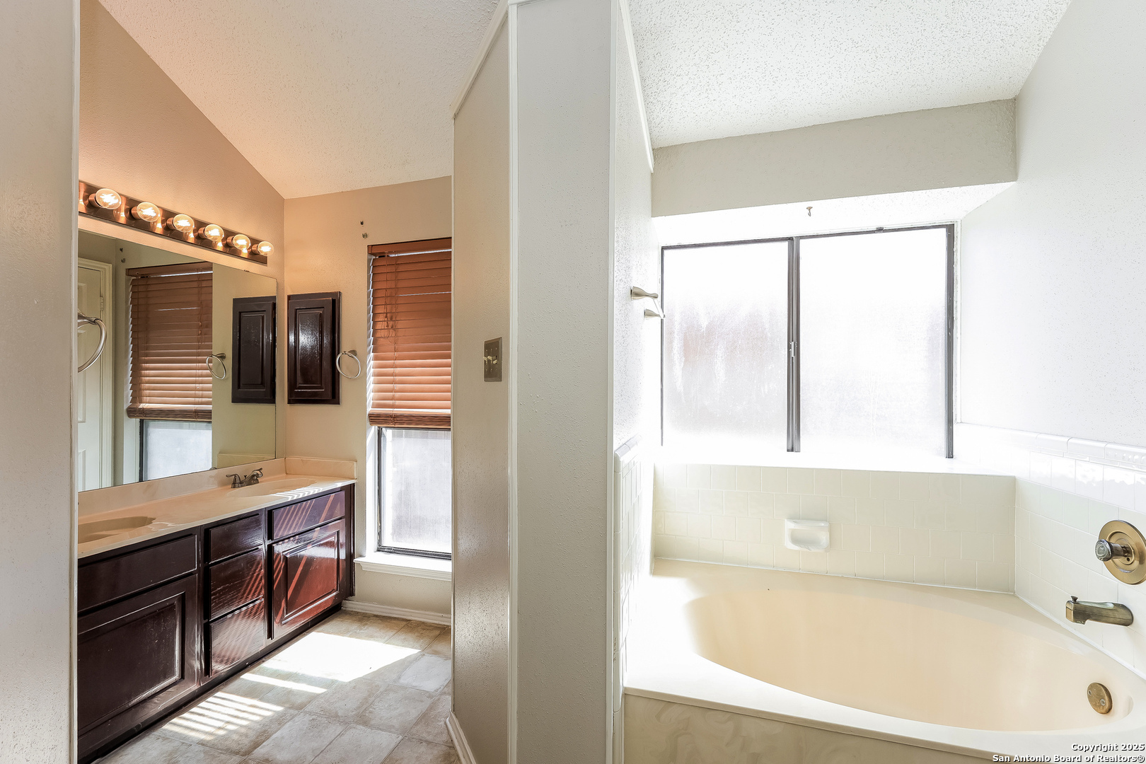 Great home in established neighborhood within walking distance to elementary school. Formal dining area could be used as a second living space with double sided fireplace. Primary bedroom is on the main level with three additional bedrooms upstairs. Oversized shaded yard. Community offers multiple pools, sports court and clubhouse. Convenient to 1604, Hwy 90, Lackland, shopping and restaurants.