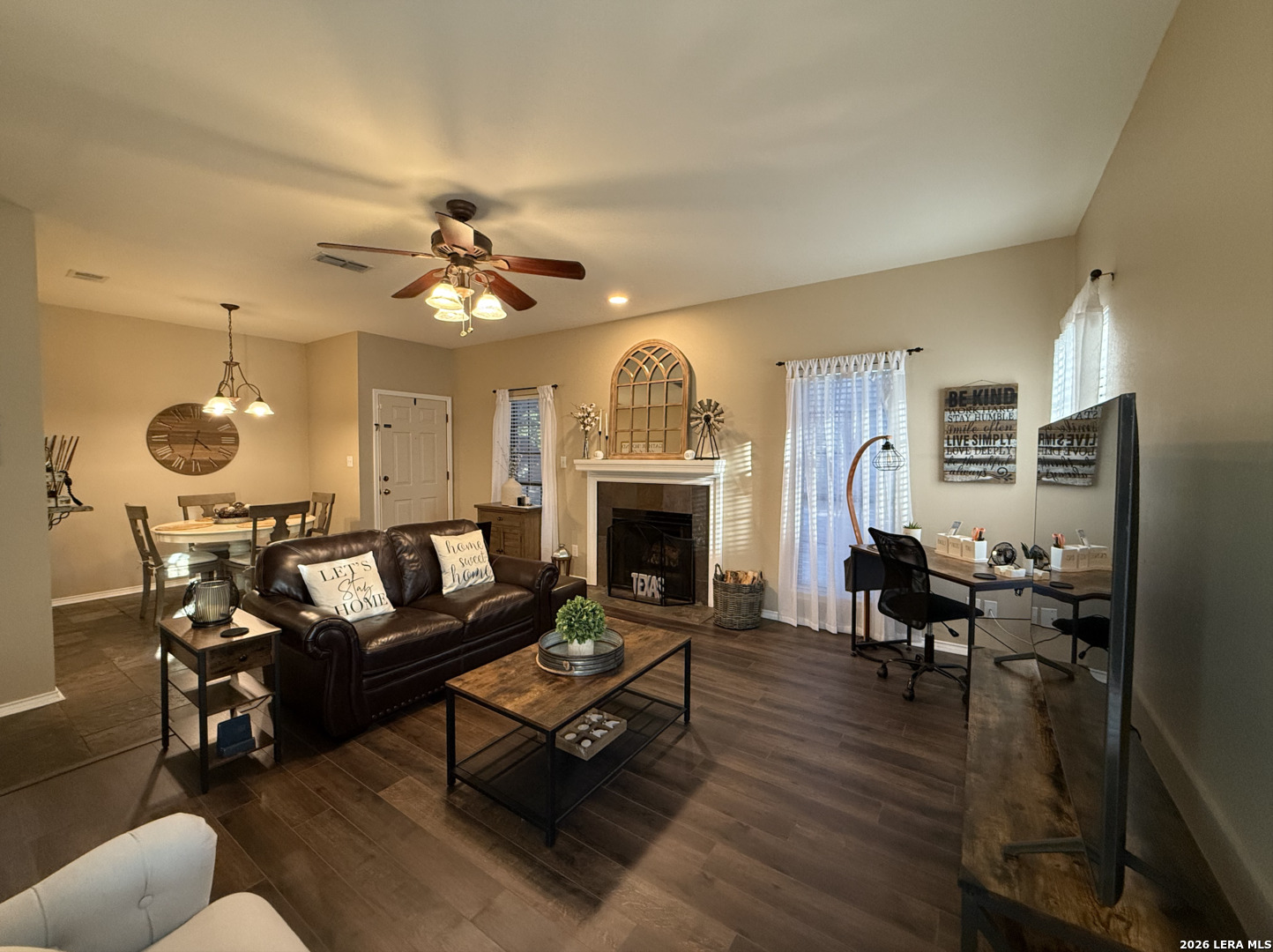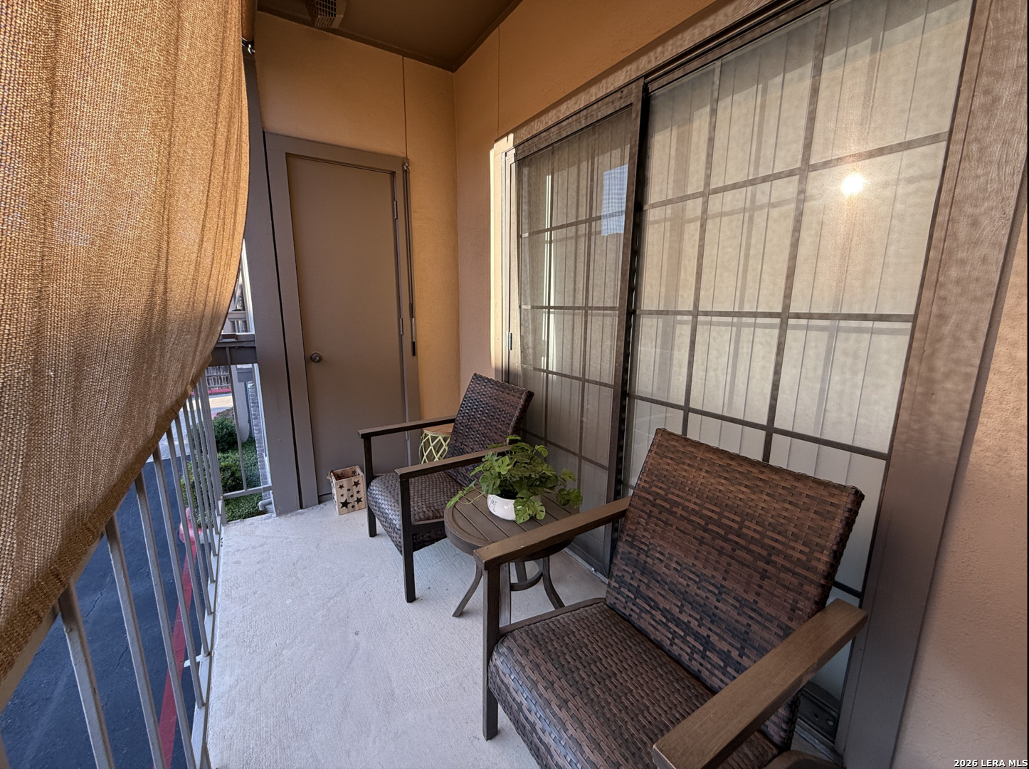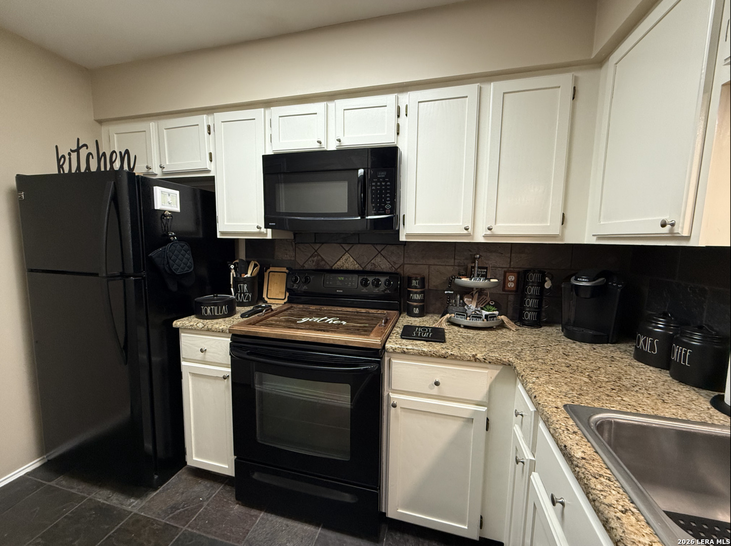 Welcome to this charming one-bedroom, one-bathroom rustic-style condo, thoughtfully upgraded to offer both style and comfort. As you enter, you'll find beautiful slate tile flooring in the hall, kitchen, and dining area, creating a warm and inviting feel. The living area, bedroom, bathroom and walk-in closet feature brand new vinyl plank flooring, adding a touch of modern elegance to the rustic design. The kitchen offers granite countertops, a sleek new matte black faucet, and all appliances included, making it ready for all your culinary adventures. The cozy bedroom is a standout with its reclaimed wood accent wall, a built-in bookcase, and a stylish new barn door closes off the washer and dryer area, keeping everything tidy and adding a rustic touch. Solar screen panels provide energy efficiency, and the included washer and dryer make this home completely move-in ready. Plus, this condo includes a one-car garage, offering both convenience and extra storage. With these thoughtful upgrades and unique touches, this condo is a perfect blend of rustic charm and modern convenience-ready to welcome you home.