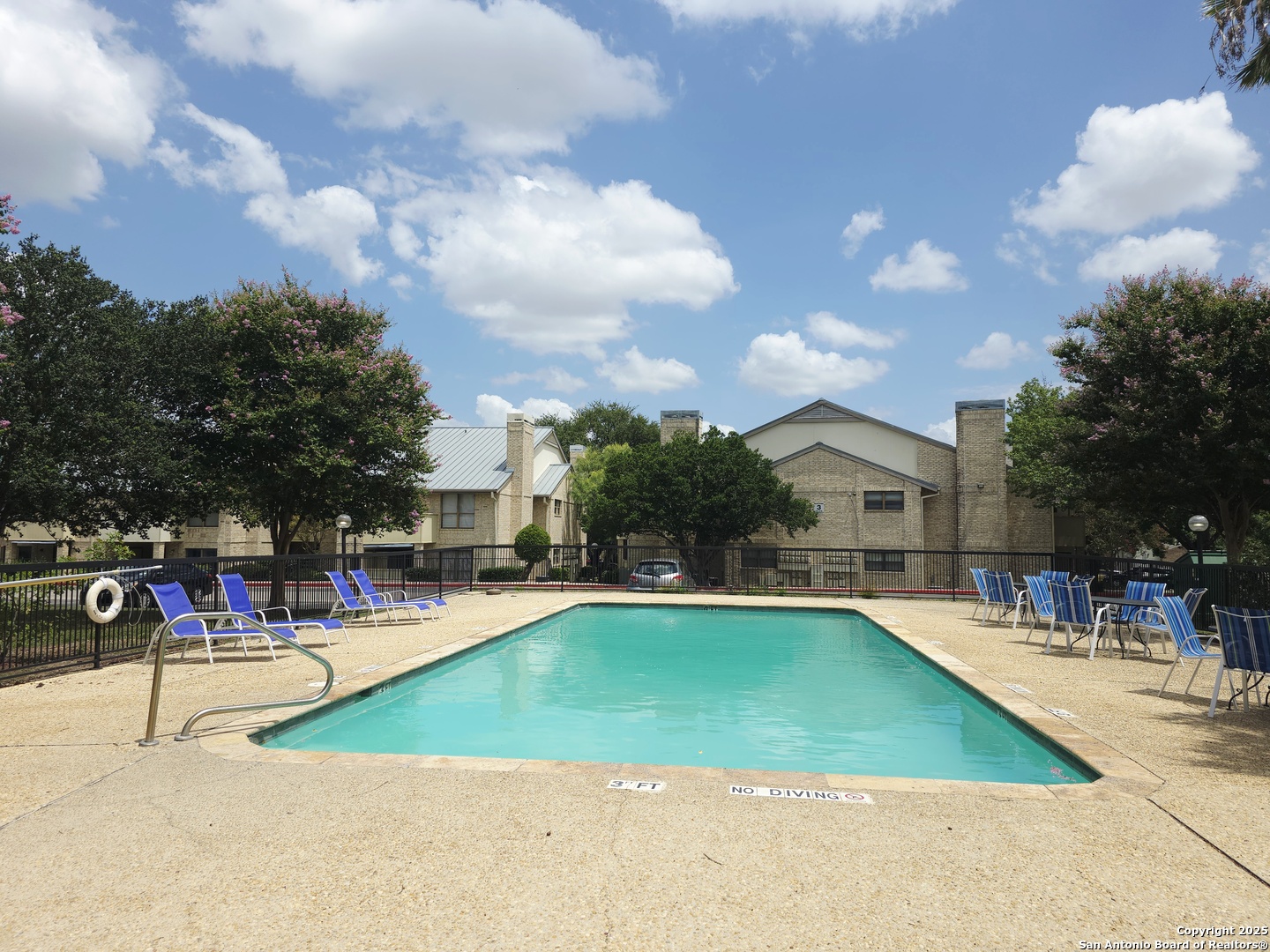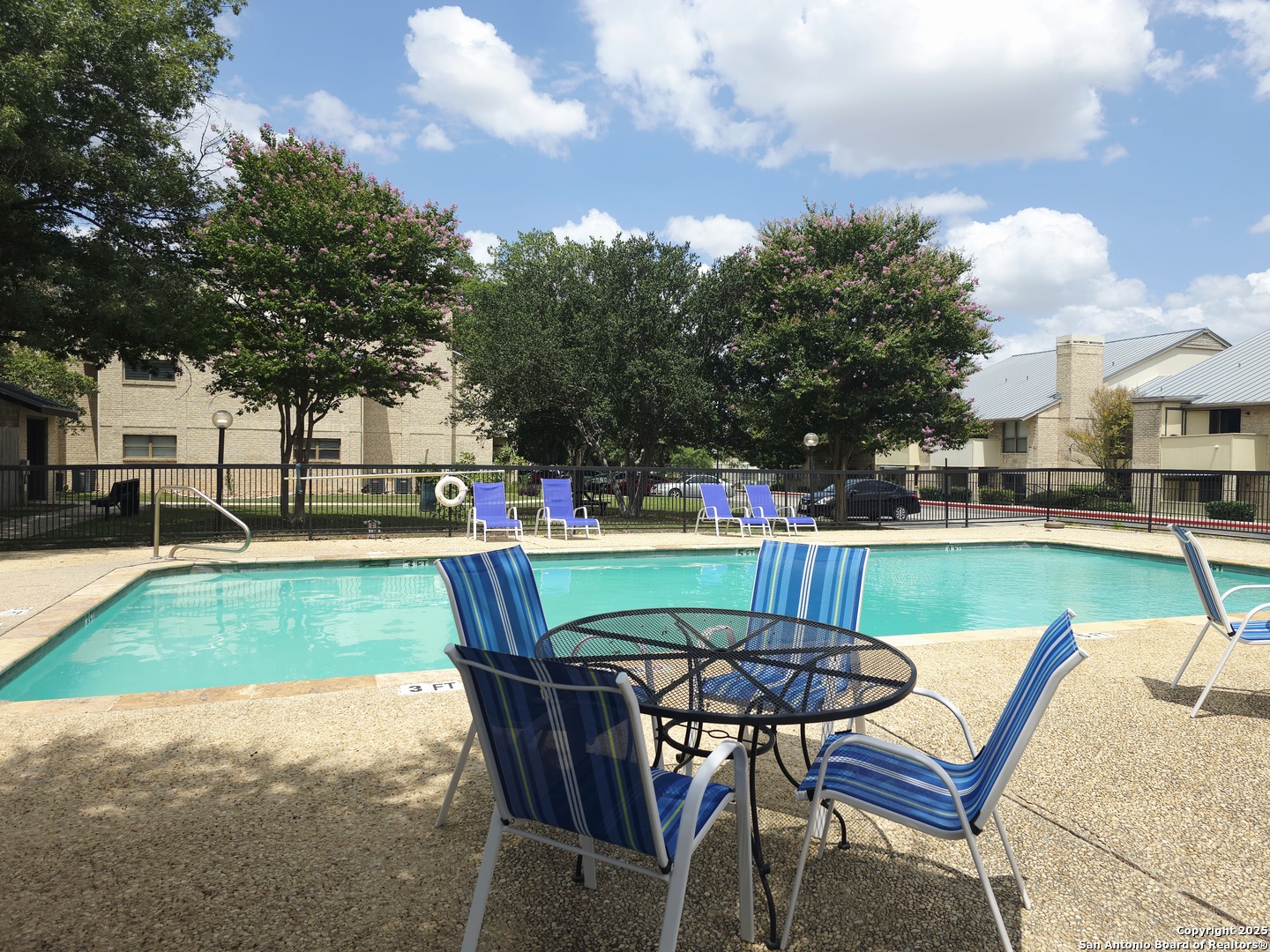 Welcome to this beautifully maintained 1-bedroom, 1-bathroom condo in a gated community. Featuring a spacious open-concept layout and a warm, welcoming atmosphere. The living room boasts a cozy fireplace, ideal for relaxing evenings, and flows seamlessly into the dining area and kitchen. The kitchen is equipped with sleek granite countertops, ample cabinet space, perfect for cooking and entertaining. The bedroom is generously sized, with plenty of natural light and two spacious closets. Plenty of storage space plus washer/dryer connections in the unit. Amenities include 4 swimming pools, BBQ/Picnic Area, Tennis Courts, and Clubhouse. Easy access to loop 410, city bus system just steps away, shopping, dining and the airport. Water and Trash included in HOA monthly fees. Whether you are a First-Time Home Buyer, Downsizing or looking for a Rental Investment, this condo is ready for you!