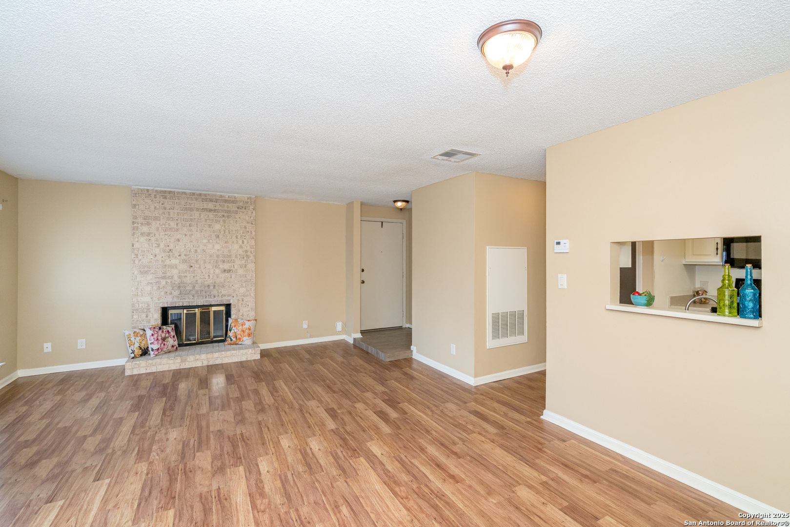 This beautiful, spacious one-bedroom condo is located in the highly sought-after Devonshire Condo complex, next to Phil Hardberger Park. It is near dining, entertainment, and the Alon shopping center and is minutes from Wurzbach Pkwy, major highways, and the Airport. The Devonshire community has gated access and several amenities: community pools, tennis courts, BBQ area, walking paths & mature trees. This condo has an open layout with a wood-burning fireplace that makes this unit cozy and comfortable. The large bedroom with two walk-in closets and a bright bathroom with a tub/shower combo. All flooring in the condo is laminate except the entrance with the tiles. The spacious covered patio has plenty of space to enjoy morning coffee, and it holds a full-sized washer and dryer inside the utility closet. Well-equipped gallery kitchen with all appliances that remain with the unit. A nice dining area off the living room & kitchen. A MUST SEE CONDO!!!