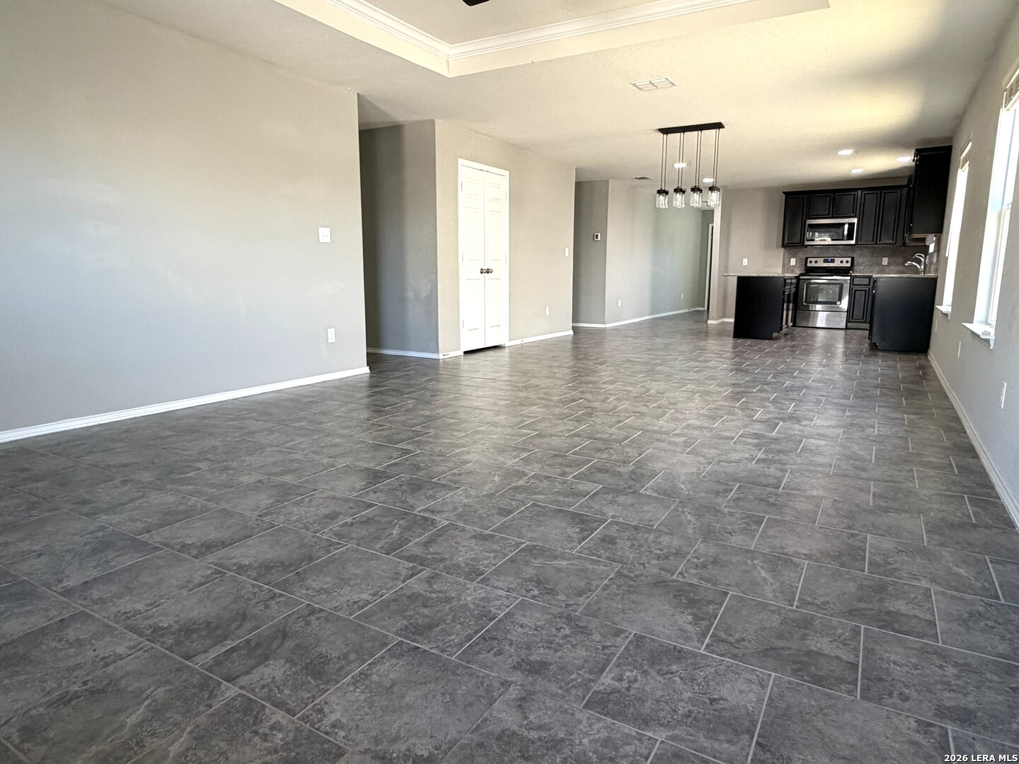 Step into this bright and open three bedroom, two bathroom home that perfectly balances comfort and convenience. The layout features an open floor plan, easy access to the living and kitchen area. Single story home. Tile flooring throughout the living area. Kitchen with large island. Granite countertops. Tray ceilings. Two other bedrooms are located other side form the master bedroom giving more privacy. Attached two car garage.