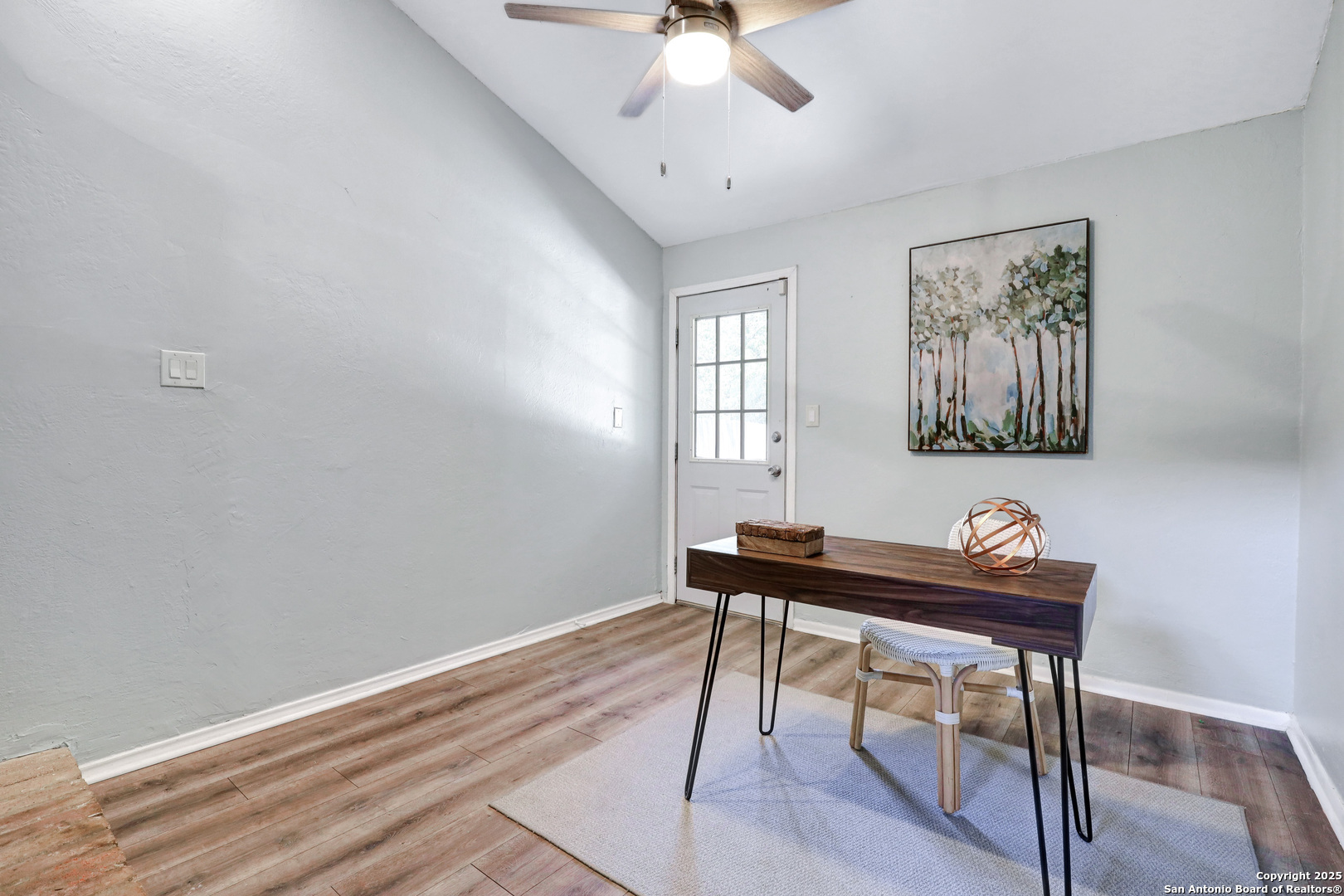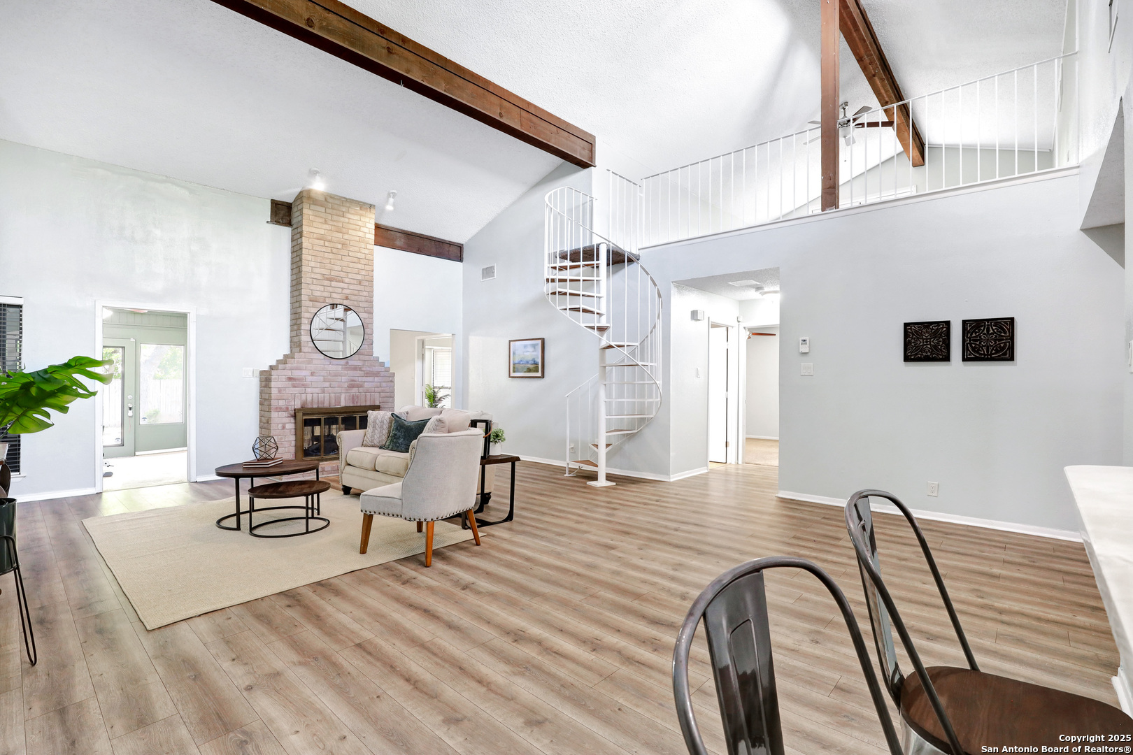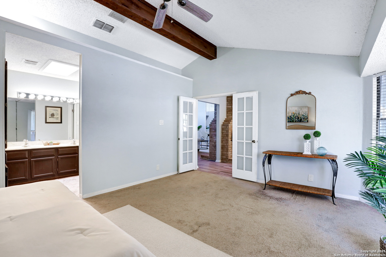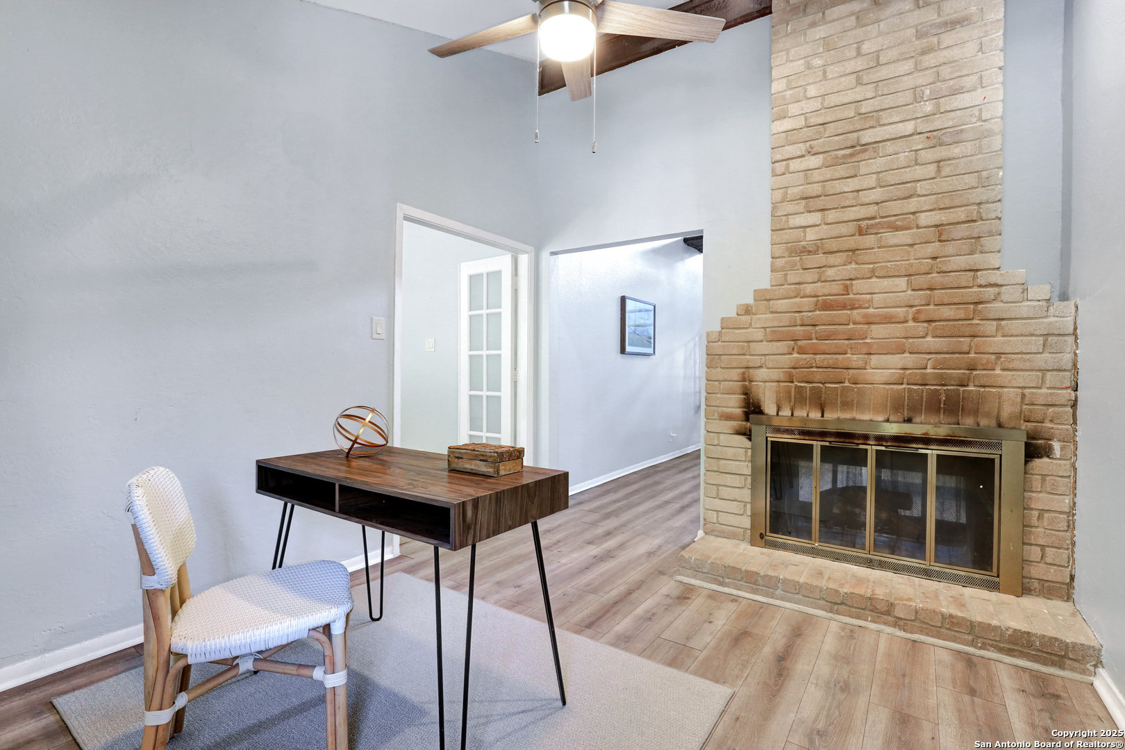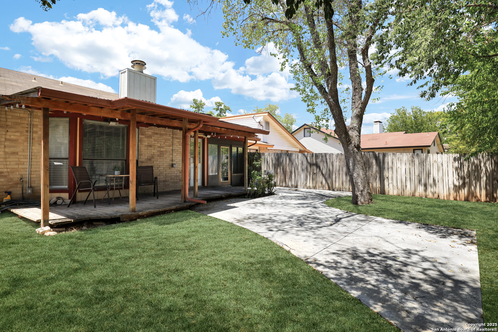 Welcome to this charming garden home in the highly sought-after Tanglewood neighborhood, offering a versatile floor plan in one of San Antonio's most convenient locations. As you enter, you're greeted by soaring vaulted ceilings that create a bright and airy atmosphere. The expansive living room is bathed in natural light, featuring a cozy two-sided fireplace that adds warmth and character. The well-appointed kitchen boasts generous counter space, abundant storage, and a central island that's ideal for meal prep or entertaining guests. The primary suite is a peaceful retreat, offering privacy and a spacious en-suite bathroom with plenty of closet space. Just outside the suite, a charming office nook or sitting area is framed by beautiful French doors. Two additional bedrooms on the main floor provide flexibility for family members, guests, or a dedicated hobby space. Off the living room, you'll find a bright and inviting enclosed porch-an ideal spot for a home gym, reading nook, art studio, or playroom. The possibilities are endless! The large covered deck and low-maintenance backyard offer plenty of room for outdoor gatherings, whether you're grilling with friends or enjoying a quiet morning coffee. The expansive loft space can easily be transformed into a game room, art studio, or sunny home office, making this home perfect for those seeking flexible living spaces. With easy access to UTSA, IH-10, USAA, and the Medical Center, your commute will be a breeze. This home offers so many opportunities to make it your own-come see the potential and envision all the possibilities in this unique layout!