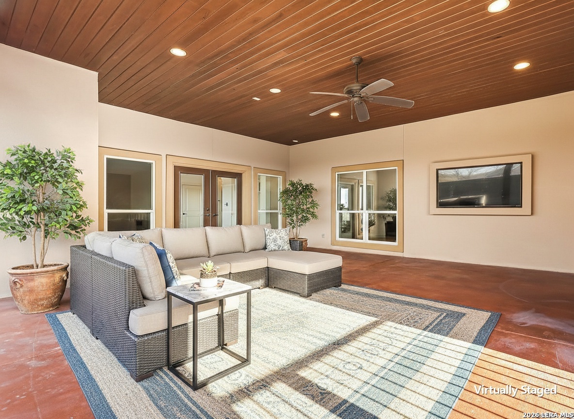 Seller is offering $10,000 in seller concessions for the buyer! Experience the charm of this custom-built 5-bedroom home, offering open and stylish living areas, breathtaking outdoor views, and exclusive access to the scenic Guadalupe River. Designed with everyday comfort in mind, this property perfectly blends style and functionality. Each bedroom boasts a private bathroom, while a main-floor home office provides a peaceful workspace. The master suite includes a cozy den, a large walk-in closet, and a luxurious bathroom, perfect for relaxation. Practical amenities such as a Tesla charger, metal roof, and a three-car garage with extra parking enhance convenience. Entertain effortlessly with an outdoor kitchen under soaring ceilings and enjoy multiple patios, an outdoor fireplace, and expansive 2-acre grounds. River Chase's exceptional amenities include a pool, basketball courts, frisbee golf, walking trails, gym, clubhouse, and veteran's memorial area. This unique hill country residence combines comfort, style and nature.
