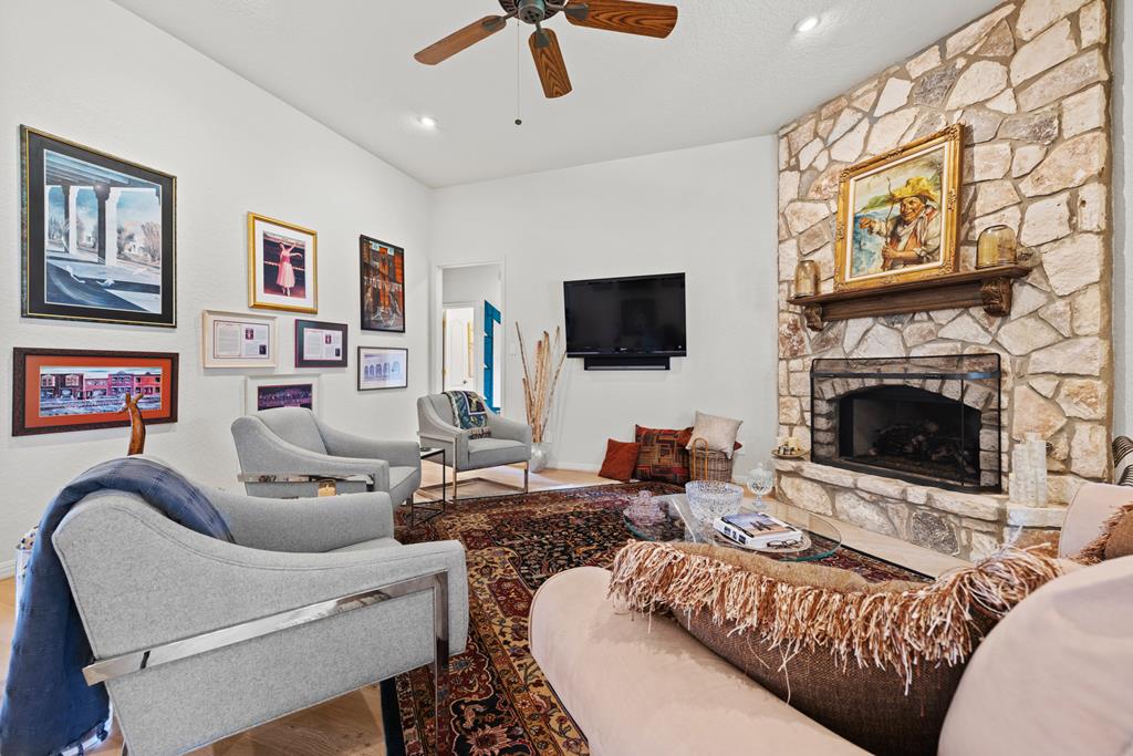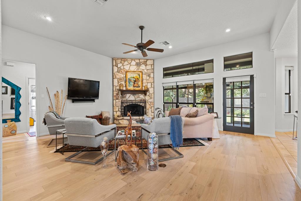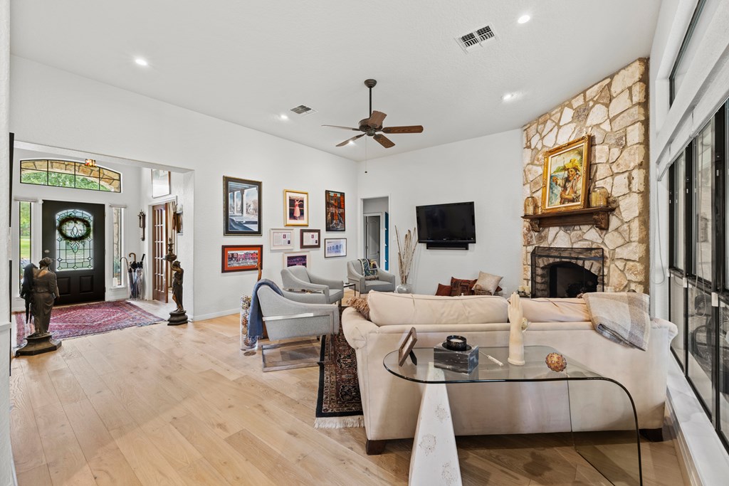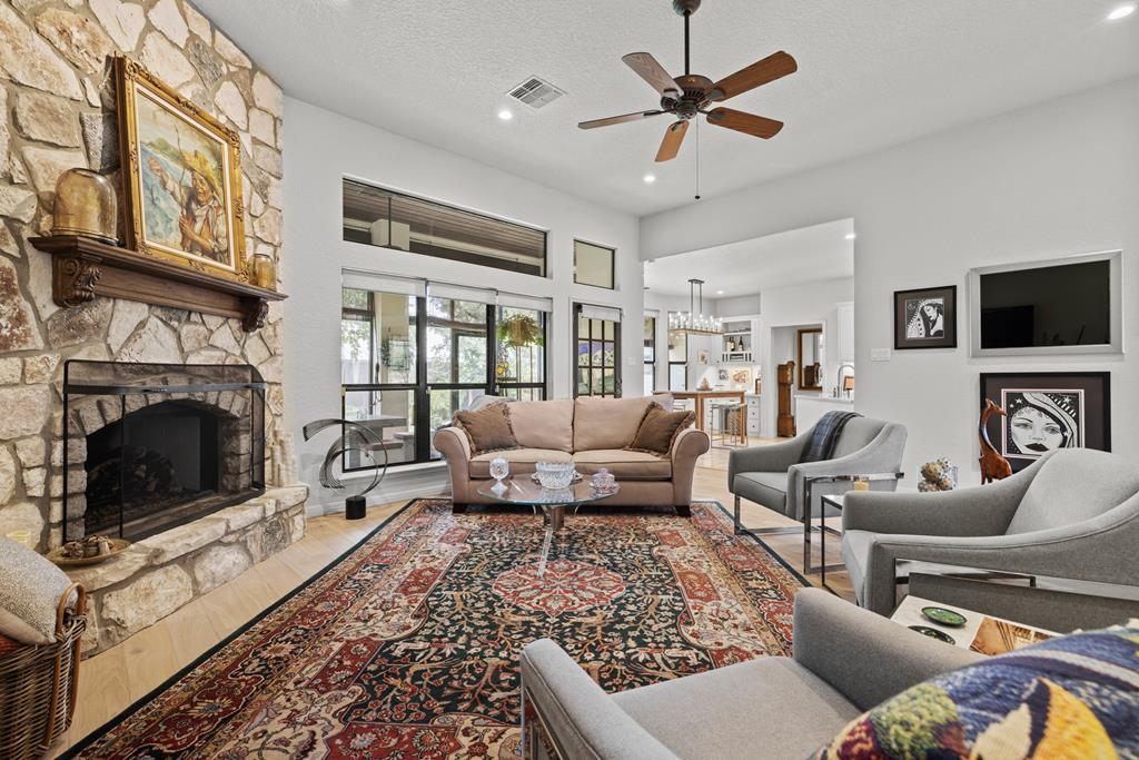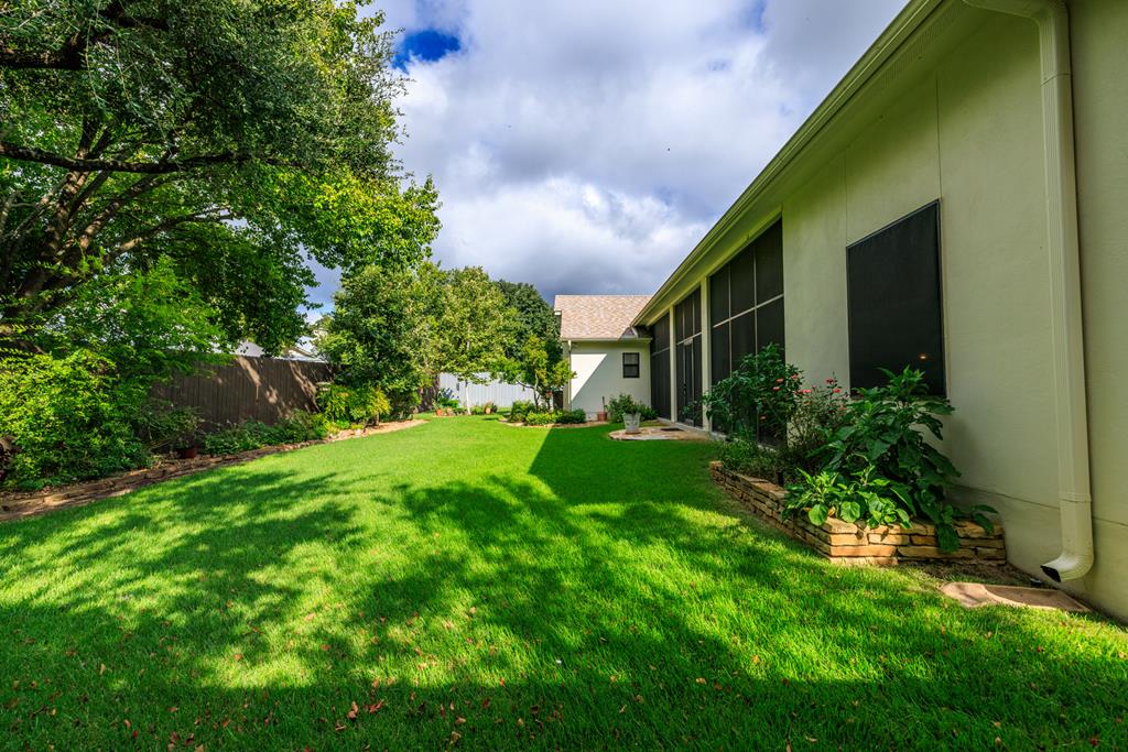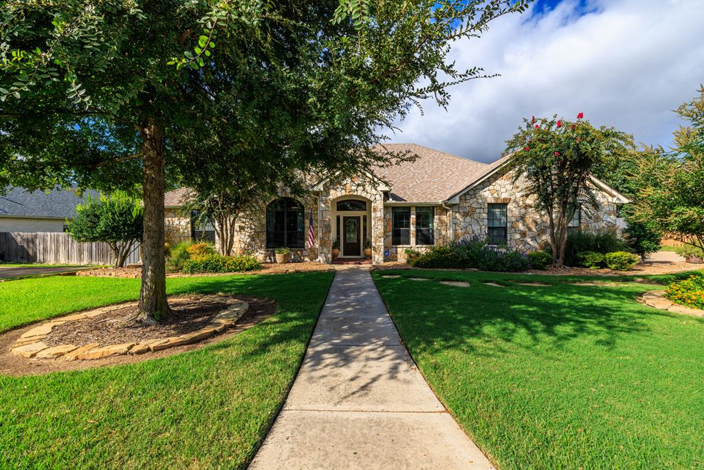 This beautiful 4br/2.5ba home located in the Stone Ridge subdivision has curb appeal that will catch your eye as you drive up. The home features a formal dining room, office/den, nice size family room with a fireplace/gas starter, and an open kitchen with quartz countertops and updated appliances. The dine-in kitchen includes a custom granite breakfast table. The home has a split floor plan with the master suite, laundry and powder room located close to the kitchen. The other side of the home has 3 bedrooms with a full bath/double sinks. A great screened porch is off the family room/kitchen which overlooks a wonderful back yard with lots of trees and beautiful flower beds. A concrete pad approx. 30x36 located to the side of the home is perfect for an outdoor kitchen, basketball court, etc. This home is well manicured (new flooring, new countertops, new roof), with great indoor and outdoor living spaces in a great subdivision. Home is priced below the GCAD appraised value.