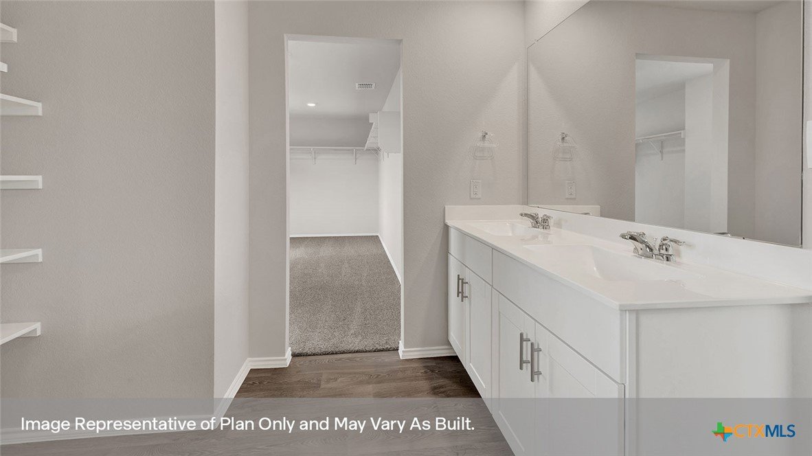 MOVE IN READY! The Nicole is our largest floorplan available at our Bollinger community in Maxwell, Texas. This two-story home offers 4 bedrooms, 3 bathrooms, a gameroom, and 2 car garage all within 2,473 square feet of comfortable living space. Entering the home, cross the foyer and find a short hallway to the downstairs secondary bedroom and a full bathroom. The family room, dining area, and kitchen are open, making entertaining and everyday living a shareable experience for family and friends. The kitchen features an island with undermount sink, granite countertops, 4" backsplash, a pantry closet, 36” upper cabinets, and stainless-steel appliances, including a gas range. Moving upstairs, you’ll enter the gameroom, the center of the upstairs space. The oversized primary bedroom is tucked away from the gameroom. Stretch out and relax at the end of your day in this spacious and private ensuite. The primary bathroom features a walk-in shower, cultured marble vanity with dual sinks, separate toilet area with a door, and an enormous walk-in closet. This will be the closet of your dreams, spacious enough to add a dressing island or chaise lounge for a full luxurious experience. The additional upstairs bedrooms and bathroom are located opposite the primary bedroom. The bedrooms feature walk in closets with shelving. Both secondary bathrooms include a shower/tub combination. The utility room rounds out the upstairs space, making laundry chores a breeze. The Nicole includes vinyl flooring throughout the common areas of the home, and carpet in the bedrooms, gameroom and stairwell. A covered back patio is also included in the Nicole plan. All our new homes feature Bermuda sod, an irrigation system in the front and back yard, and a 6’ privacy fence around the back yard. This home features our America’s Smart Home base package, which includes the Video Front Doorbell, Front Door Deadbolt Lock, Home Hub, Thermostat, and Deako® Smart Switches.