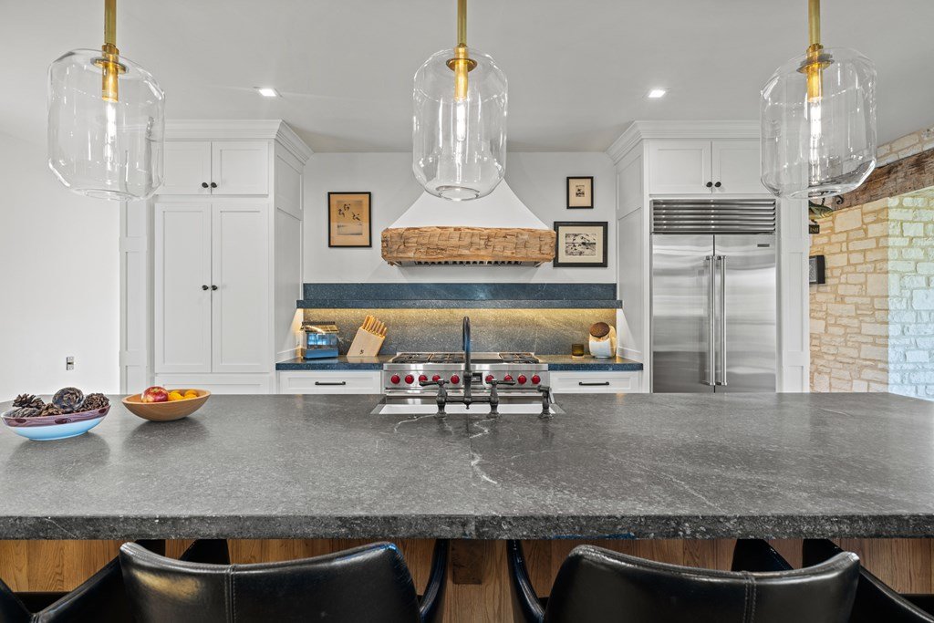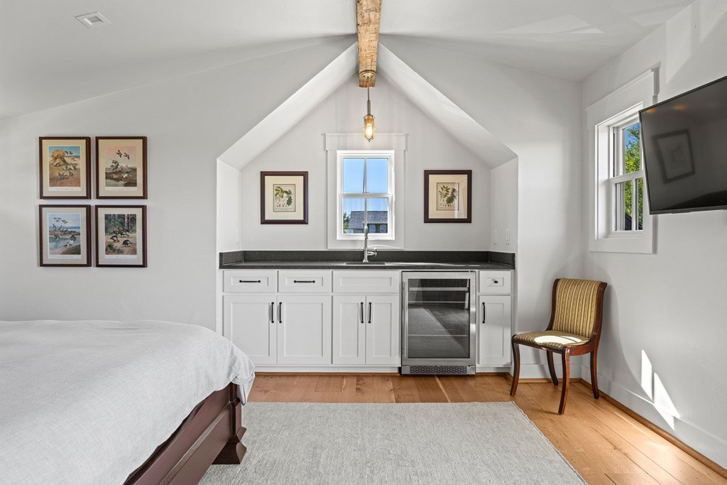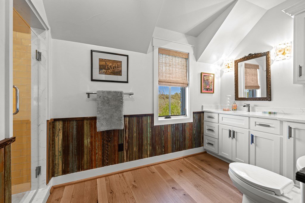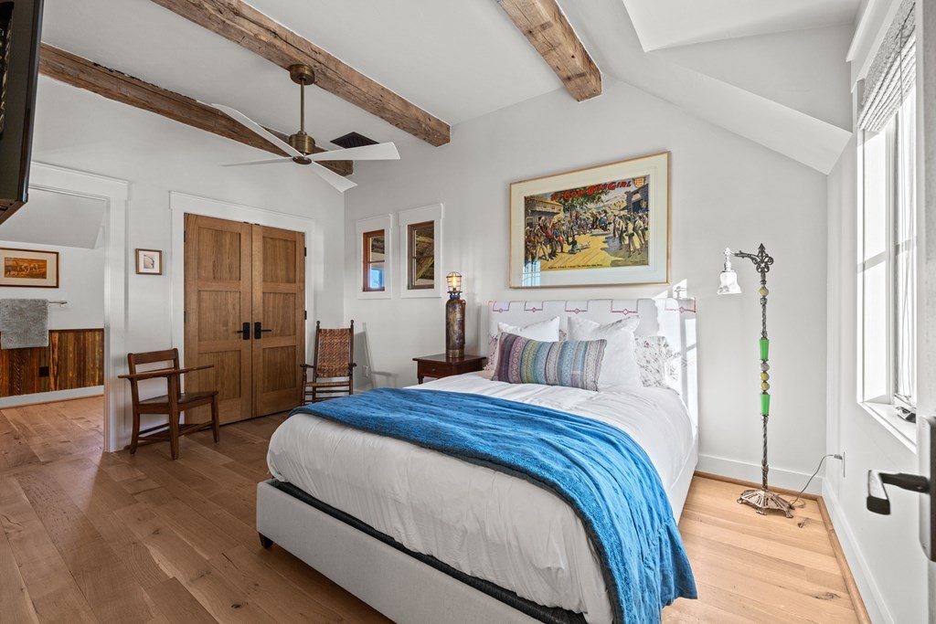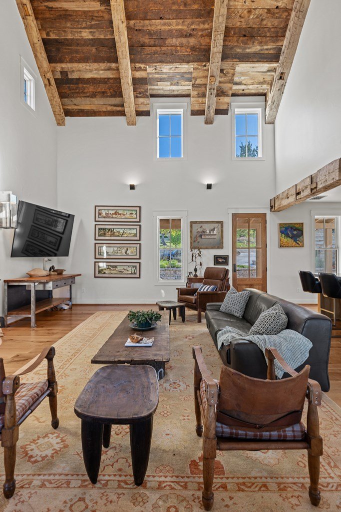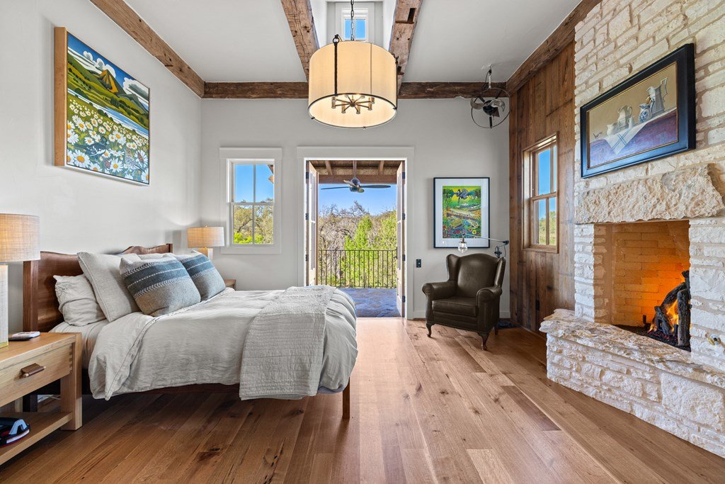 This beautifully designed residence in the Overlook Cabins at Boot Ranch reflects 19th-century Fredericksburg charm and features an authentic log cabin from a Pennsylvania dairy farm (circa 1800s). The residence, located along Palo Alto Creek, includes two bedrooms with ensuites and an additional guest bath. Built with reclaimed timbers, cypress, and longleaf pine, it showcases a floor-to-ceiling limestone fireplace and white oak flooring. The open-concept kitchen and living area, perfect for entertaining, features premium Wolf appliances, a six-burner gas range, an extensive island, and a spacious butler pantry. The combination of wood and native stone faades enhances the dining area, merging modern elements with historical materials. Details such as the hand-crimped ridges on the standing seam roof, unique copper details, and the porch roofs are crafted with fireproof Endurashake shingles prove attention to detail. The barn-style detached garage accommodates two cars and a golf cart, above offering a one-bedroom ensuite for privacy. Additionally there is the log cabin with two bedrooms and two full baths, providing further bedroom accommodations. Boot Ranch is a gated community exclusive to its members with multi-generational membership plans. The community includes multiple lakes, award winning Golf course, amazing lodge with award winning chefs, multiple pools, tennis and pickle ball courts, the list goes on! Come be a part of this amazing community.