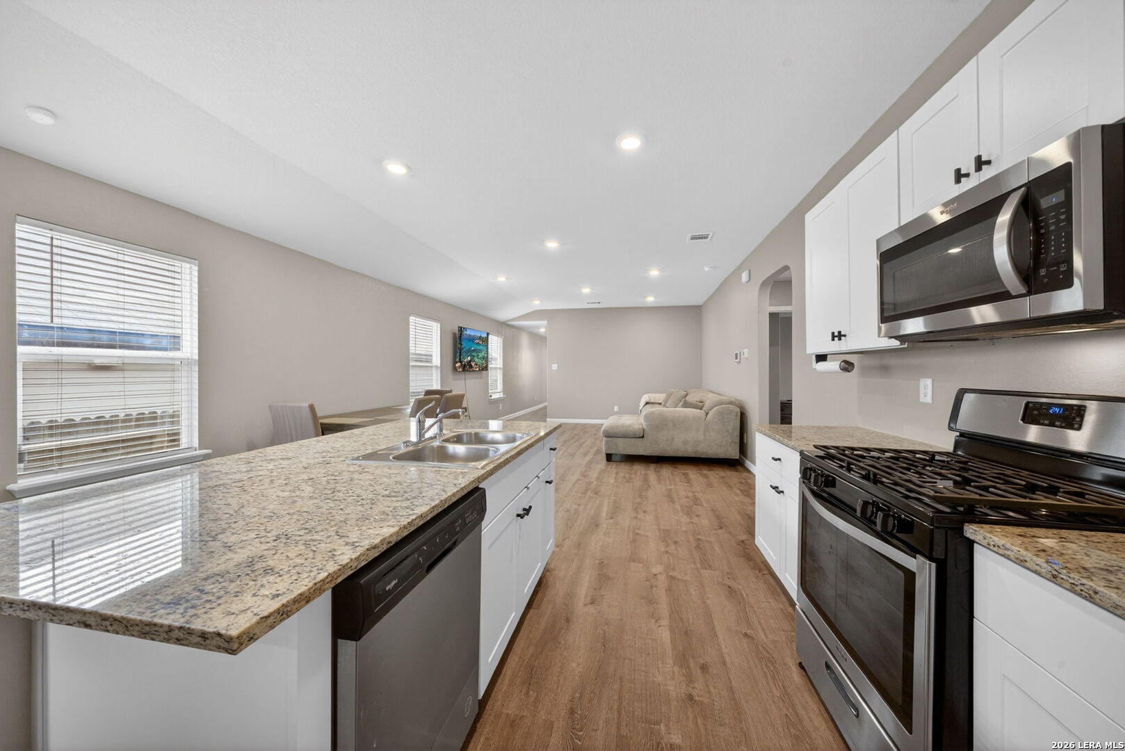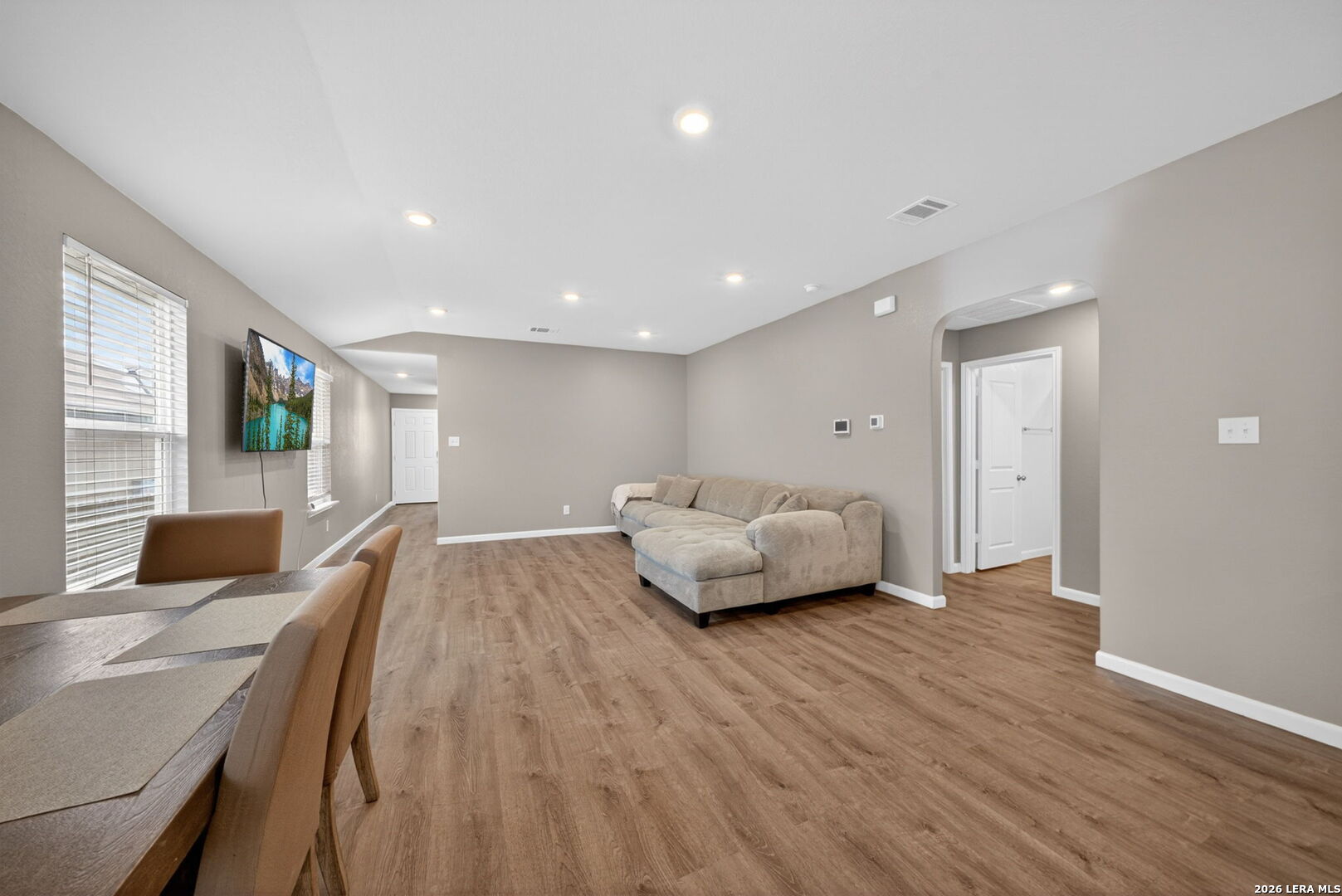 Welcome to this lovely home that blends comfort, functionality, and everyday living with ease. This inviting three bedroom, two bath home welcomes you with a warm foyer that opens into a bright, open-concept living, dining, and kitchen space, perfect for both relaxing evenings and effortless entertaining. Sunlight pours in through multiple windows, creating an airy and uplifting atmosphere throughout. At the heart of the home, the kitchen features a spacious eat-in island, ideal for gathering with family and friends, while seamlessly connecting to the main living areas for a natural flow. The private primary suite offers a peaceful retreat, complete with a well appointed ensuite bathroom featuring a standing shower and a generous walk-in closet. The secondary bedrooms provide versatile space to suit your lifestyle whether for guests, a home office, or additional living needs. Step outside to enjoy a covered patio overlooking the backyard, offering the perfect setting for morning coffee, evening unwinding, or weekend gatherings. If you'd like more details or to schedule a private showing, feel free to reach out this is a home you won't want to miss.