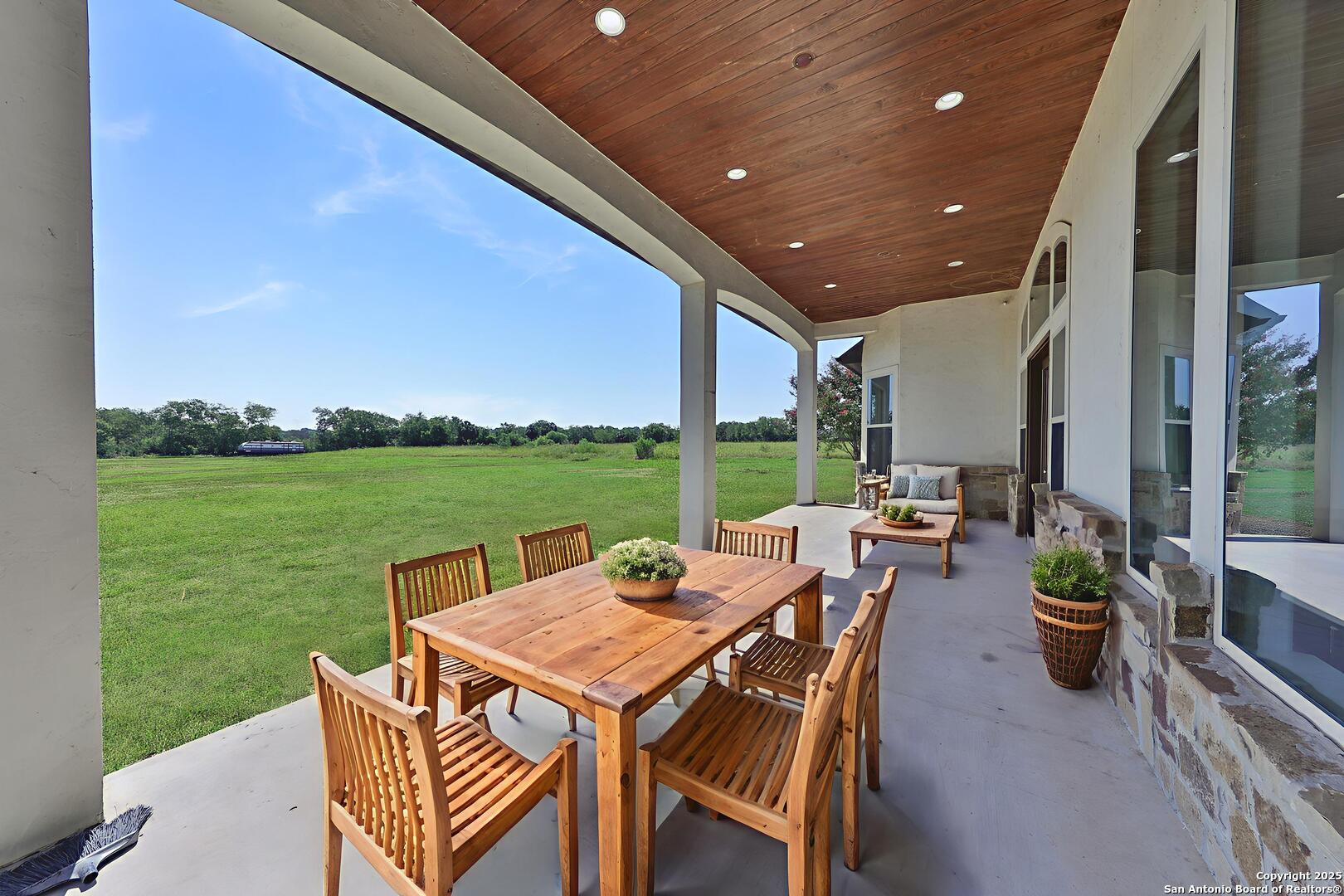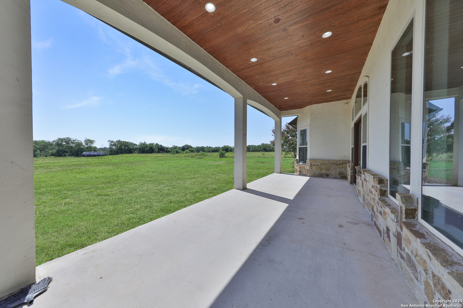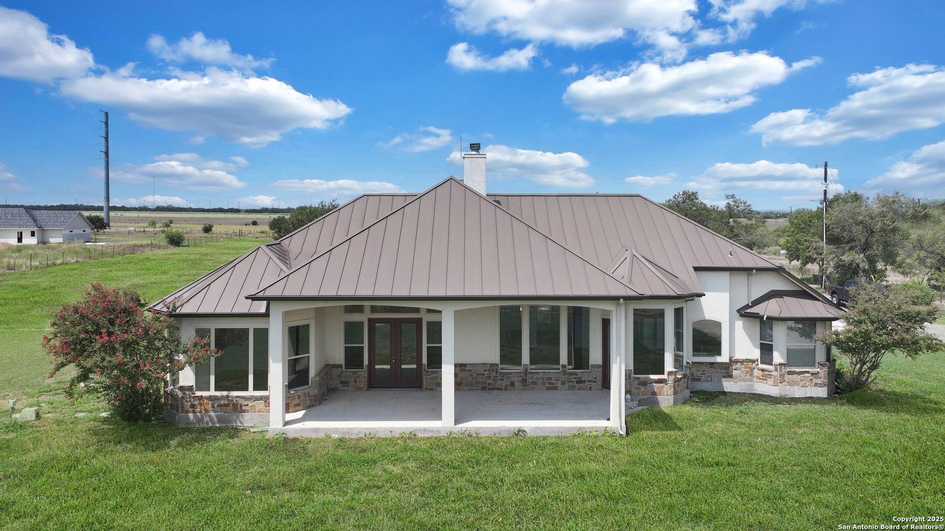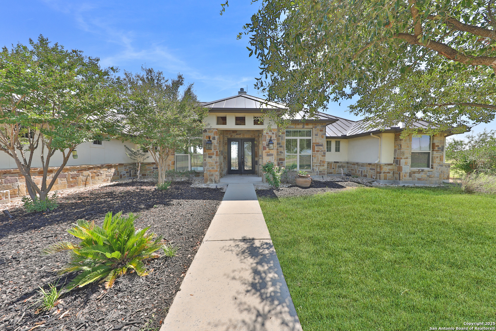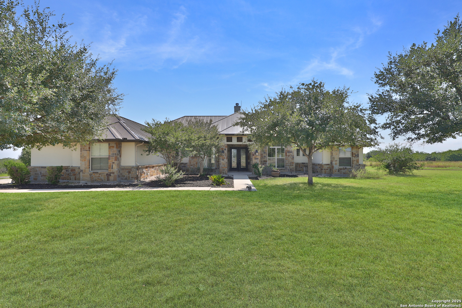 *** Open House Saturday, Sept. 20, 11 AM-2 PM*** Welcome to your private retreat on 5.41 acres-this impressive 4-bedroom, 3-bathroom rock and stucco home offers 3,420 sq. ft. of thoughtfully designed living space with no HOA restrictions. Step inside to soaring 12-foot ceilings and tile flooring with a wood-look finish. The gourmet kitchen is a chef's dream, featuring a large island, 6-burner Thermador gas range with double oven and griddle, pot filler, farm sink, and two refrigerators, ensuring ample space for meal prep and gatherings. The bright breakfast area with bay window overlooks the peaceful backyard. In the living room, custom built-ins frame a double-sided fireplace that extends into the game room, where wood beam accents create a warm and inviting atmosphere. A private study with French doors and wood beams sits at the front of the home, while a formal dining room provides an additional gathering space. The split primary suite is a true retreat with tray ceilings, its own bay window, walk-in closet, dual vanities, and a spacious walk-in shower with dual shower heads. Secondary bedrooms are connected by a Jack-and-Jill bath, while walk-in closets are found throughout the home. A spacious media room sits above the garage, complete with new carpet and pre-wiring for surround sound. The outdoor space includes a large covered back porch and a concrete pad with basketball hoop, complemented by mature landscaping, a sprinkler system, partial fencing, and a gated front entrance. Additional features include a metal roof, dual AC units, and pre-plumbing for a water softener. Located in a peaceful country setting, this home offers both privacy and convenience with a short drive to town.