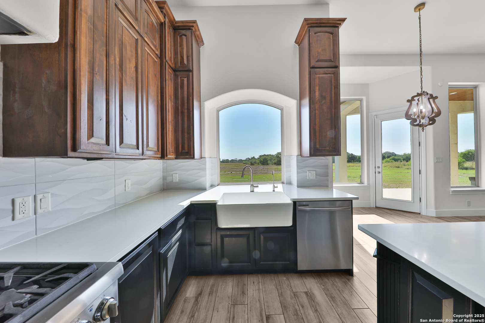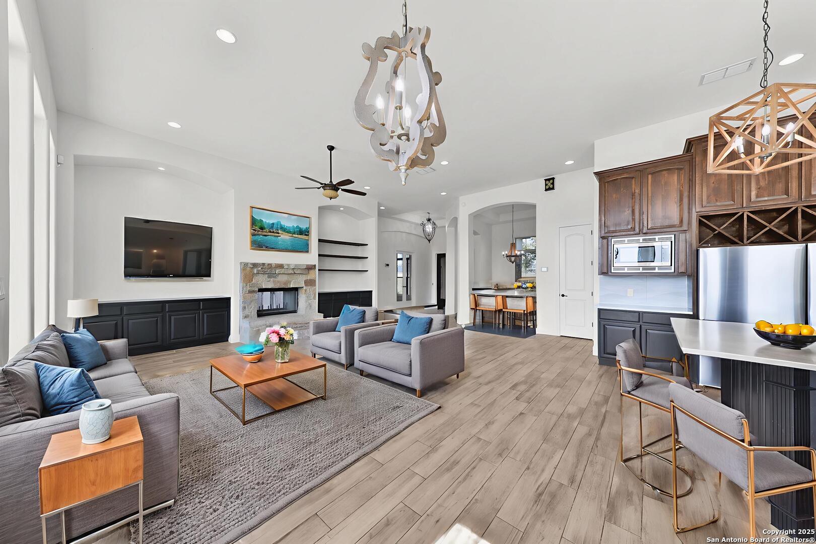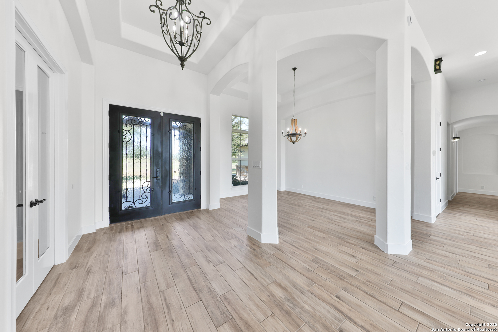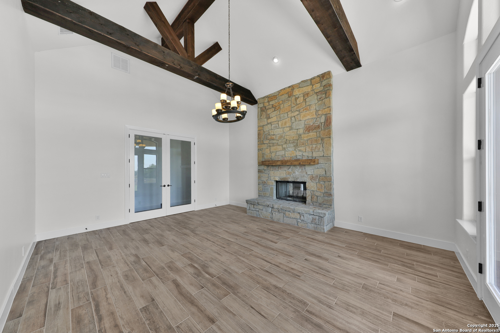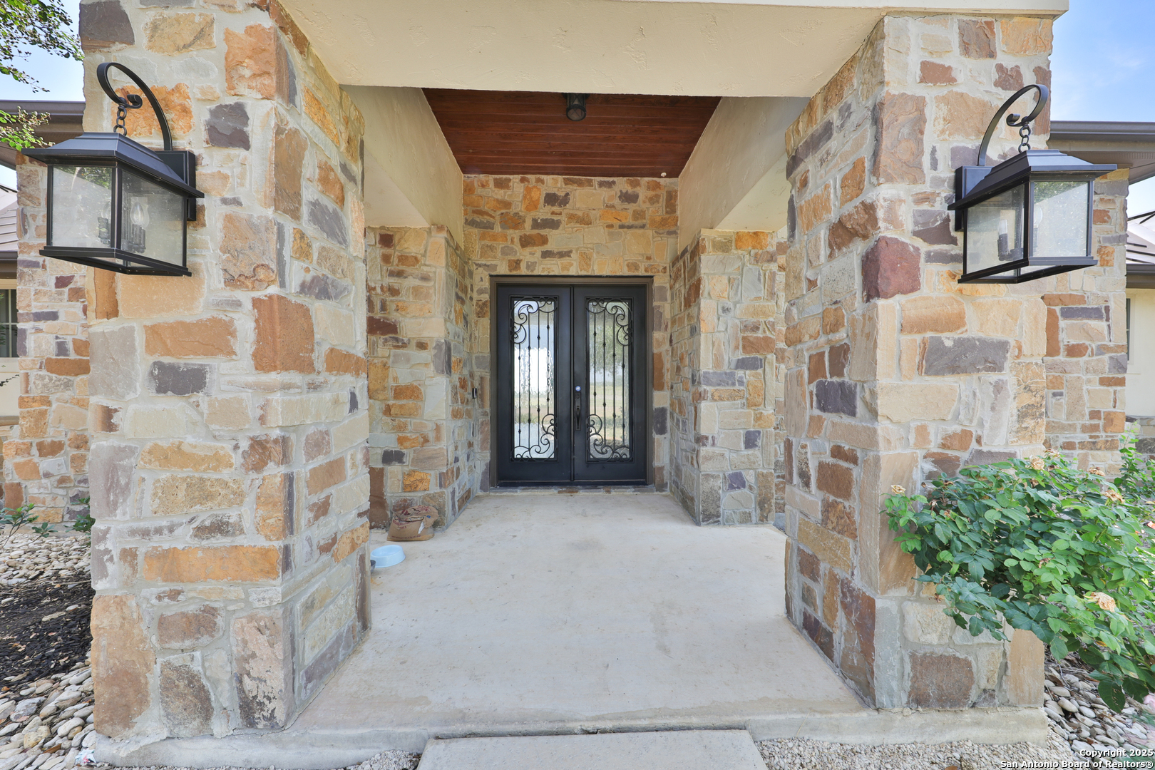 *** Open House Saturday, Sept. 20, 11 AM-2 PM*** Welcome to your private retreat on 5.41 acres-this impressive 4-bedroom, 3-bathroom rock and stucco home offers 3,420 sq. ft. of thoughtfully designed living space with no HOA restrictions. Step inside to soaring 12-foot ceilings and tile flooring with a wood-look finish. The gourmet kitchen is a chef's dream, featuring a large island, 6-burner Thermador gas range with double oven and griddle, pot filler, farm sink, and two refrigerators, ensuring ample space for meal prep and gatherings. The bright breakfast area with bay window overlooks the peaceful backyard. In the living room, custom built-ins frame a double-sided fireplace that extends into the game room, where wood beam accents create a warm and inviting atmosphere. A private study with French doors and wood beams sits at the front of the home, while a formal dining room provides an additional gathering space. The split primary suite is a true retreat with tray ceilings, its own bay window, walk-in closet, dual vanities, and a spacious walk-in shower with dual shower heads. Secondary bedrooms are connected by a Jack-and-Jill bath, while walk-in closets are found throughout the home. A spacious media room sits above the garage, complete with new carpet and pre-wiring for surround sound. The outdoor space includes a large covered back porch and a concrete pad with basketball hoop, complemented by mature landscaping, a sprinkler system, partial fencing, and a gated front entrance. Additional features include a metal roof, dual AC units, and pre-plumbing for a water softener. Located in a peaceful country setting, this home offers both privacy and convenience with a short drive to town.