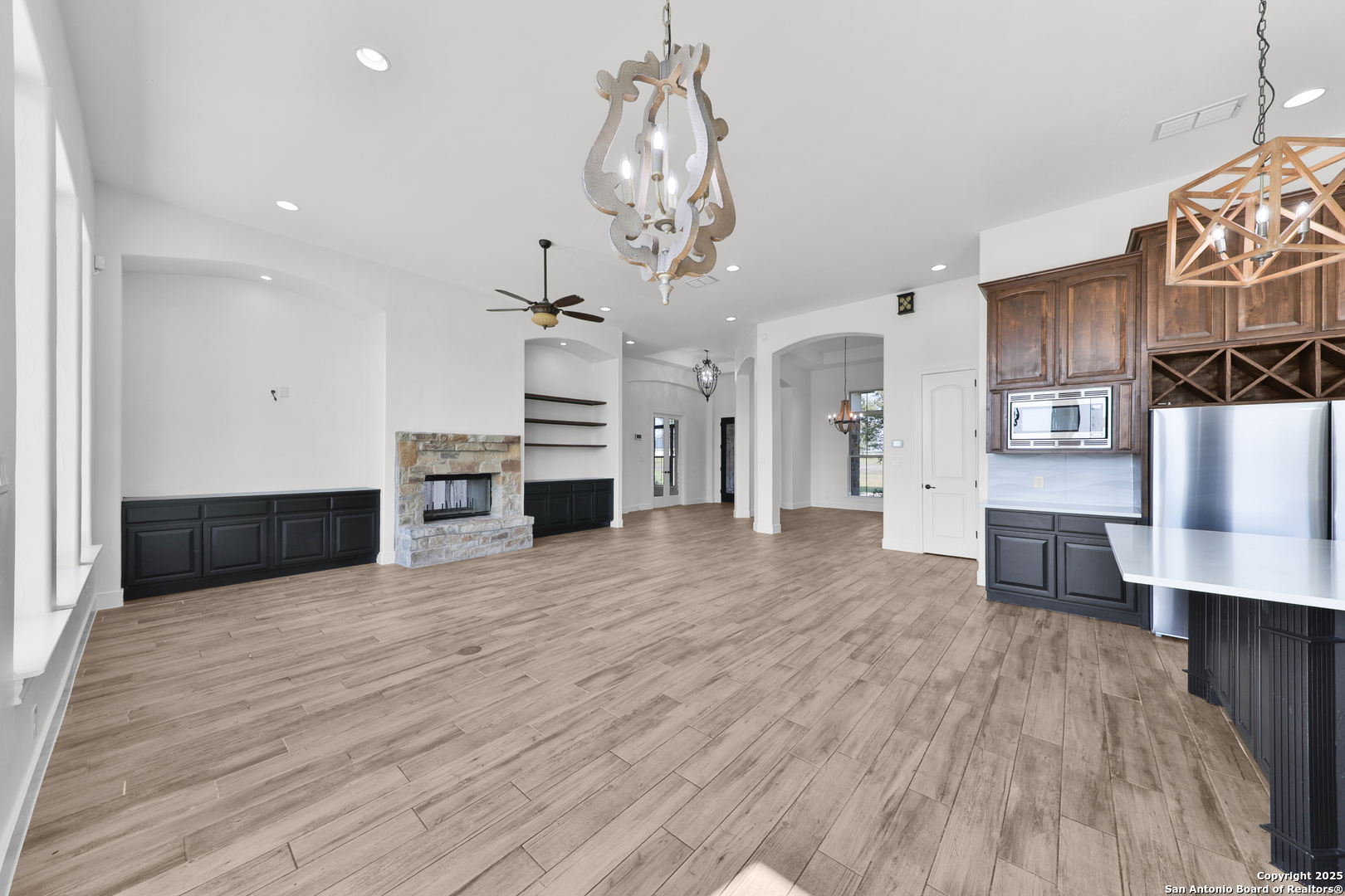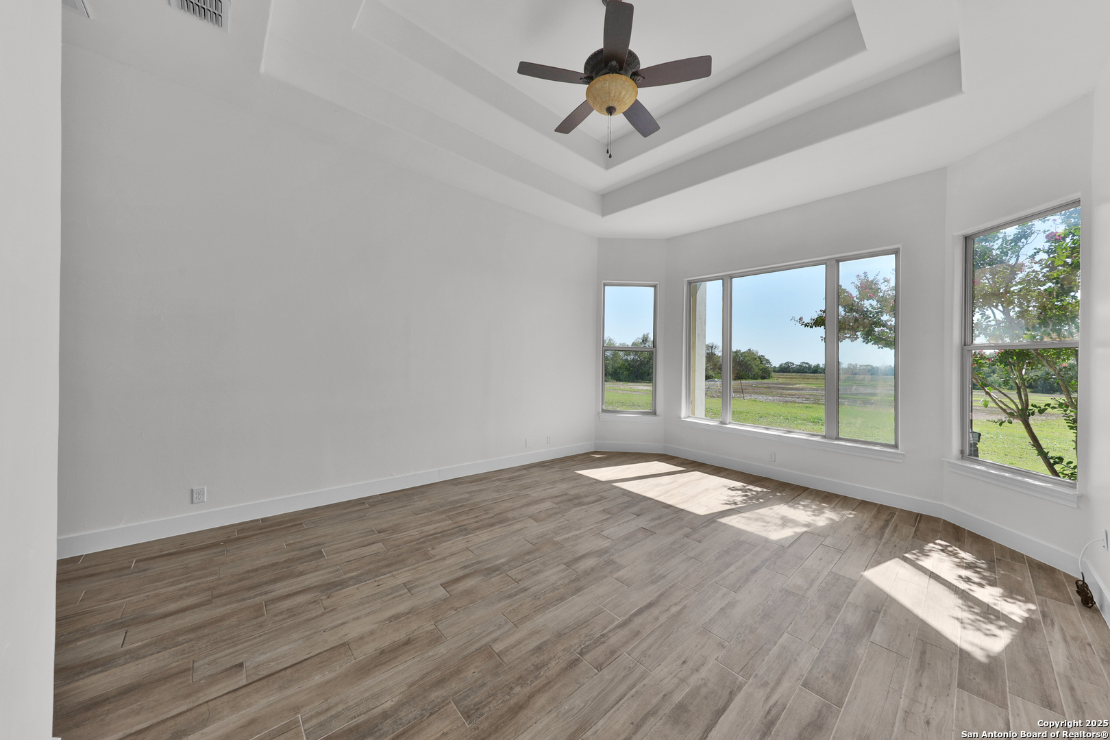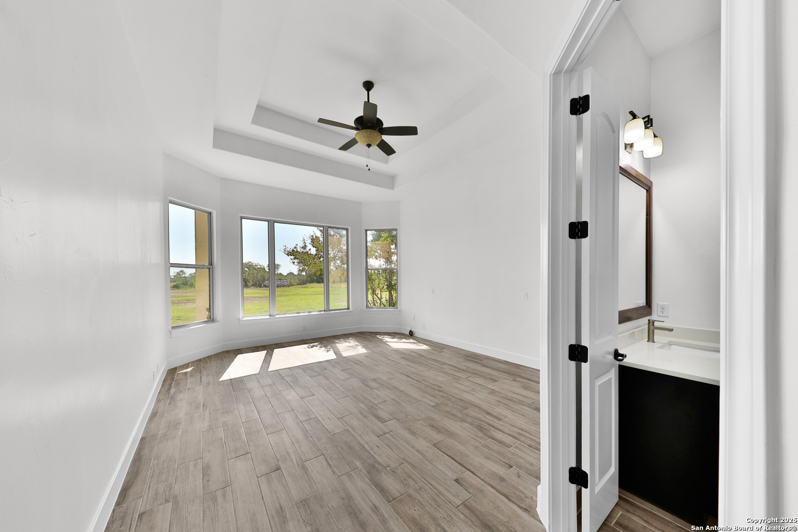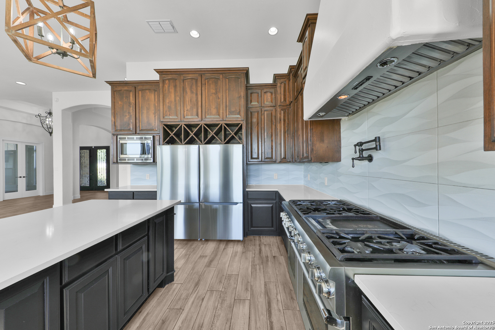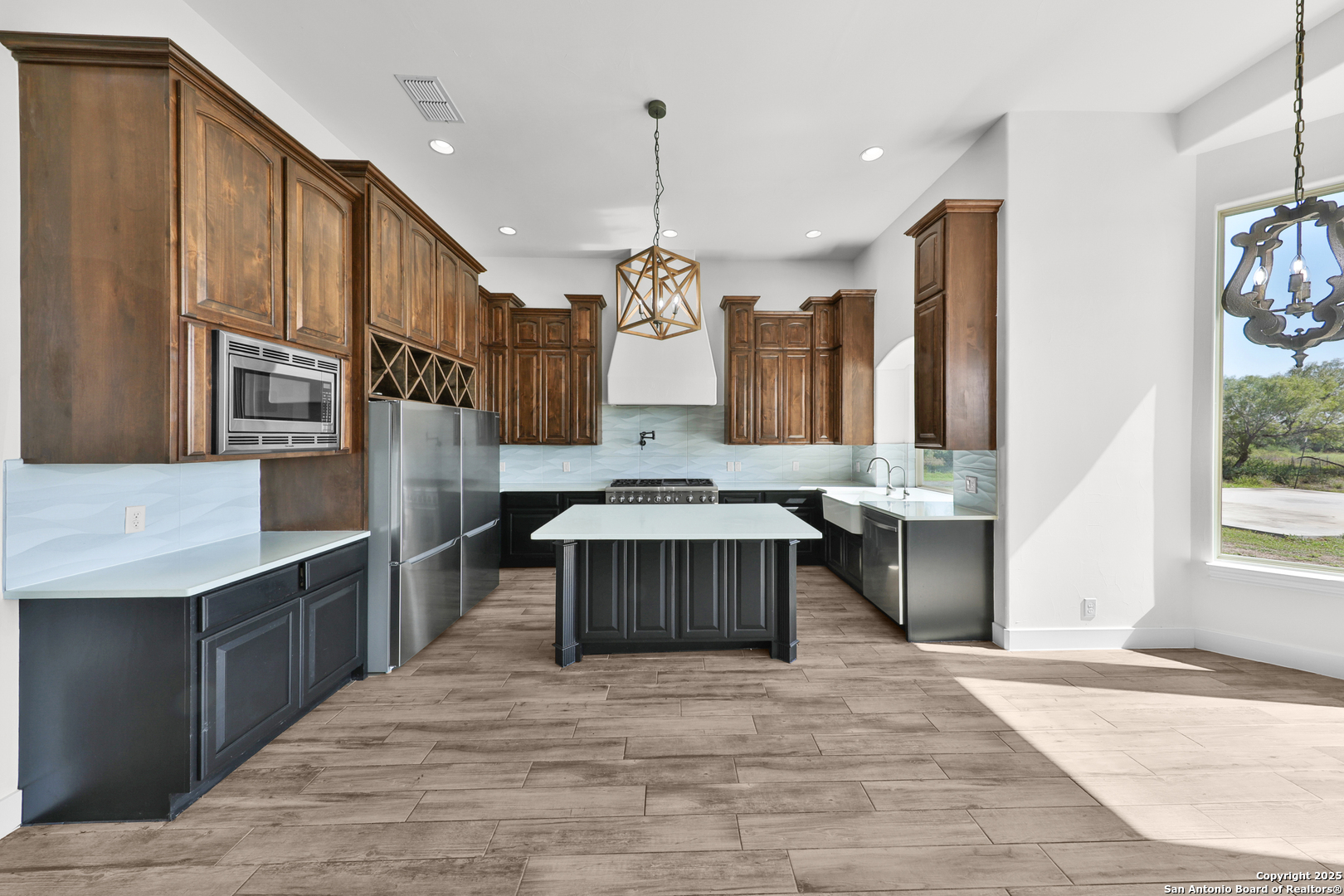 *** Open House Saturday, Sept. 20, 11 AM-2 PM*** Welcome to your private retreat on 5.41 acres-this impressive 4-bedroom, 3-bathroom rock and stucco home offers 3,420 sq. ft. of thoughtfully designed living space with no HOA restrictions. Step inside to soaring 12-foot ceilings and tile flooring with a wood-look finish. The gourmet kitchen is a chef's dream, featuring a large island, 6-burner Thermador gas range with double oven and griddle, pot filler, farm sink, and two refrigerators, ensuring ample space for meal prep and gatherings. The bright breakfast area with bay window overlooks the peaceful backyard. In the living room, custom built-ins frame a double-sided fireplace that extends into the game room, where wood beam accents create a warm and inviting atmosphere. A private study with French doors and wood beams sits at the front of the home, while a formal dining room provides an additional gathering space. The split primary suite is a true retreat with tray ceilings, its own bay window, walk-in closet, dual vanities, and a spacious walk-in shower with dual shower heads. Secondary bedrooms are connected by a Jack-and-Jill bath, while walk-in closets are found throughout the home. A spacious media room sits above the garage, complete with new carpet and pre-wiring for surround sound. The outdoor space includes a large covered back porch and a concrete pad with basketball hoop, complemented by mature landscaping, a sprinkler system, partial fencing, and a gated front entrance. Additional features include a metal roof, dual AC units, and pre-plumbing for a water softener. Located in a peaceful country setting, this home offers both privacy and convenience with a short drive to town.