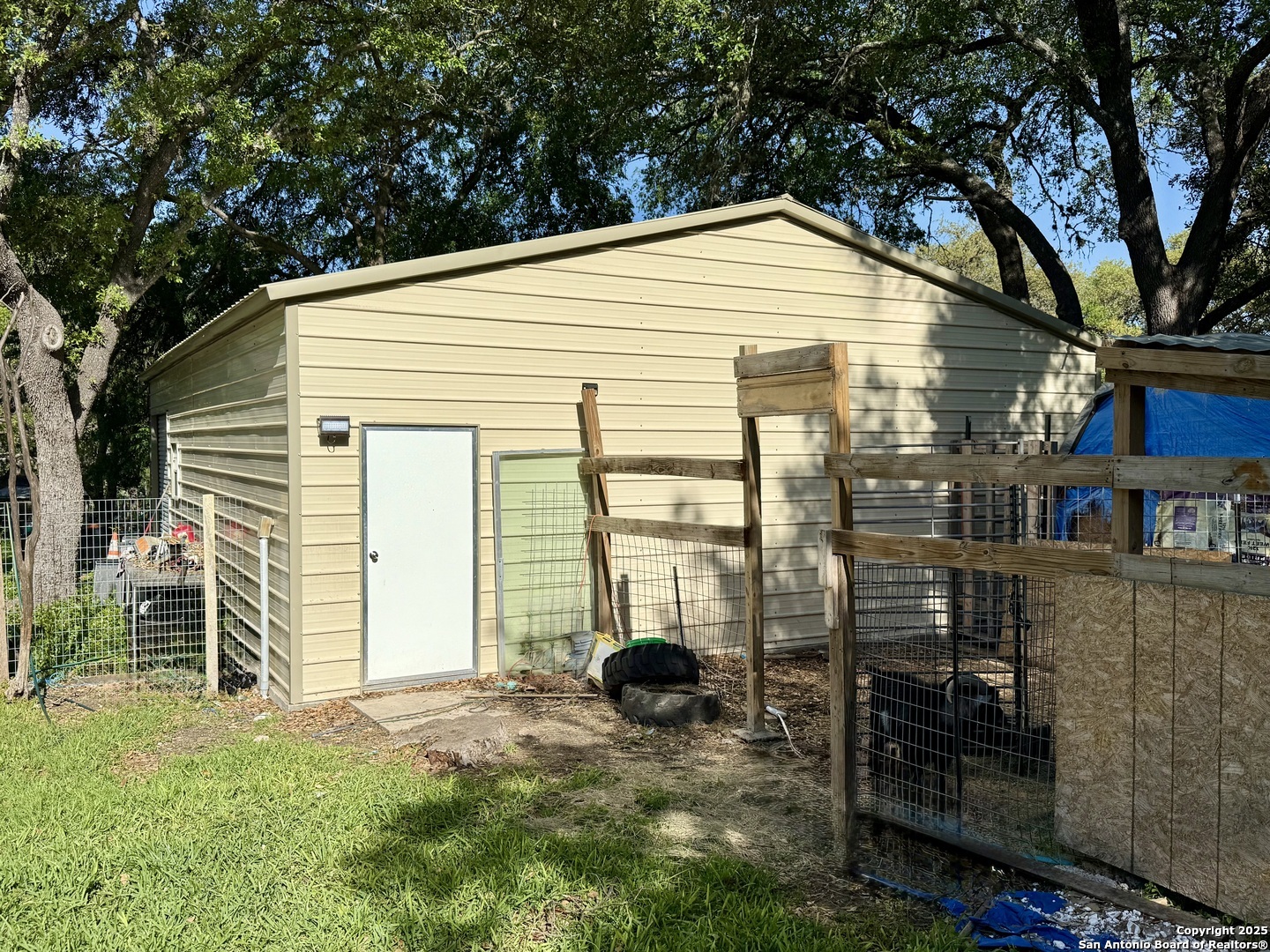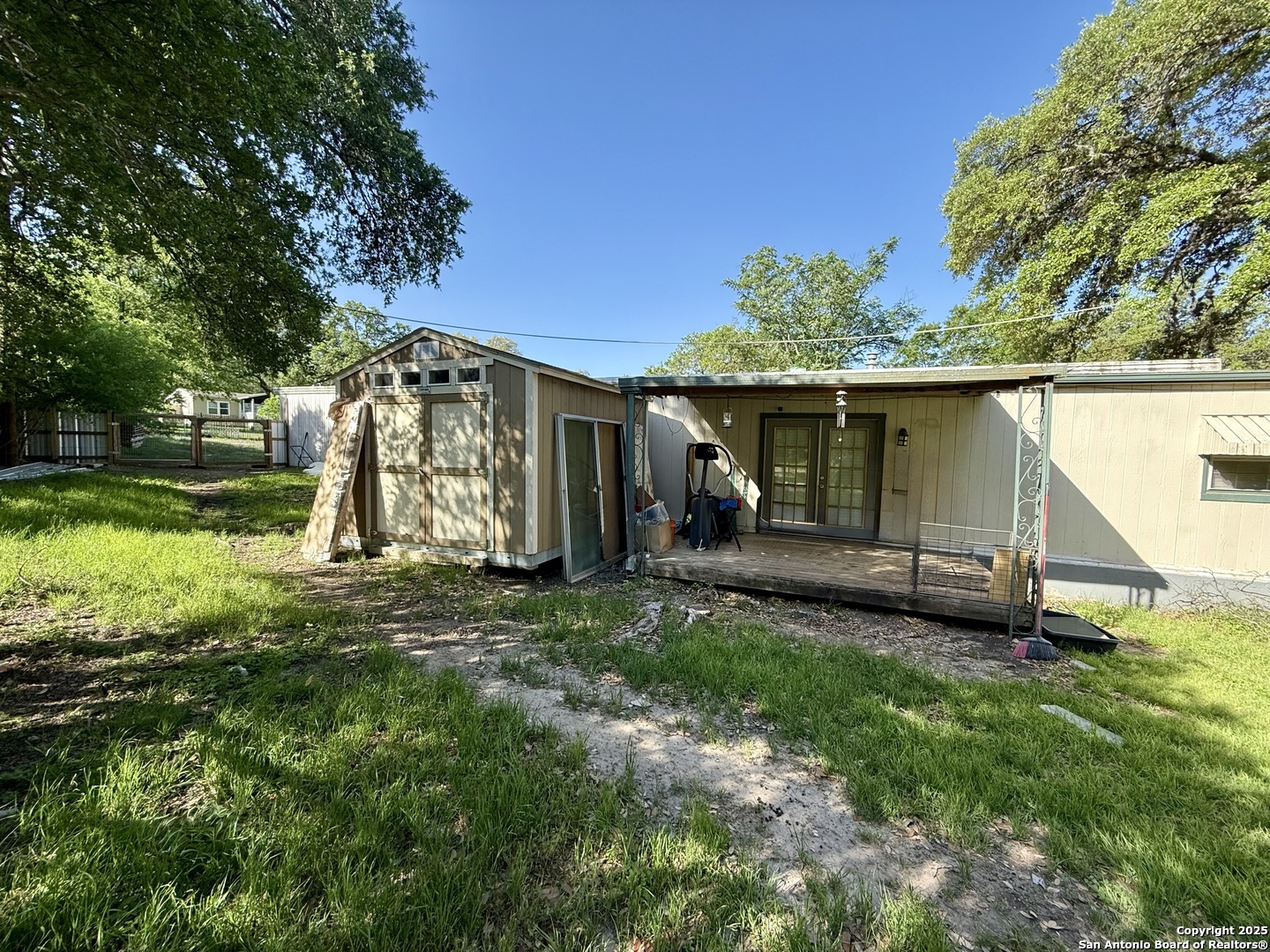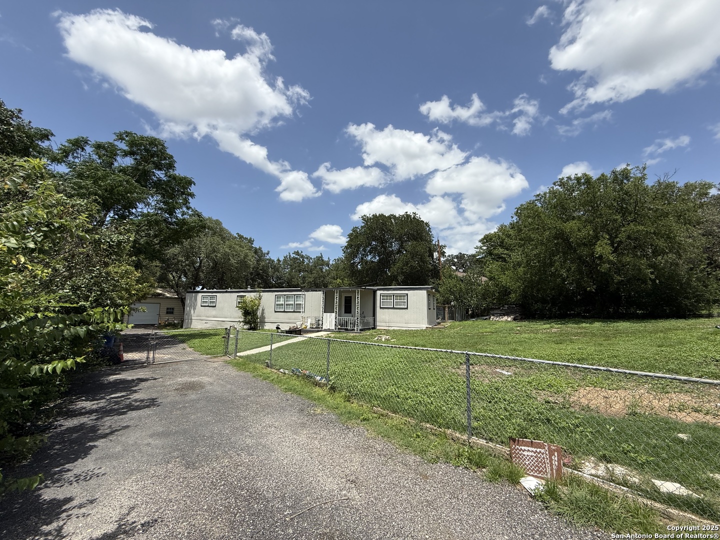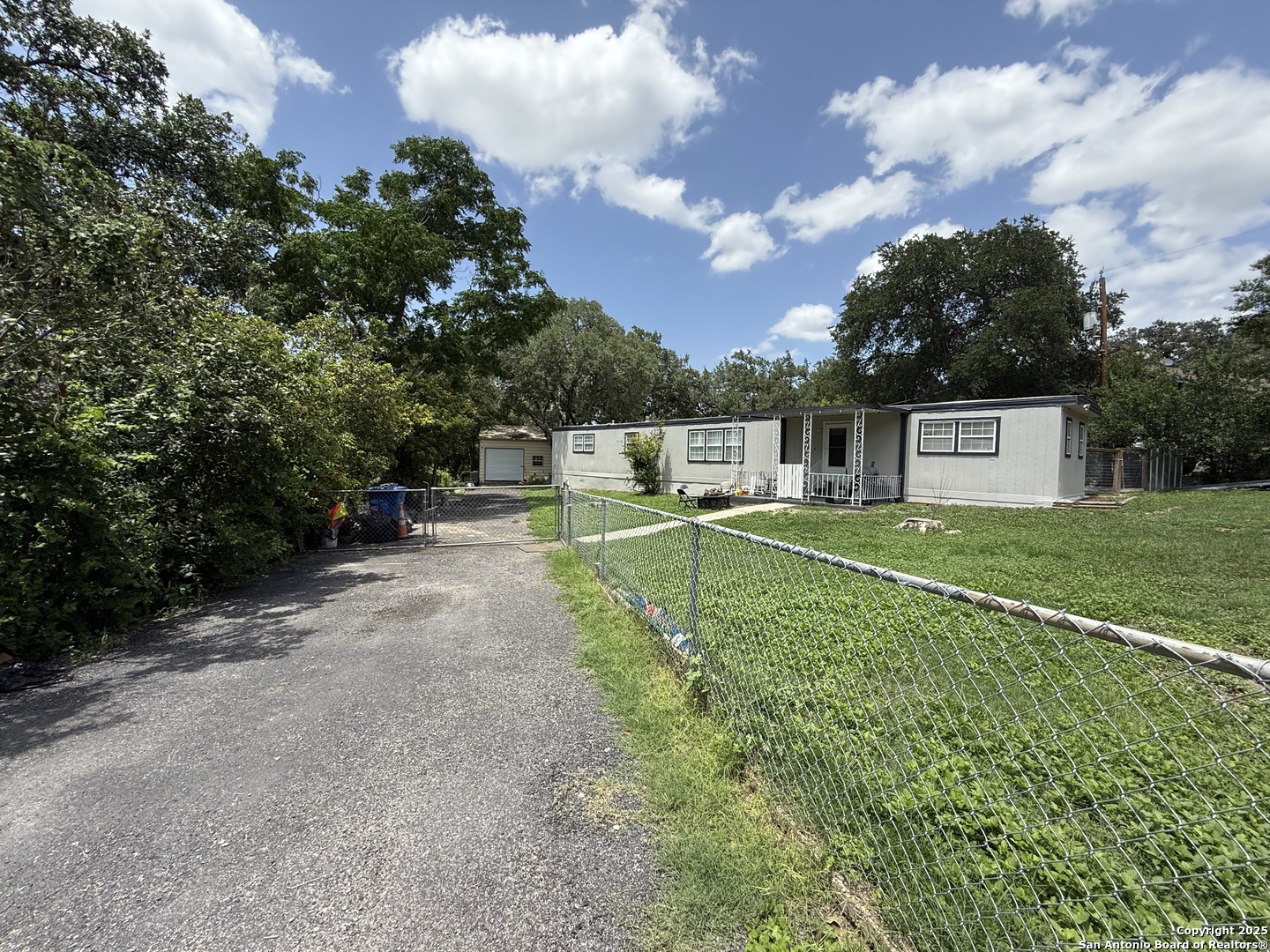 Fantastic opportunity to own property with a detached workshop! This manufactured property sits on .37 of an acre with completed upgrades. This property boast 3 good sized bedrooms, a small room that can be used as an office, an open floor plan, open kitchen, ceiling fans, carpeting and laminate wood flooring throughout. The spacious yard has a shed, mature trees and is outlined with wooden privacy and chain link fencing. Shops, Restaurants and Lackland Air Force Base are close by. This property is a great investment or starter home!