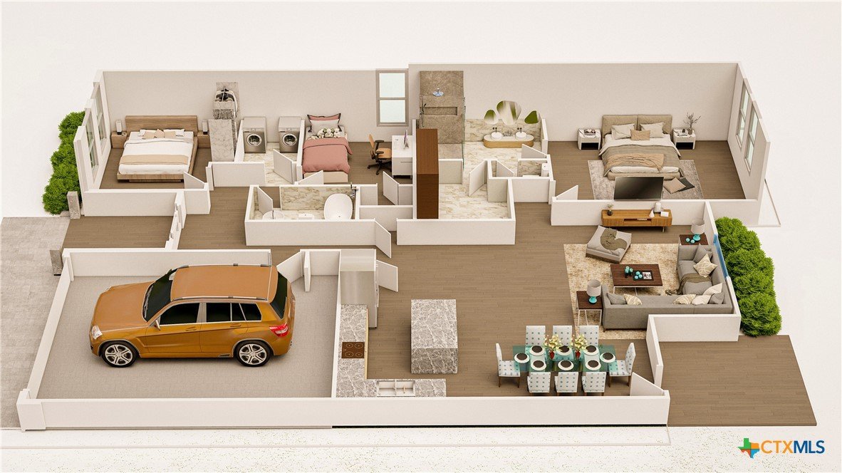 Discover your perfect one-story sanctuary—on a quiet cul-de-sac in Wimberley’s exclusive dark-sky neighborhood. This thoughtfully designed 3-bedroom, 2-bath home offers a functional split floor plan—two bedrooms and a full bath on one side, with the spacious primary suite tucked away in the back for added privacy. Enjoy open-concept living at its best with a bright and airy living, dining, and kitchen space highlighted by dramatic ceilings and upgraded plank tile flooring throughout the main areas and primary suite. The stunning kitchen features an abundance of counter space, soft-close cabinetry, stainless steel appliances (including stove, dishwasher, range, and built-in microwave), and a show-stopping granite waterfall island perfect for entertaining or casual dining. The living room has a beautiful picture window overlooking the backyard. Relax on your covered back patio and take in the serene surroundings—often with deer roaming nearby. Additional highlights include, custom shelving, and builder warranties for peace of mind. You're just minutes from the heart of downtown Wimberley, known for its charming shops, fine dining, local eateries, and dessert spots. Ideally located for commuters or weekend adventurers—less than 30 minutes to Austin, and under 20 minutes to San Marcos or Canyon Lake. See photos for real-time construction progress. Don’t miss the opportunity to make this stunning new home yours! Target Completion Date: early Spring 2026