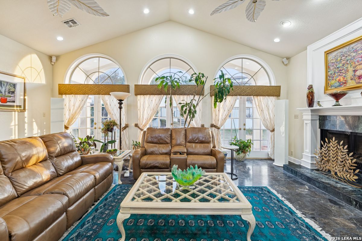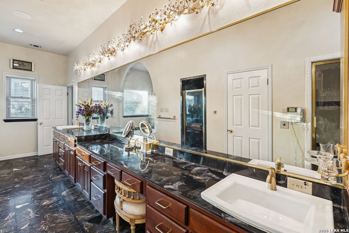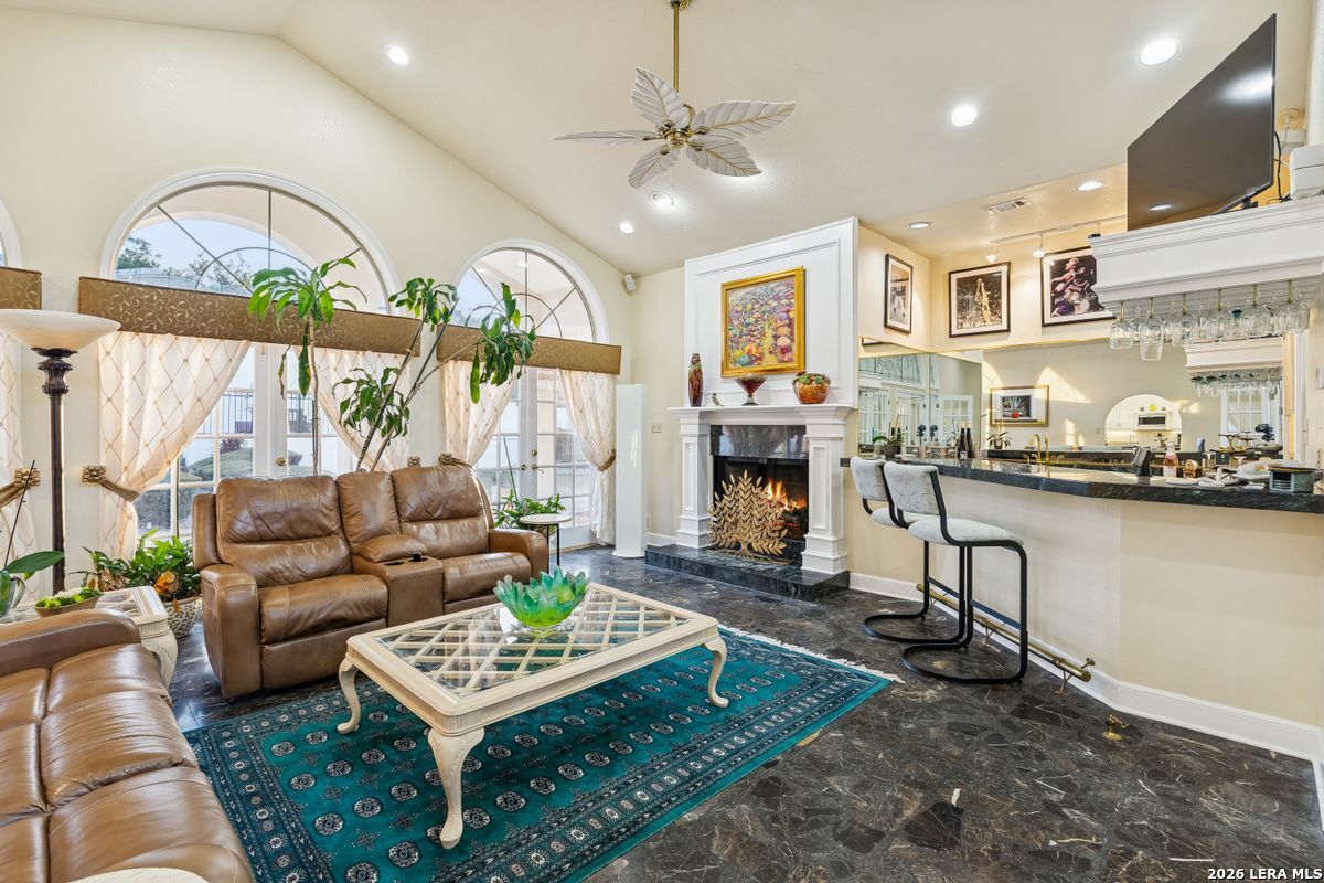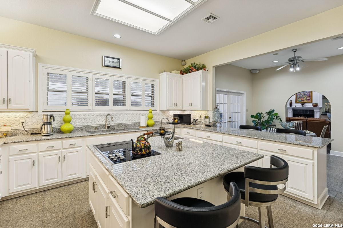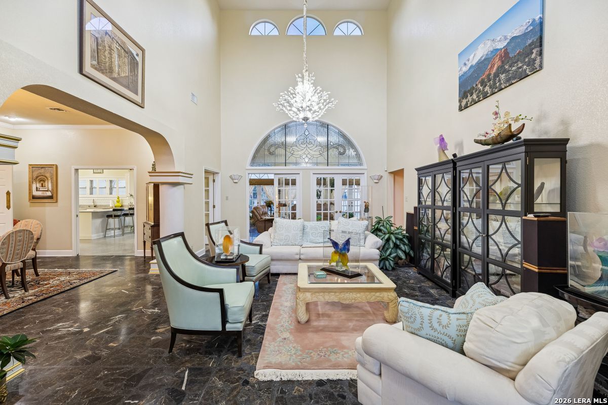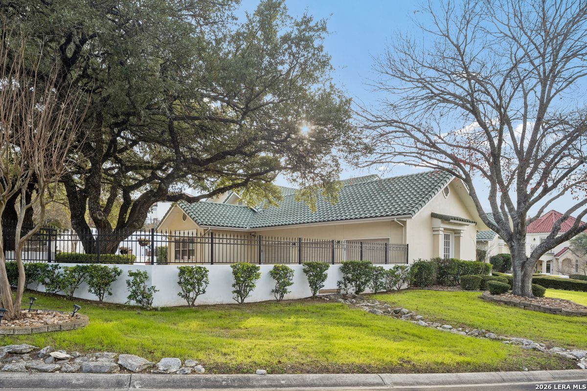Showings Begin on Saturday 1/31/26 at 9 AM. Exquisite single-story home located in The Dominion. The breathtaking two-story foyer sets the tone for the grandeur of the home. The formal living and dining areas boast refined finishes and ample natural light. In the heart of the home, the expansive family room showcases a full bar and flows into the chef's kitchen, equipped with KitchenAid and JennAir appliances, an oversized island and a separate informal dining area. The butler's pantry is a perfect addition for entertaining guests and large family gatherings. Views of the parklike back yard, as well as outdoor access, are enjoyed from both the kitchen and family room. Completing the home is a study, with beautiful custom shelving, and three spacious bedrooms, in addition to the Primary Suite. Within the primary suite is a fireplace, a generous custom closet and a spa like bath equipped with a soaking tub, walk-in shower, and a steam shower. The oversized three car garage provides ample parking and storage for all members of the family! This exceptional home is the perfect blend of sophistication and comfort with the opportunity to customize it as your own!